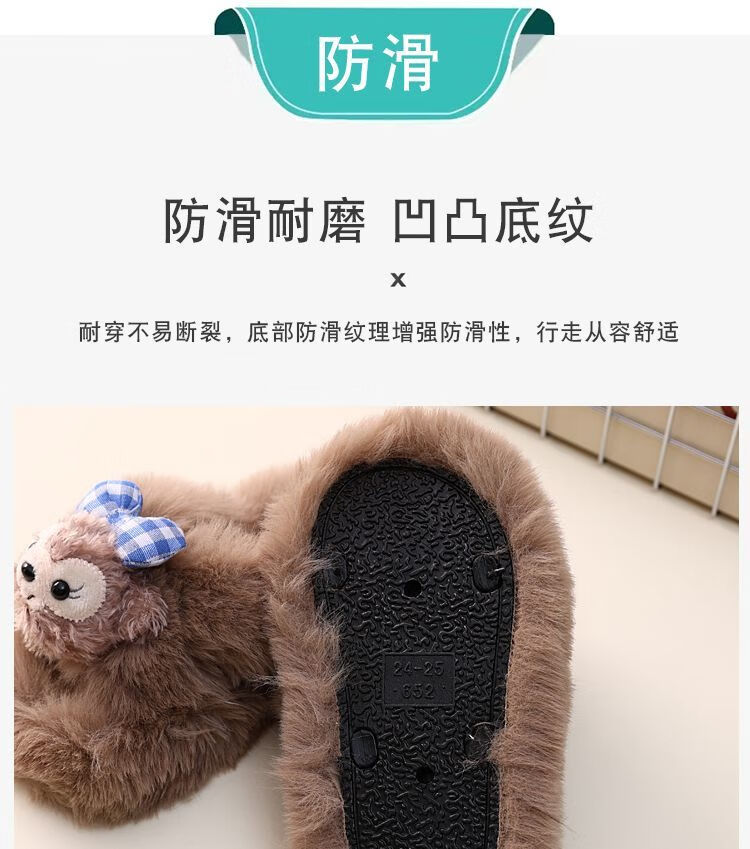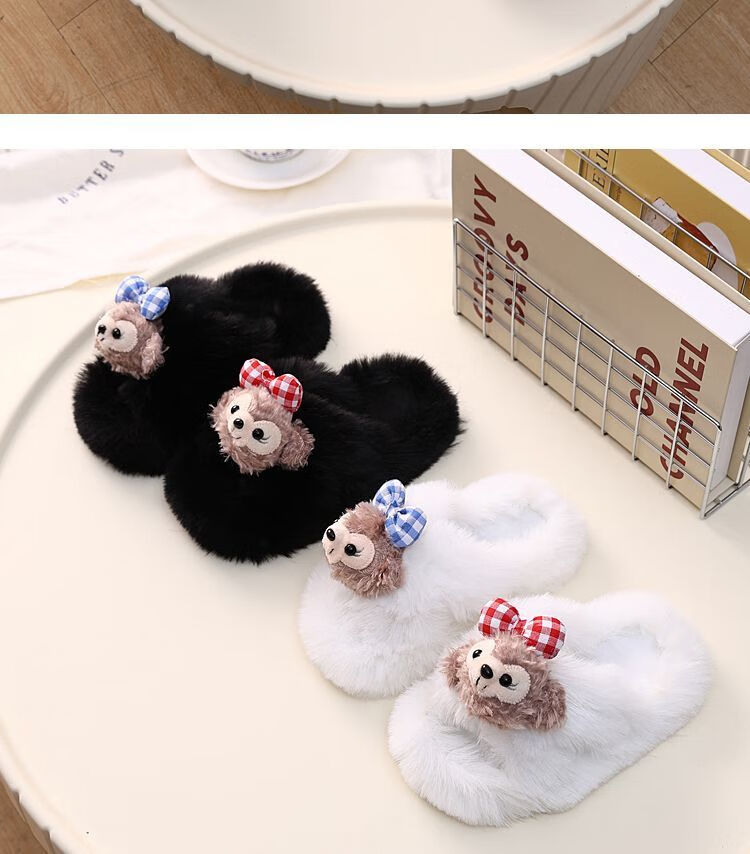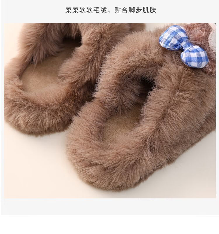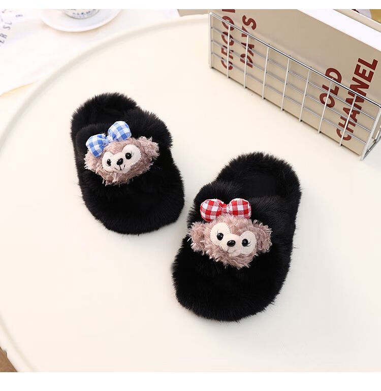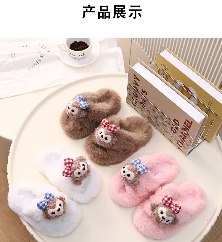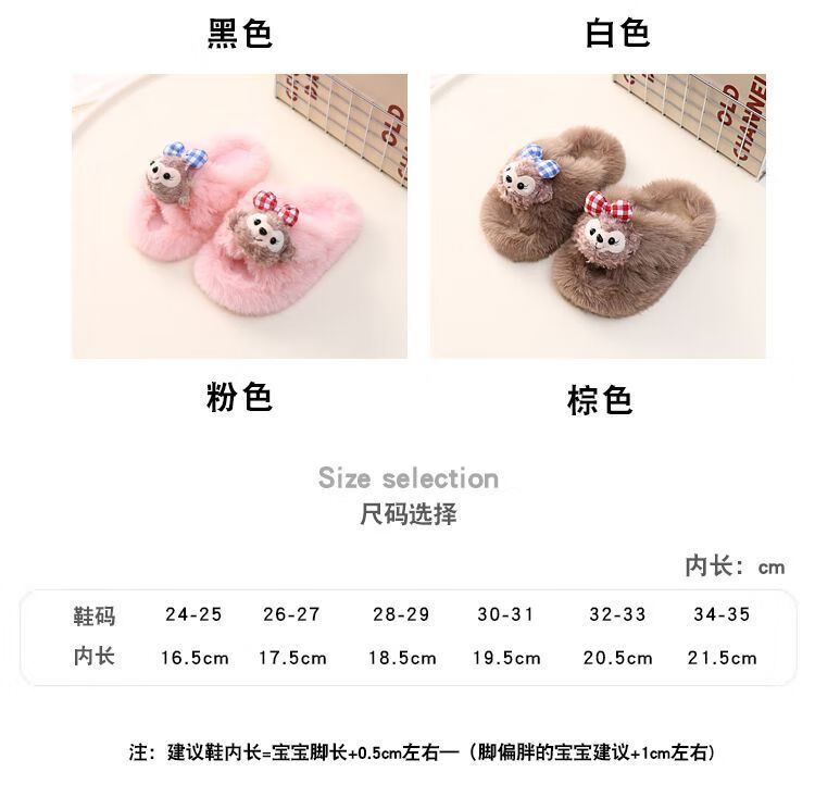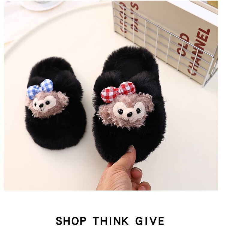 2024 New Princess Style Cute Shirley Rose Children's Furry Slippers Home Thick-Soled Anti-Slip Warm Baby Cotton Shoes Pink Cute Little Shirley Rose 30-31 (Inner Length 19.5cm)