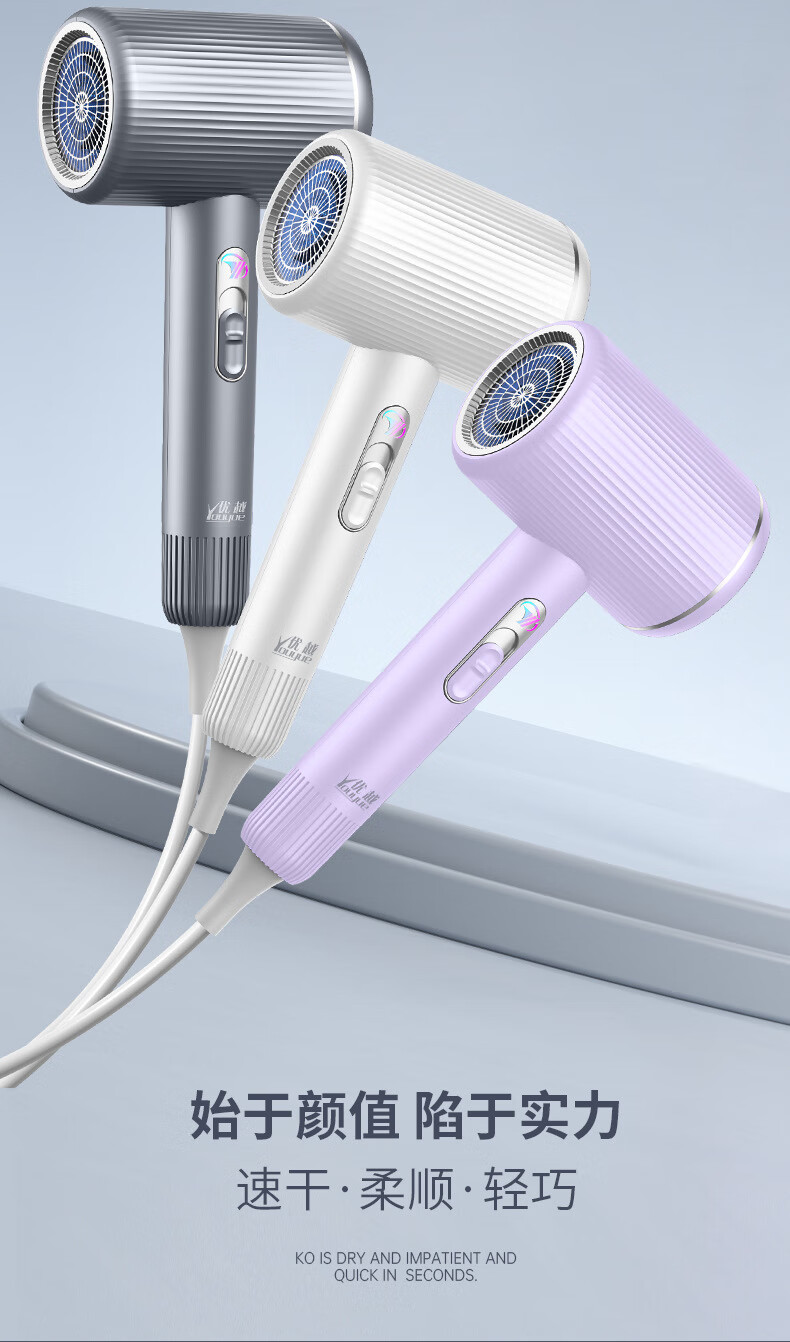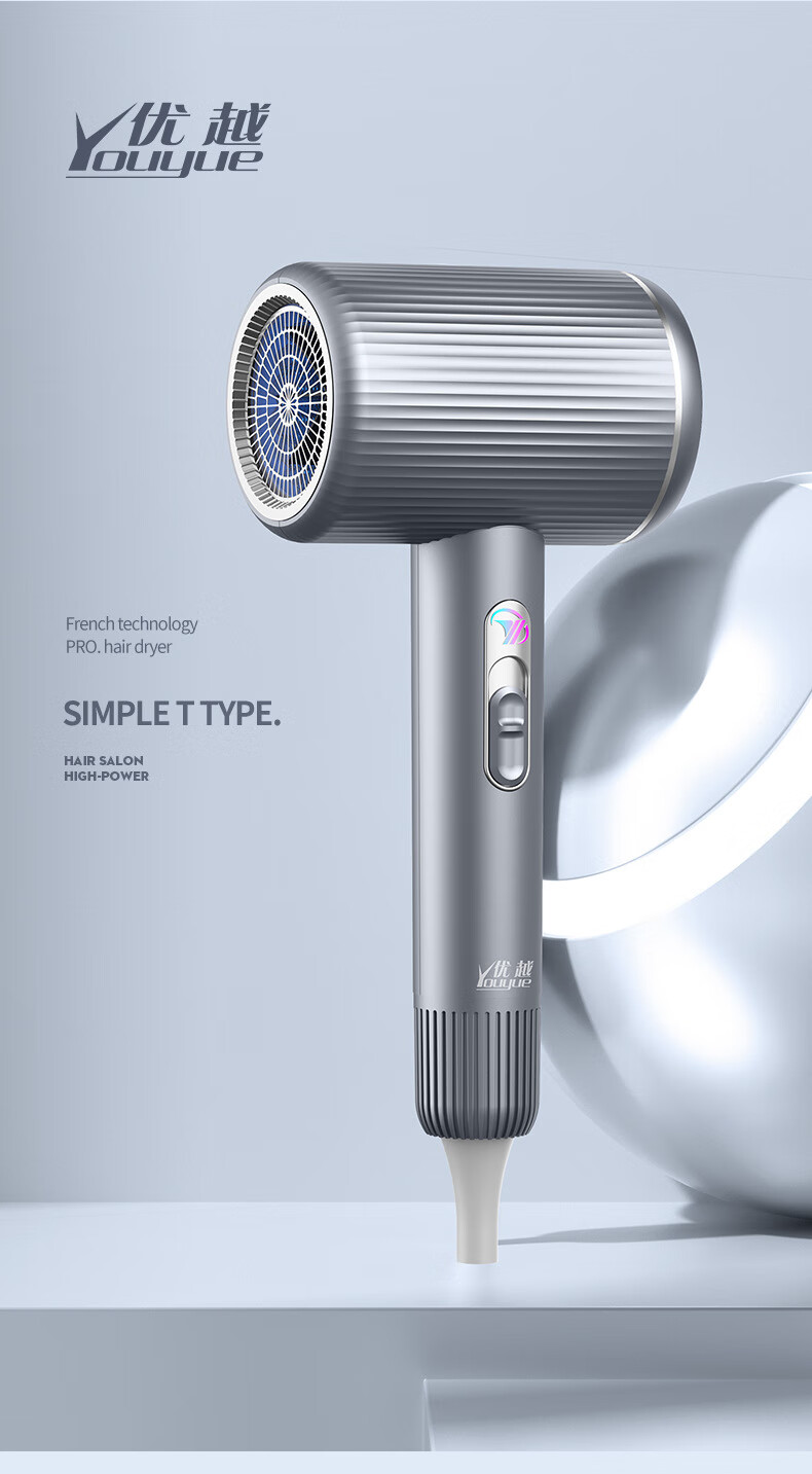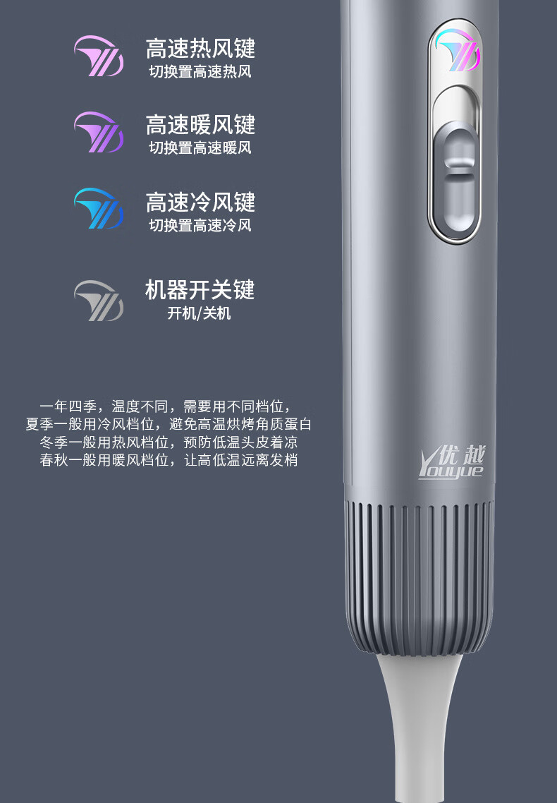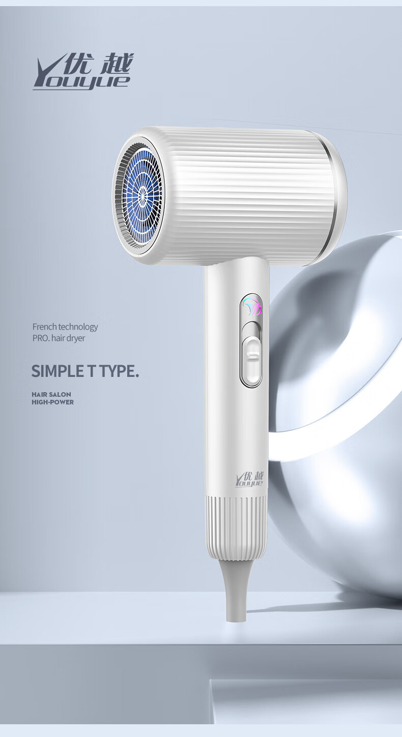 Youyue German Seiko 2400W high-power hair dryer, high wind power, 3 minutes quick drying, blue light negative ion hair care hair dryer, ultra-quiet hot and cold air three-block hair dryer, milky white, 2400W high power, 3 minutes quick drying, free air collection nozzle