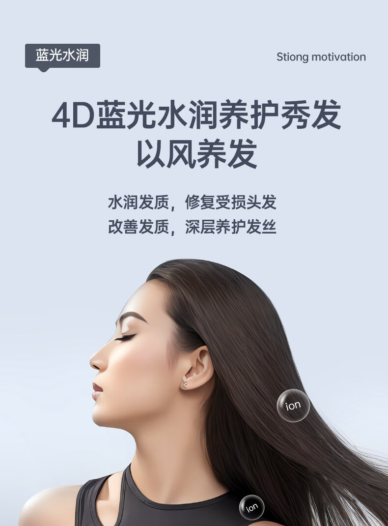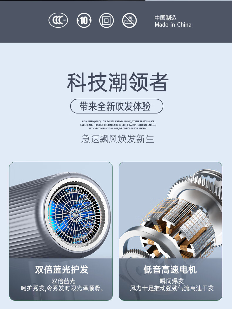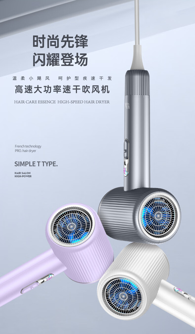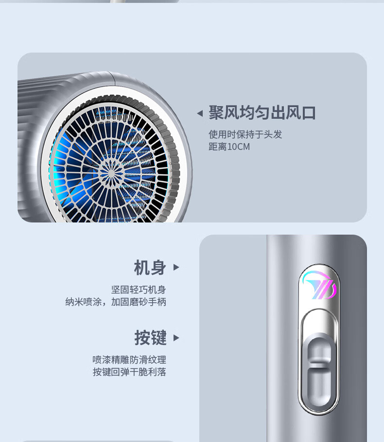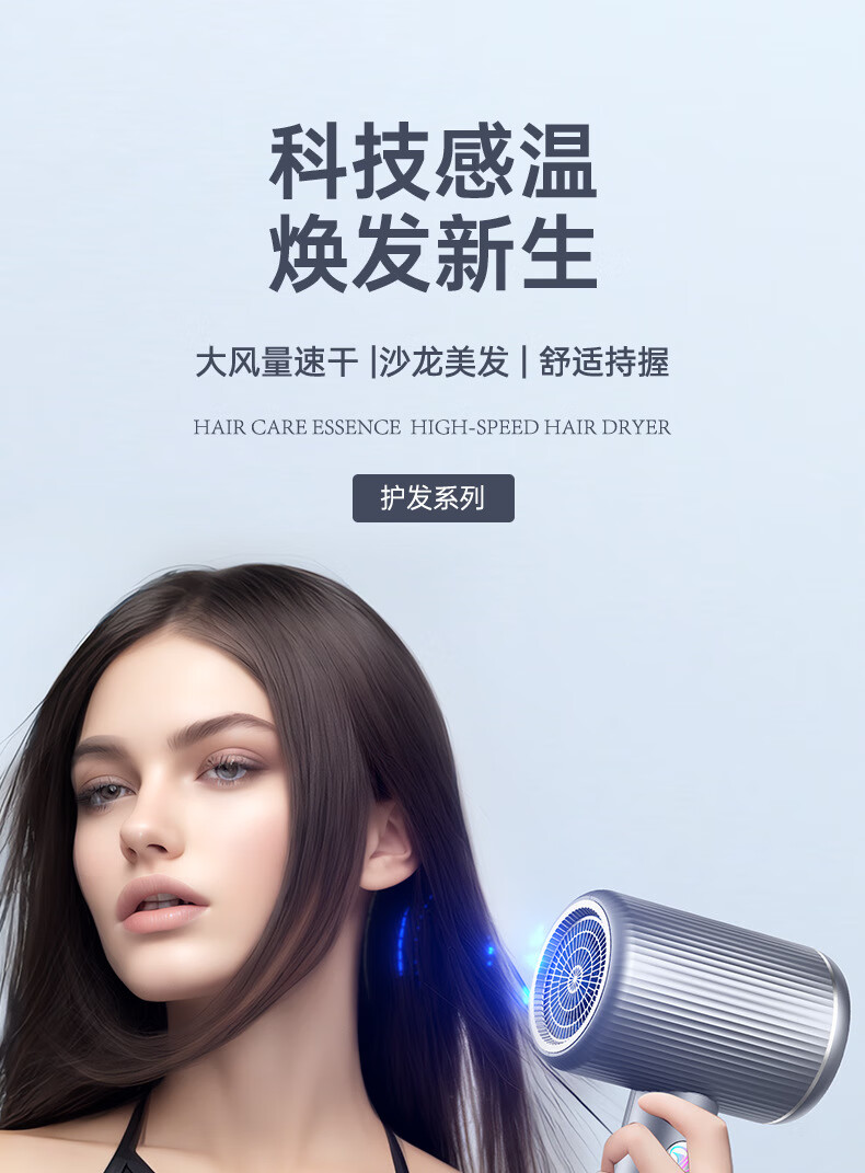 Youyue German Seiko 2400W high-power hair dryer, high wind power, 3 minutes quick drying, blue light negative ion hair care hair dryer, ultra-quiet hot and cold air three-block hair dryer, milky white, 2400W high power, 3 minutes quick drying, free air collection nozzle
