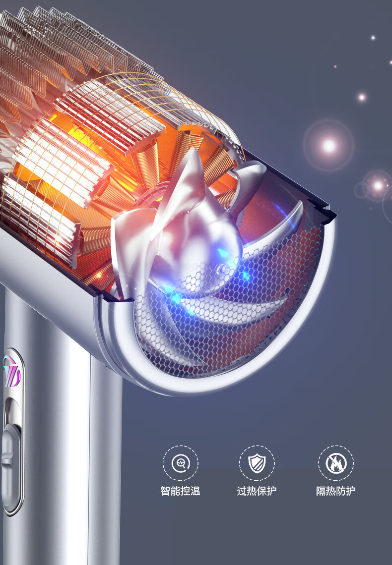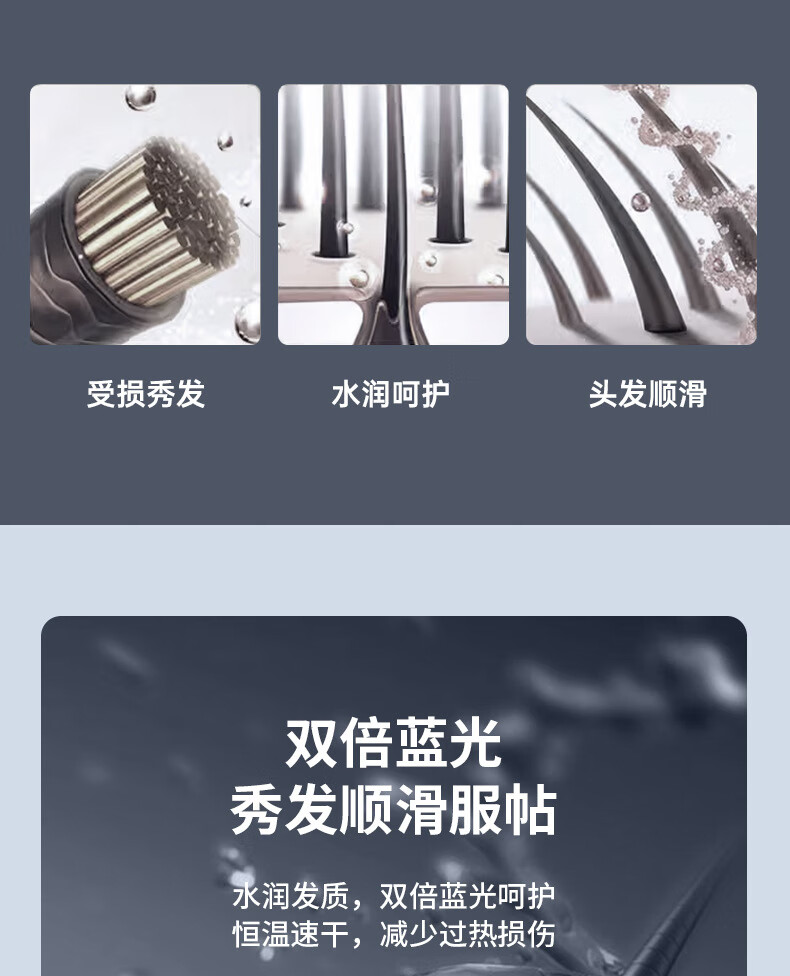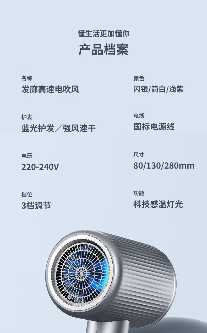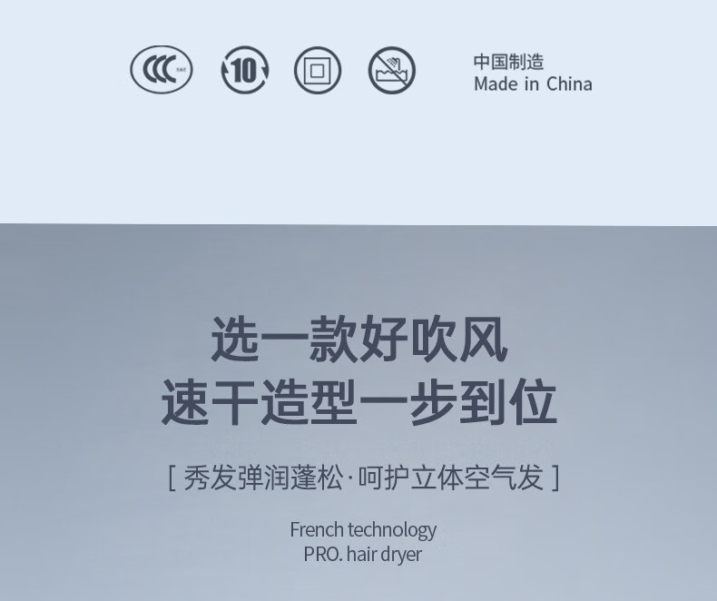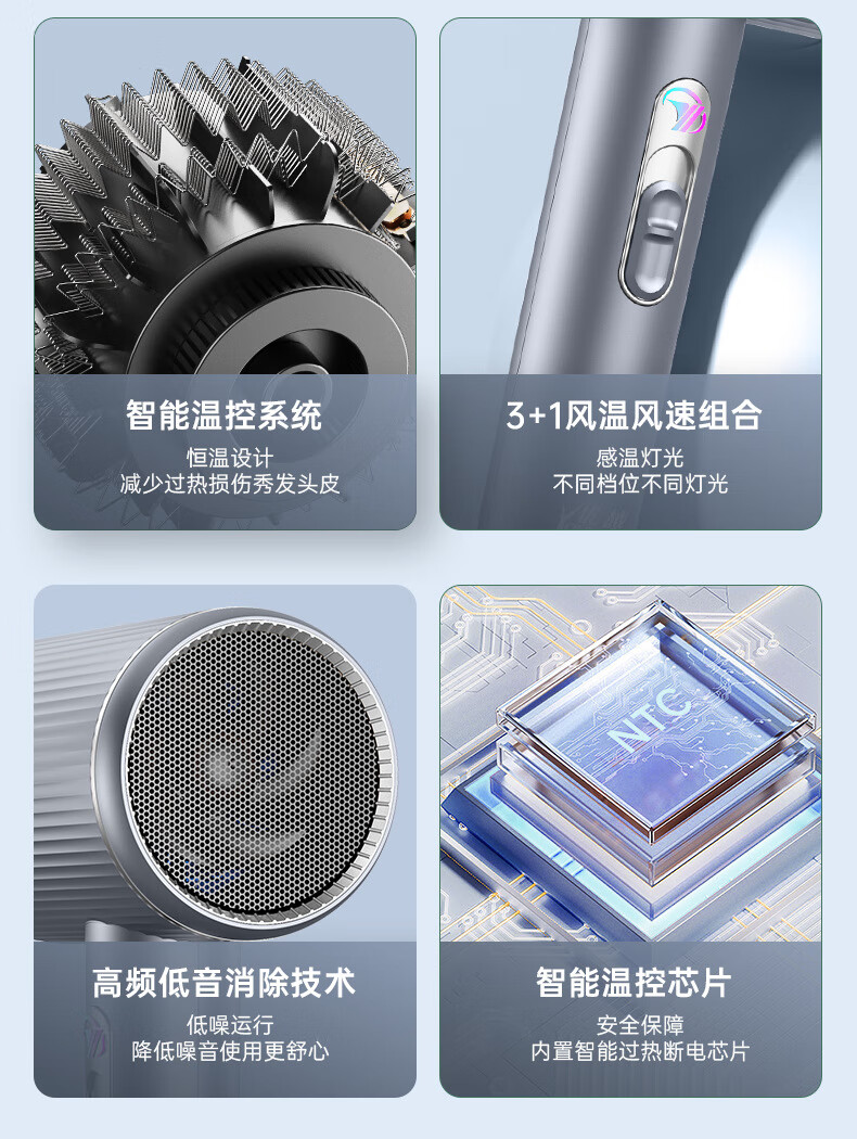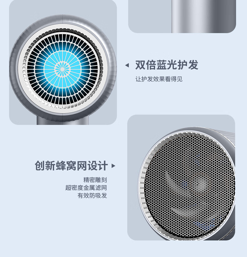Youyue German Seiko 2400W high-power hair dryer, high wind power, 3 minutes quick drying, blue light negative ion hair care hair dryer, ultra-quiet hot and cold air three-block hair dryer, milky white, 2400W high power, 3 minutes quick drying, free air collection nozzle