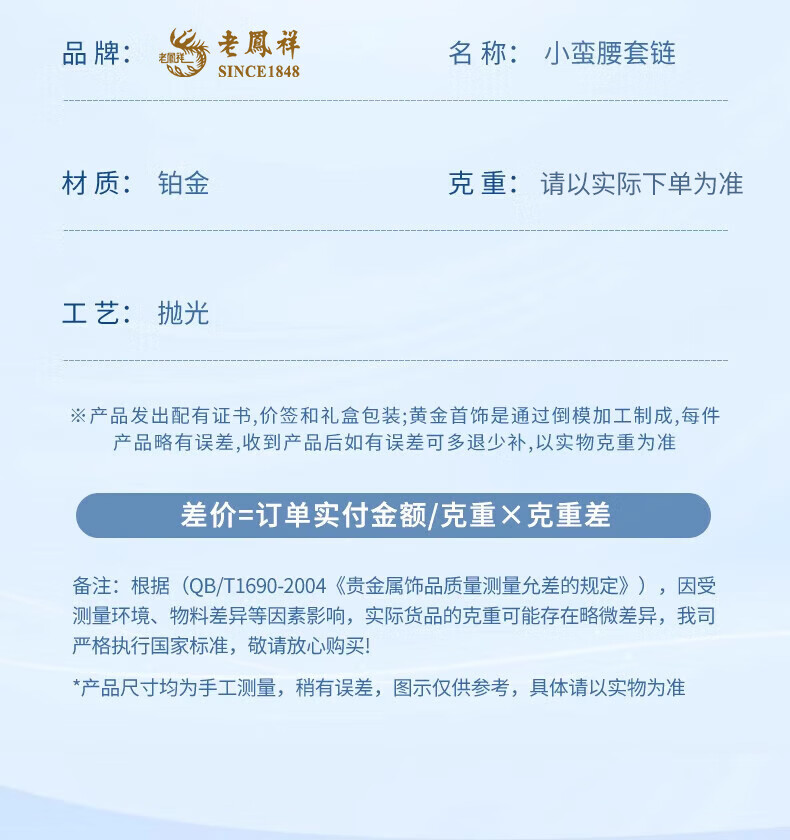 Lao Fengxiang Xiaoman Waist Necklace for Women PT950 Platinum New Platinum Pendant Set Chinese Valentine's Day Teacher's Day Gift Year of the Horse Ben Ming Year Gift PT950 Platinum Xiaoman Waist Set Chain Approximately 4.1g