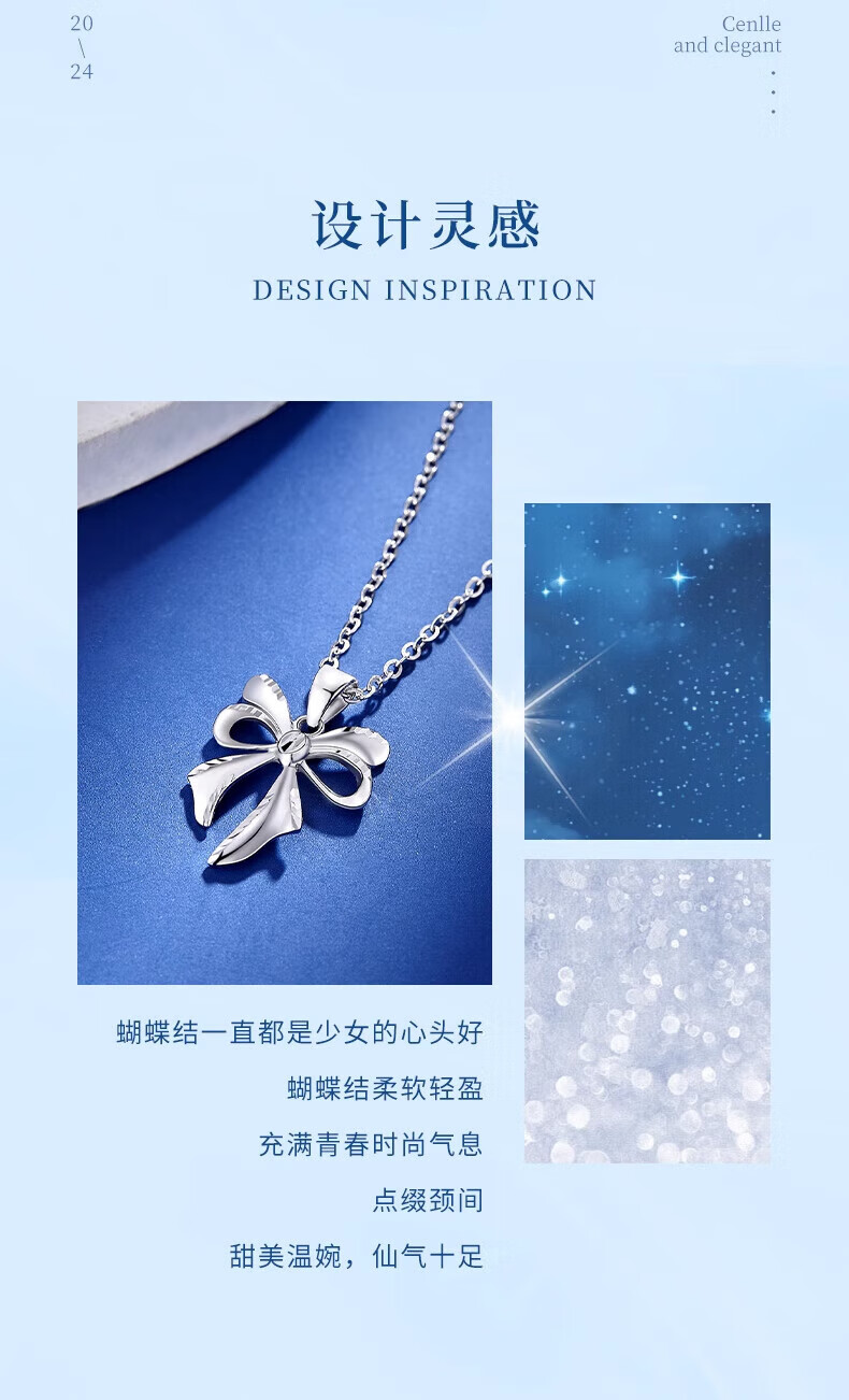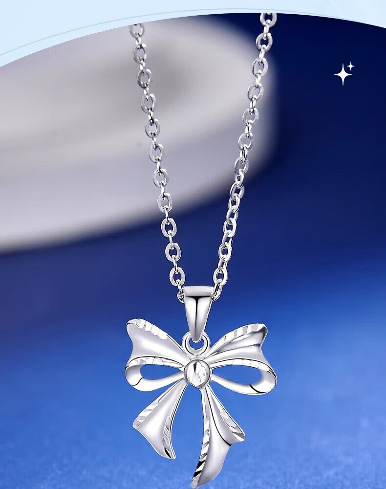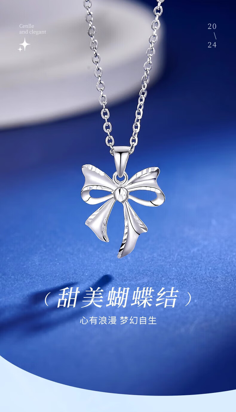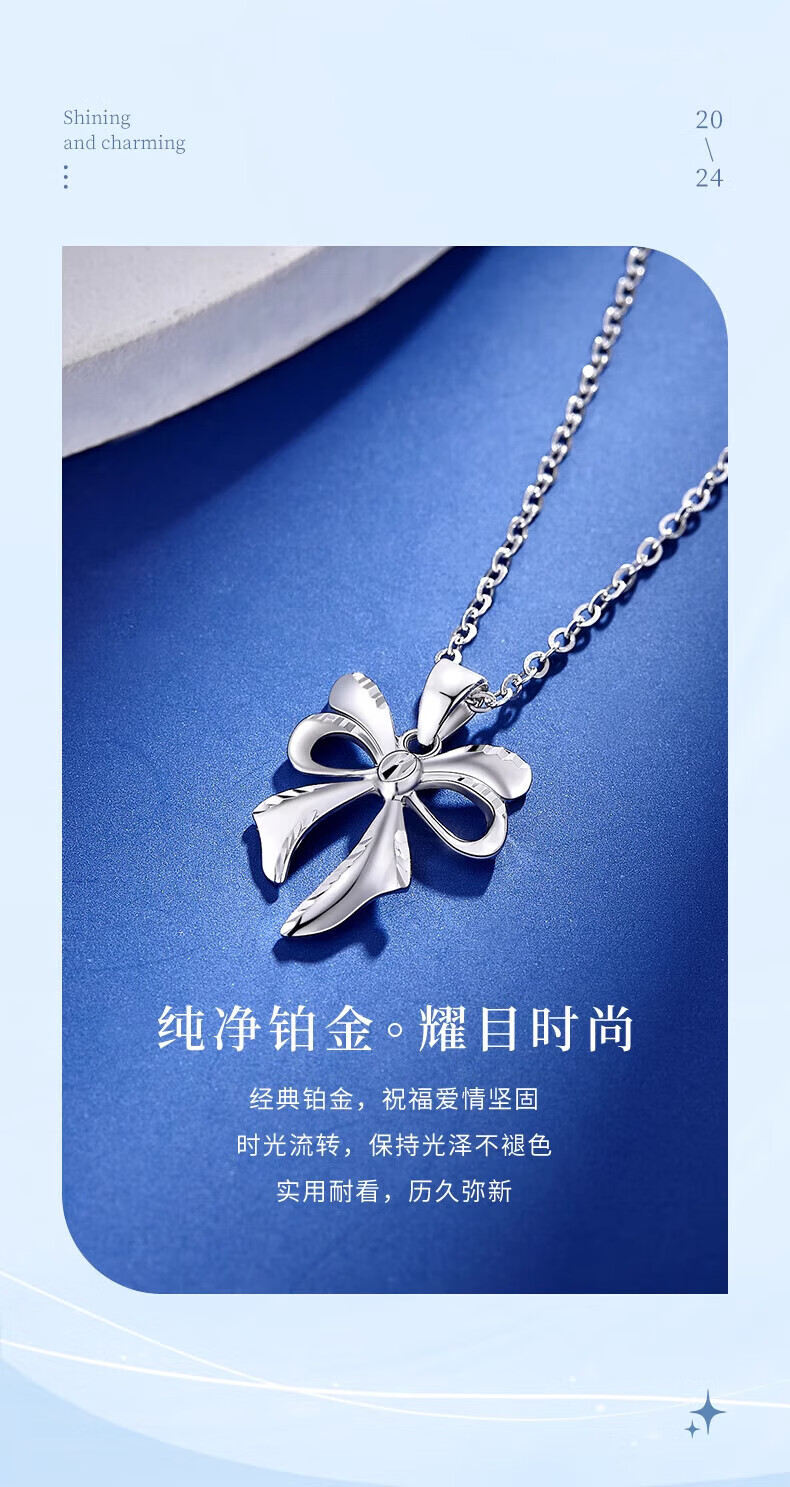 Lao Fengxiang PT950 platinum bow necklace for women platinum pendant clavicle chain Mid-Autumn Festival birthday gift for girlfriend PT950 platinum butterfly pendant about 1.9g free silver chain