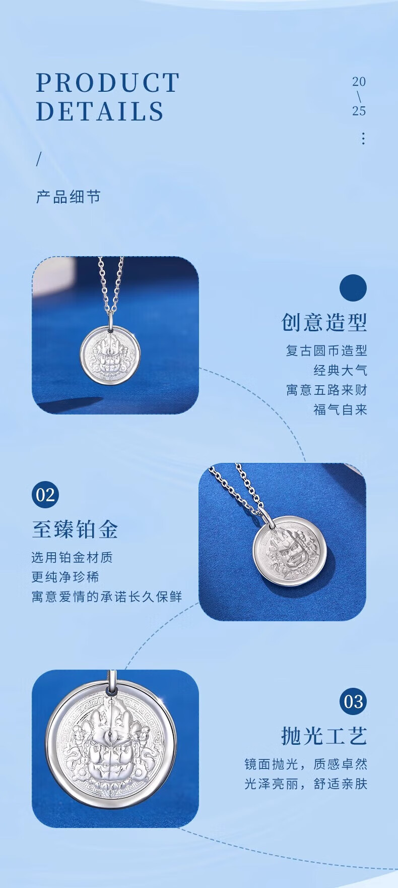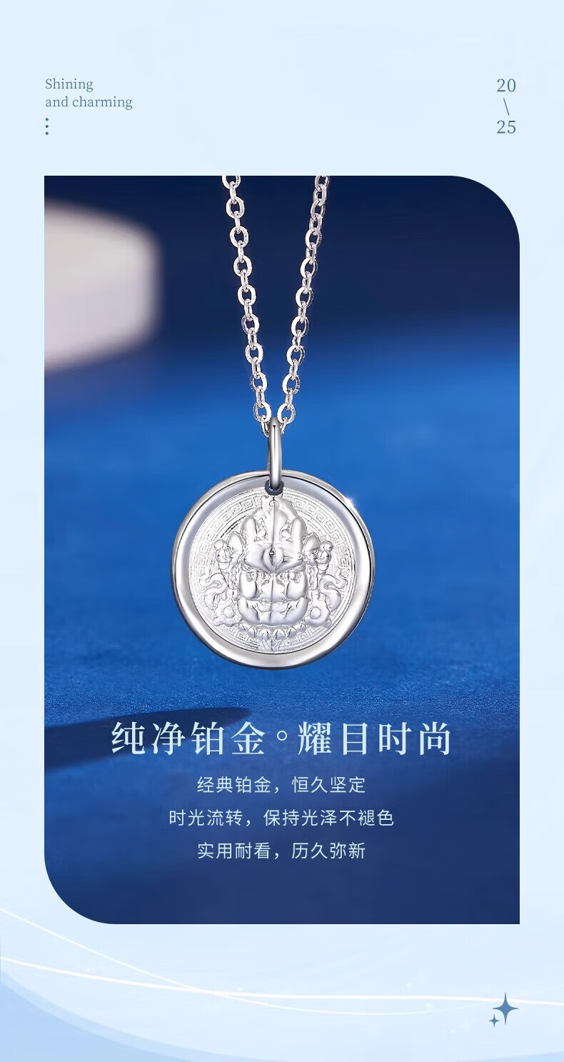 Lao Fengxiang PT950 Platinum Yellow God of Wealth Pendant Necklace for Women New Platinum Mid-Autumn Festival Birthday Gift Year of the Horse Animal Year Gift PT950 Platinum Yellow God of Wealth Pendant About 6.3g Free Pure Silver Chain