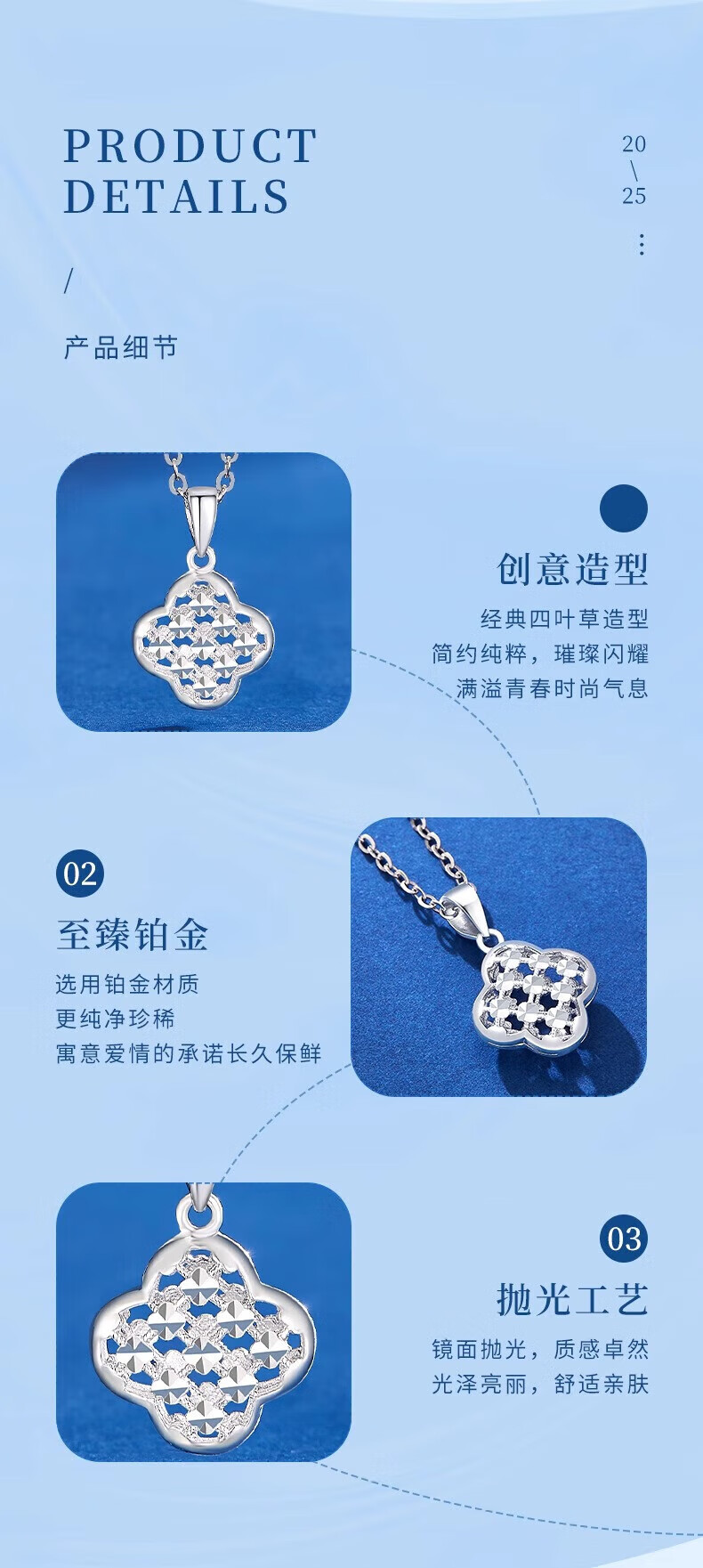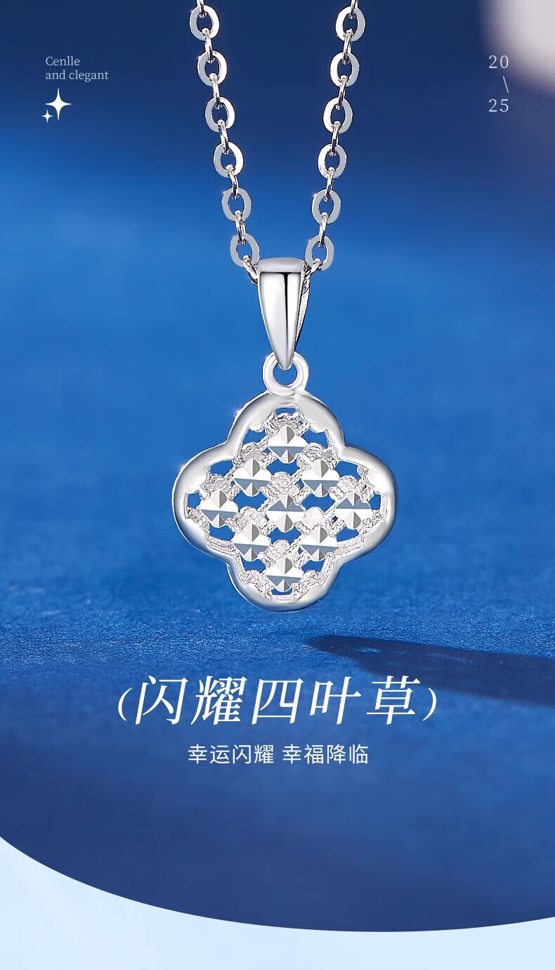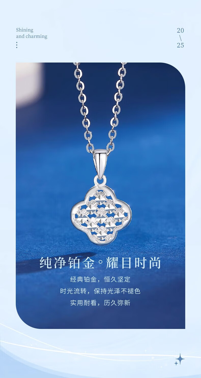 Lao Fengxiang PT950 platinum sparkling four-leaf clover pendant necklace for women new Mid-Autumn Festival birthday gift Year of the Horse zodiac year gift PT950 platinum crushed ice four-leaf clover pendant about 1.6 free sterling silver chain
