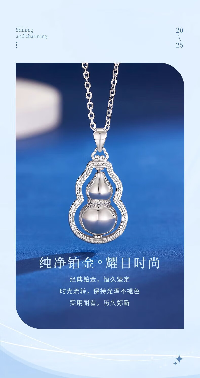 Lao Fengxiang PT950 platinum Fulu pendant necklace for women, platinum versatile lock, Valentine's Day birthday gift for girlfriend and wife, platinum Fulu pendant, about 6.9g, free sterling silver chain + brand gift box