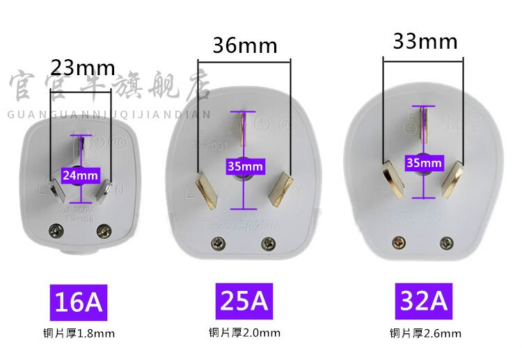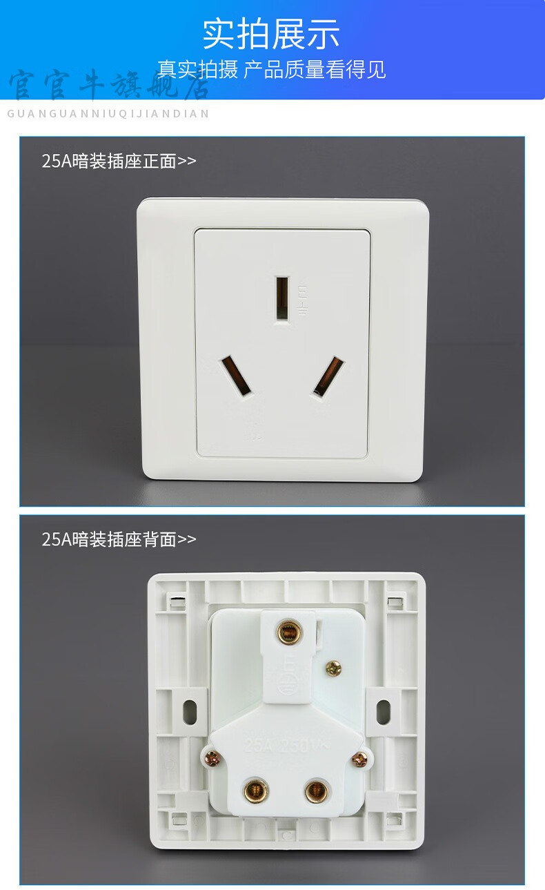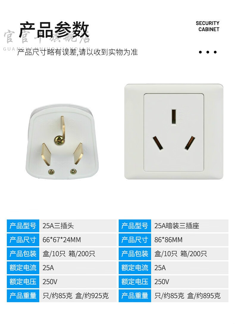 XMSJ three-hole socket plug air conditioner water heater high power 25A three-pole 86 panel three-phase industrial plug 220V three plug 25A plug