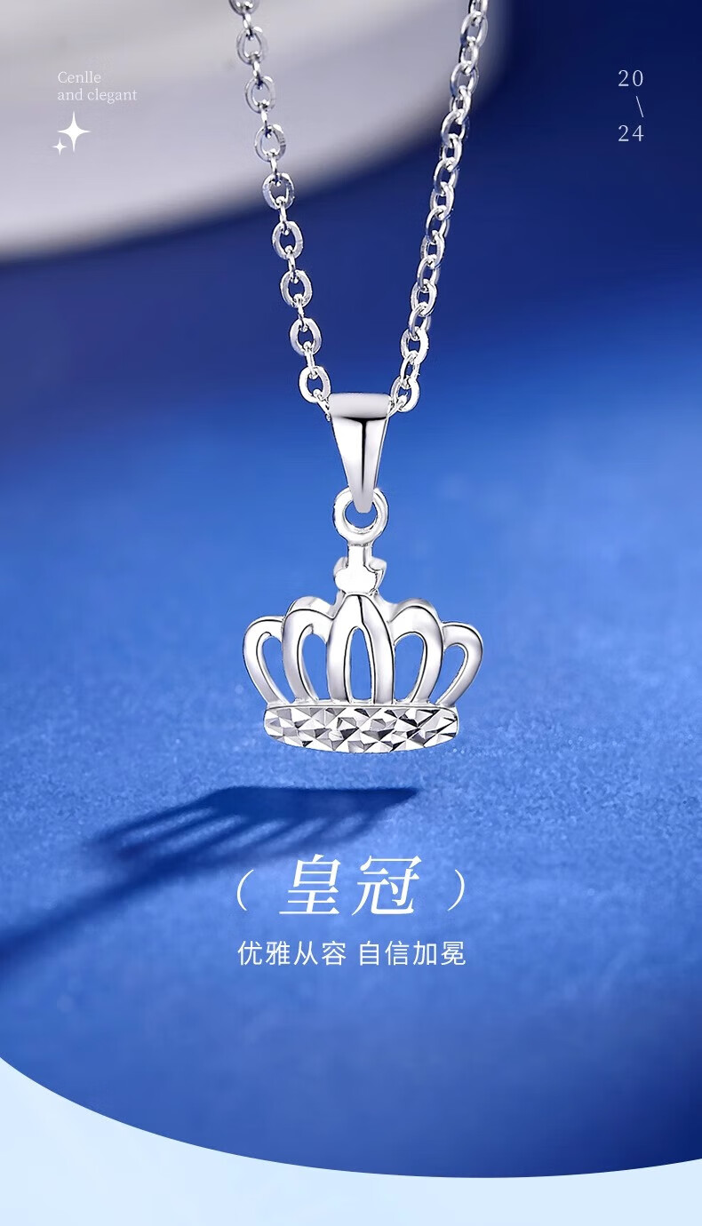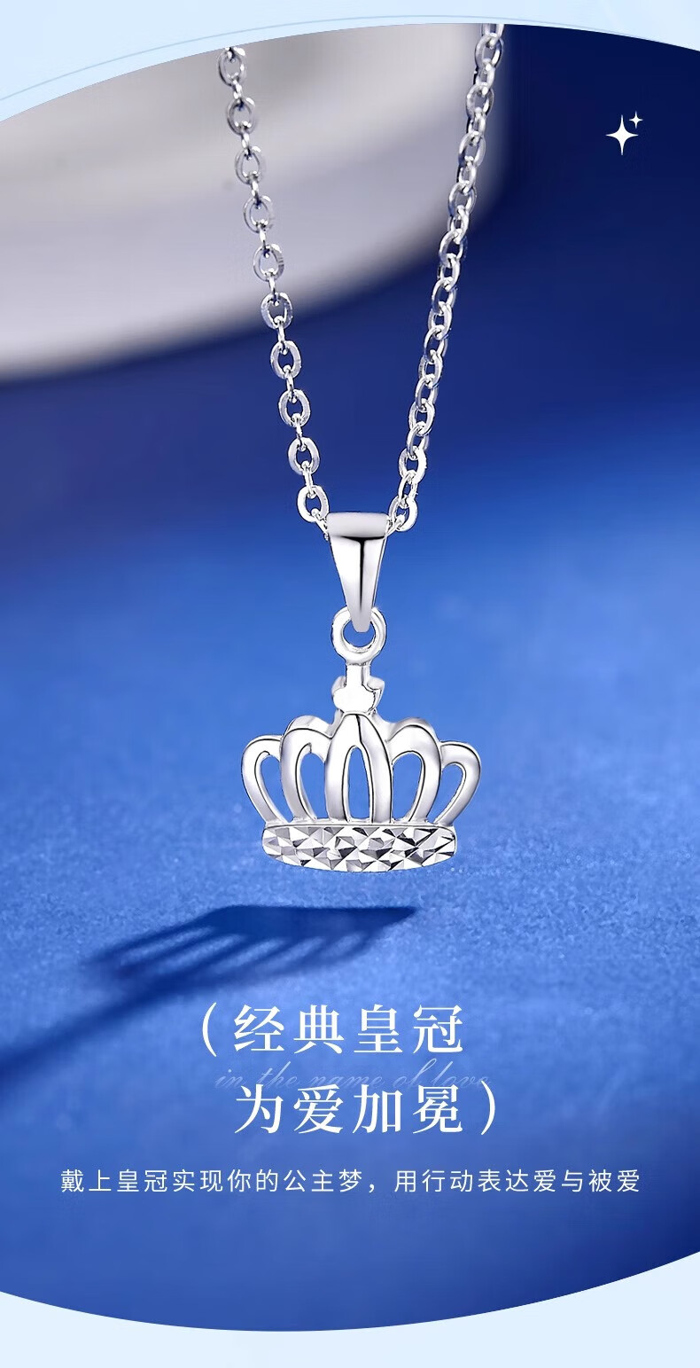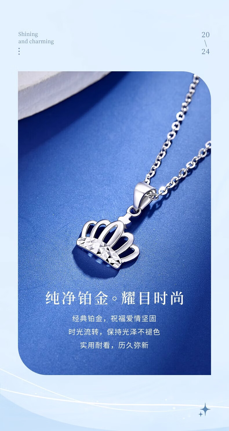 Lao Fengxiang PT950 platinum crown pendant for women, 2025 Chinese Valentine's Day Teacher's Day gift for girlfriend, Year of the Horse, zodiac year gift, PT950 platinum crown pendant, about 1.2g, free silver chain