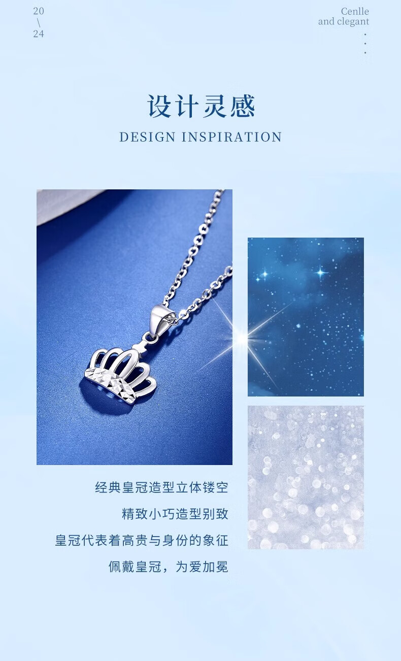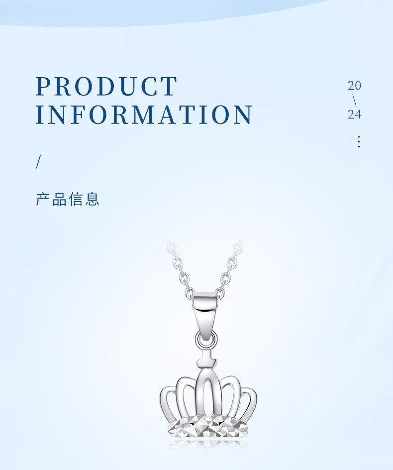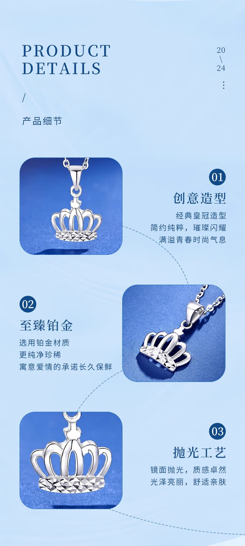 Lao Fengxiang PT950 platinum crown pendant for women, 2025 Chinese Valentine's Day Teacher's Day gift for girlfriend, Year of the Horse, zodiac year gift, PT950 platinum crown pendant, about 1.2g, free silver chain