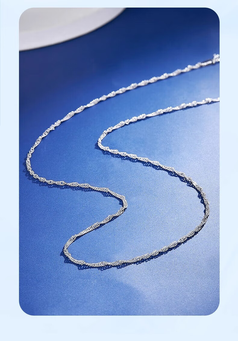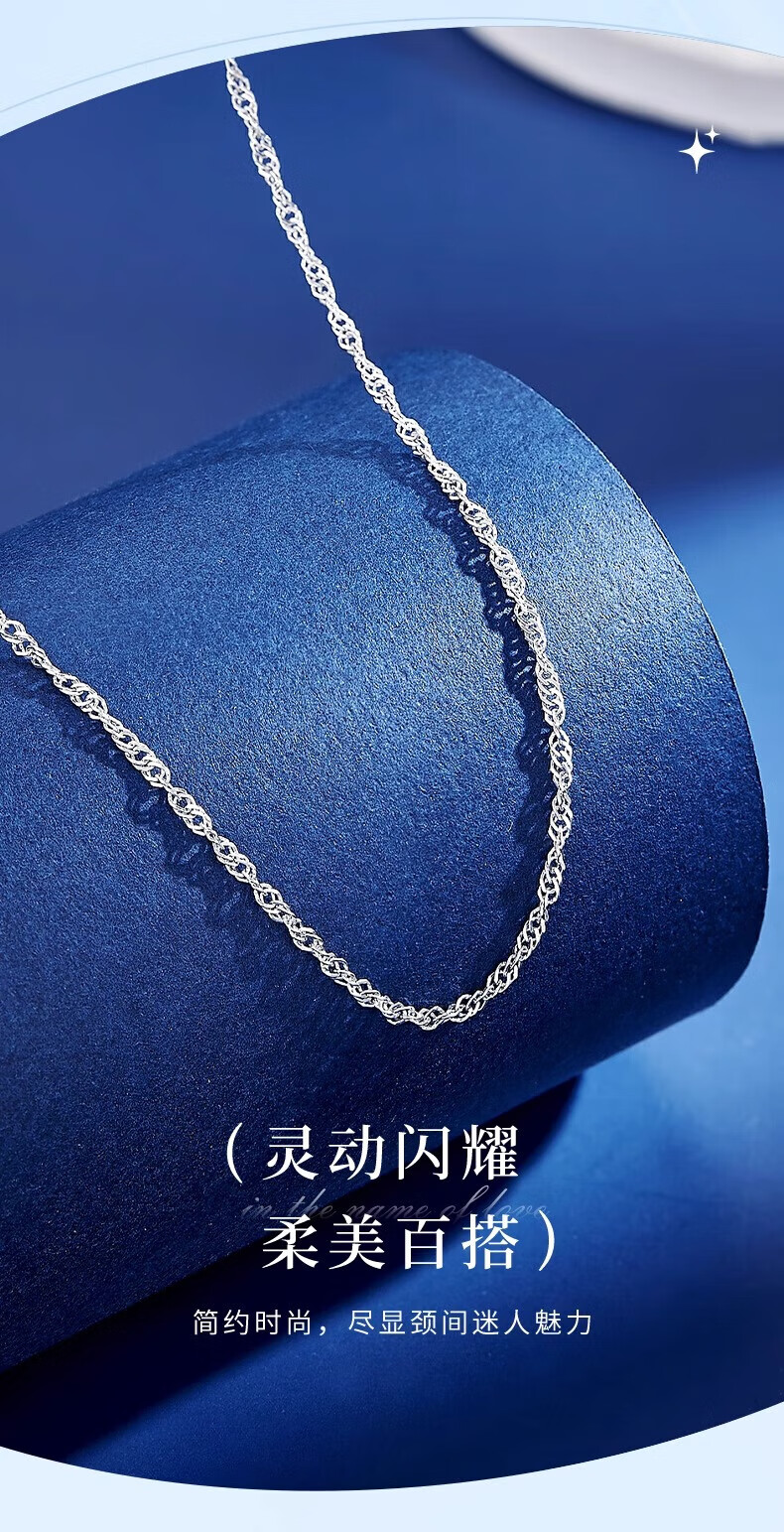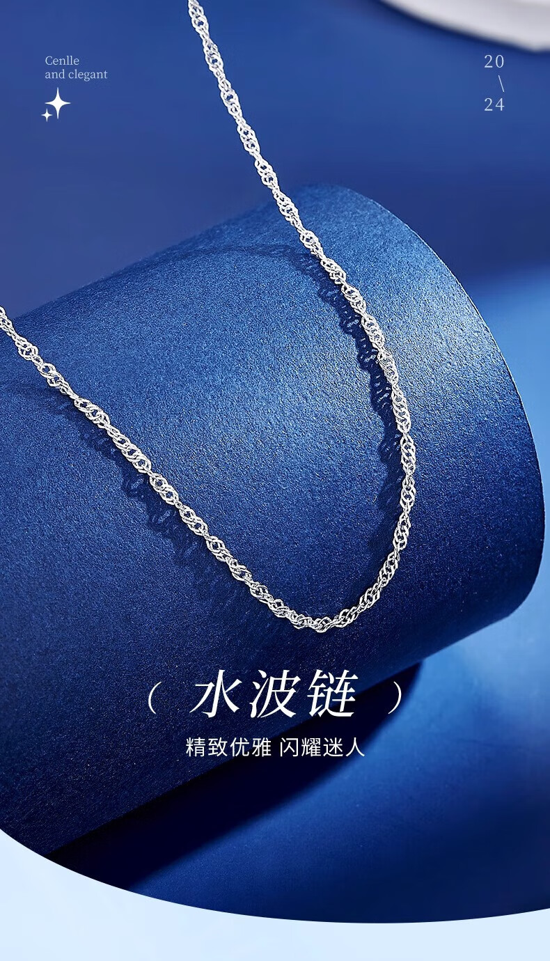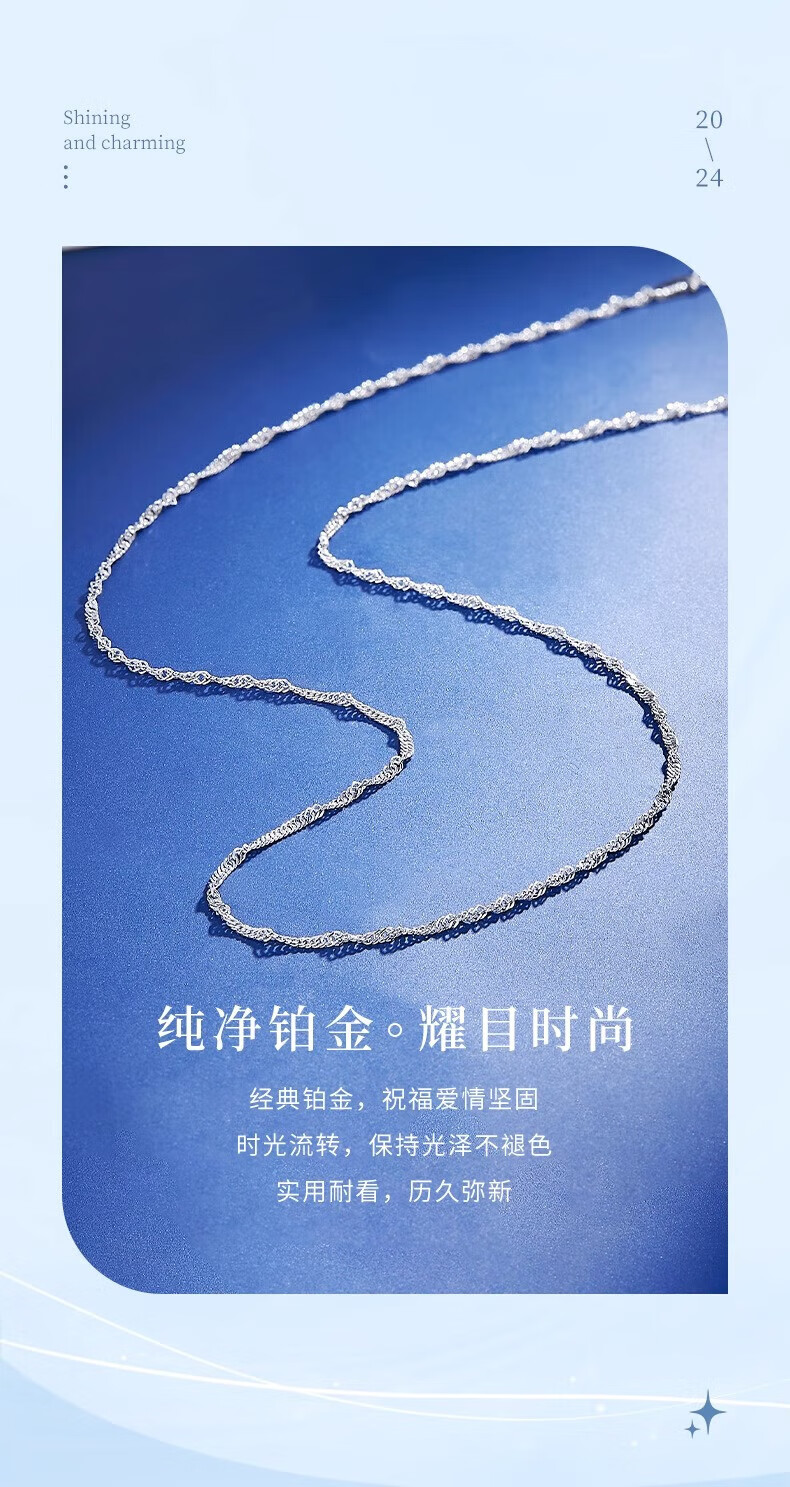 Lao Fengxiang PT950 platinum necklace for men and women, plain chain, classic platinum necklace, birthday gift, Year of the Horse, animal year gift, PT950 platinum water wave chain, about 3.4g, brand gift box