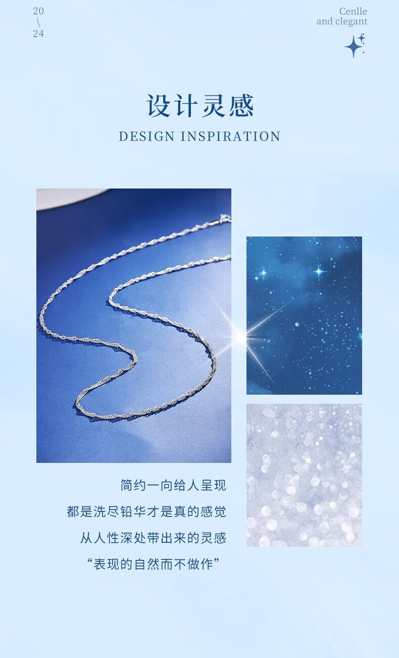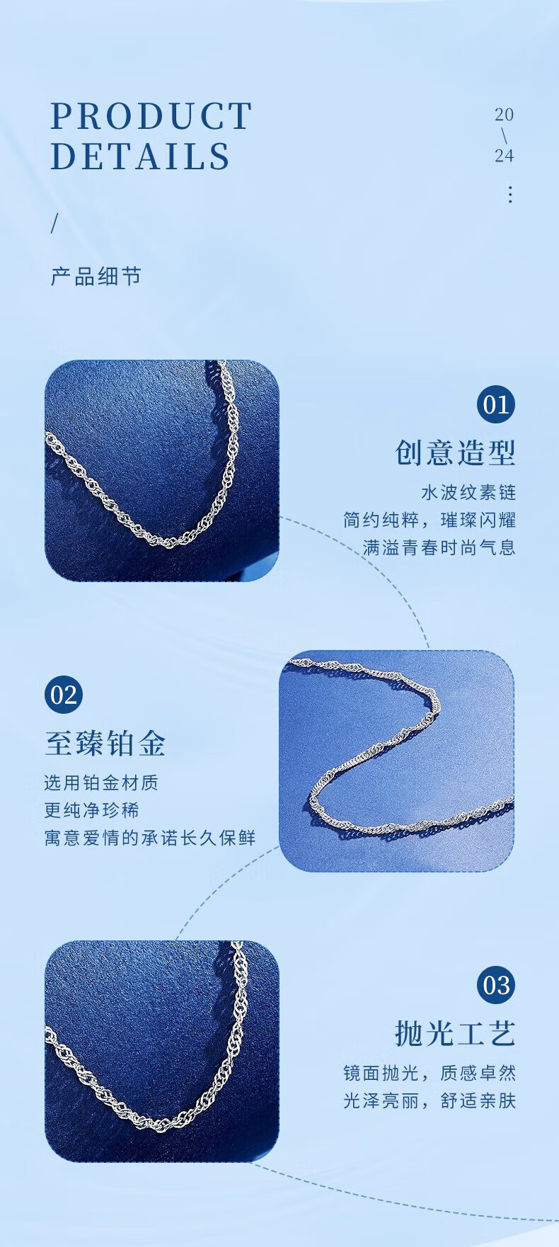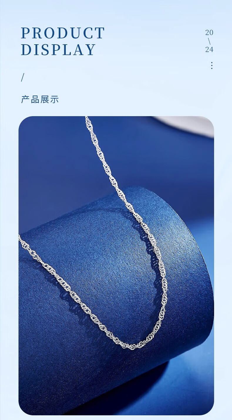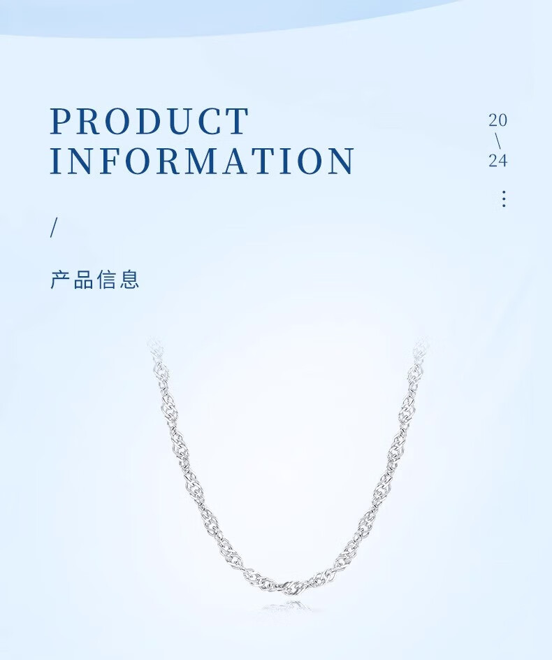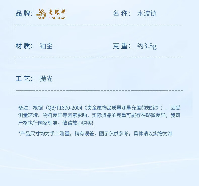 Lao Fengxiang PT950 platinum necklace for men and women, plain chain, classic platinum necklace, birthday gift, Year of the Horse, animal year gift, PT950 platinum water wave chain, about 3.4g, brand gift box