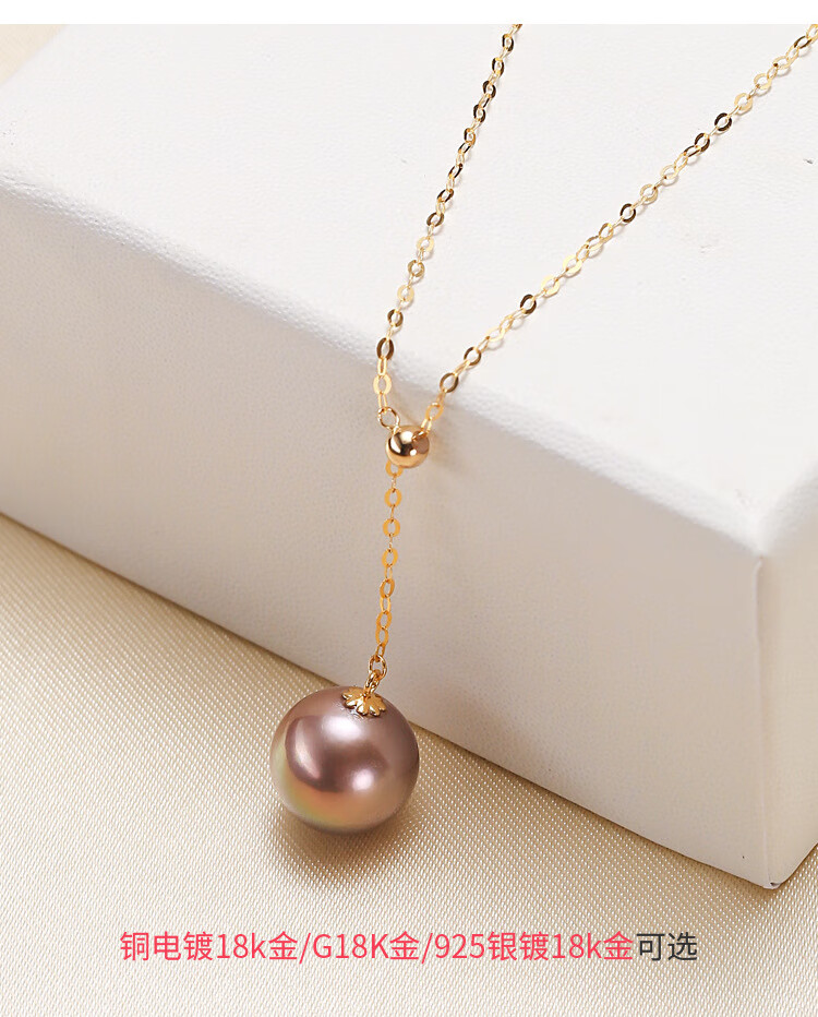 Peimeng purple pearl pendant necklace 925 silver adjustable gift to girlfriend 45cm 9mm purple pearl with chain