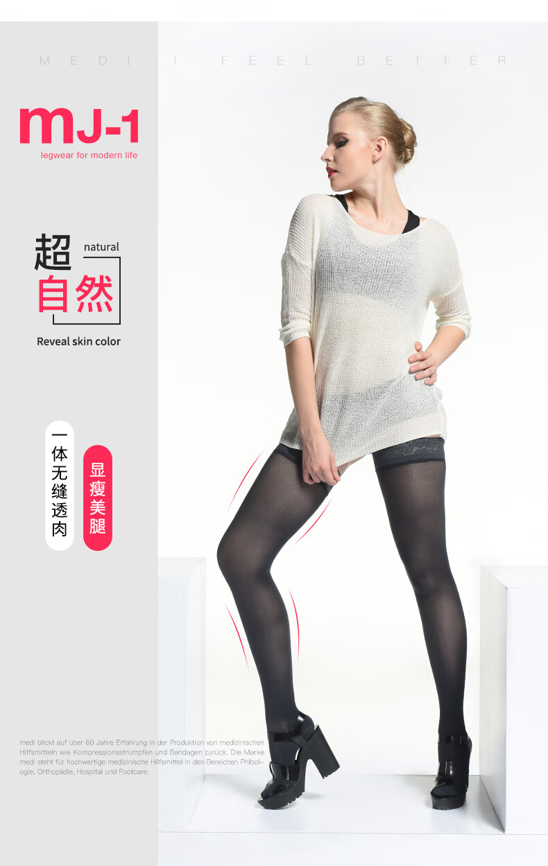 MEDI QTTO German medi beautiful leg shaping stockings nude feeling supernatural fake flesh black translucent long tube knee-length sexy black M