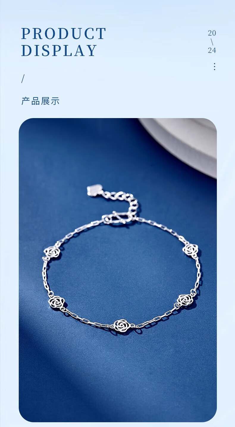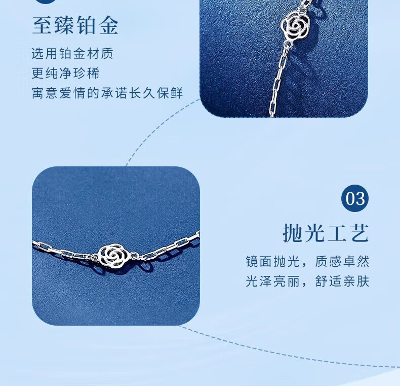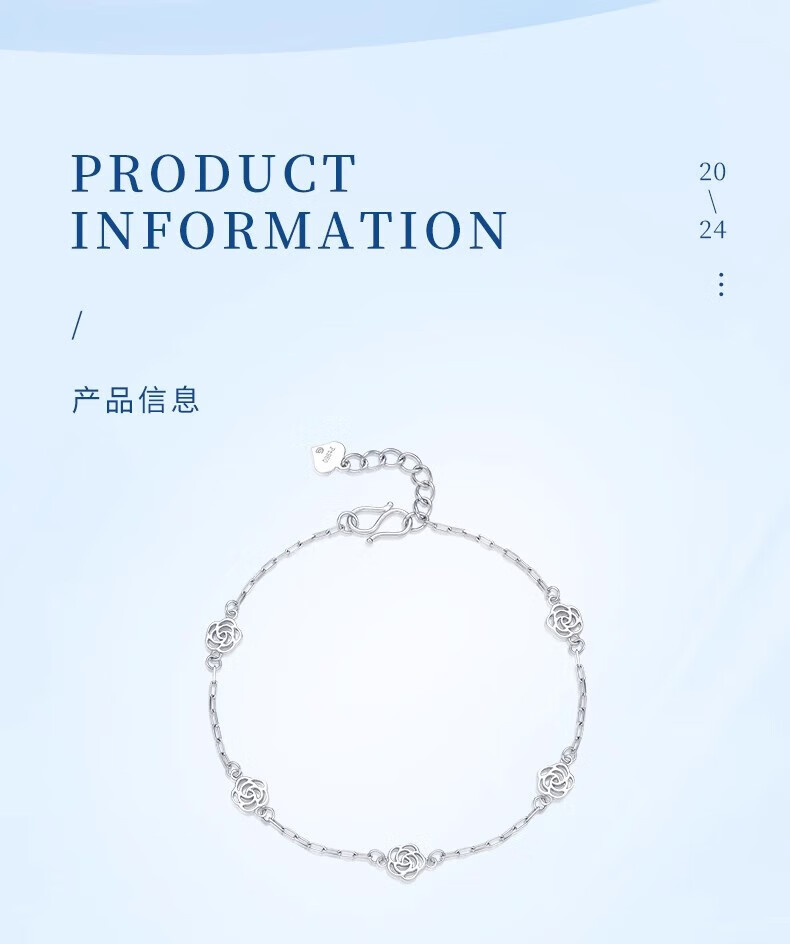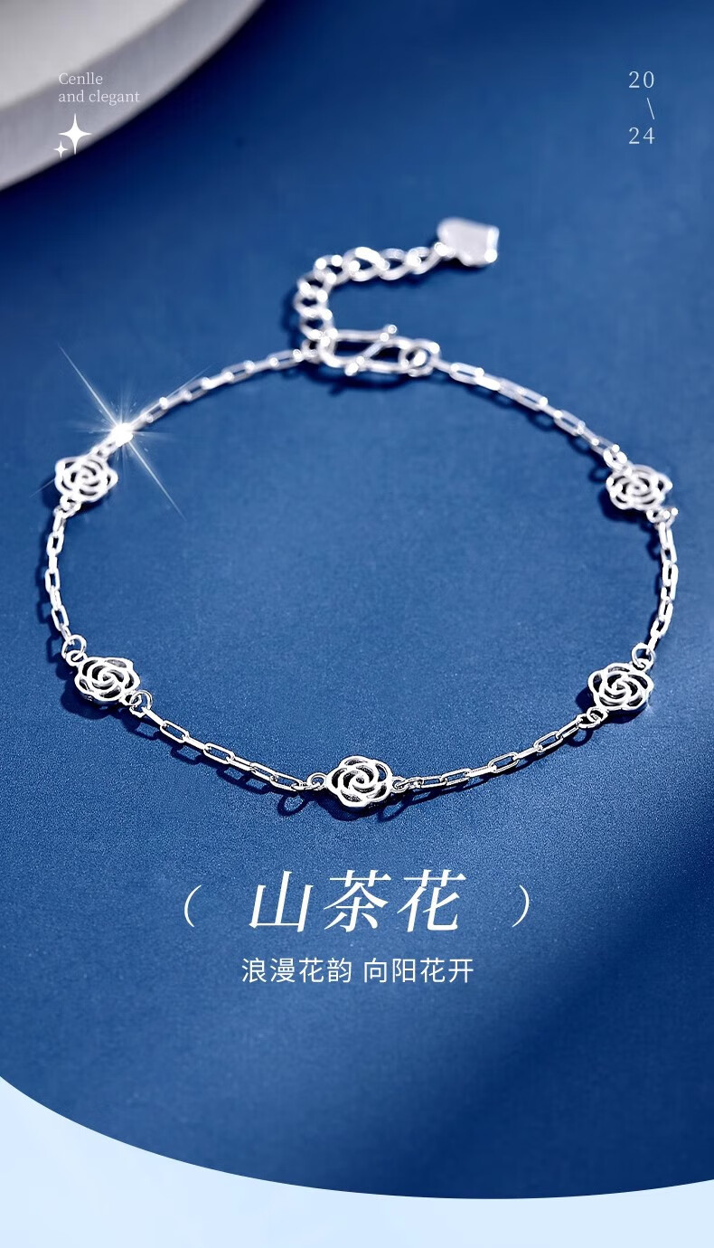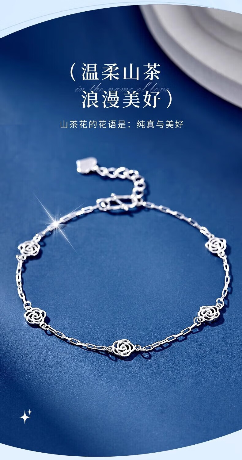 Lao Fengxiang Camellia PT950 platinum bracelet for women platinum transfer bead hand Chinese Valentine's Day Teacher's Day gift for the Year of the Horse and animal year gift Rose platinum bracelet about 2.8g