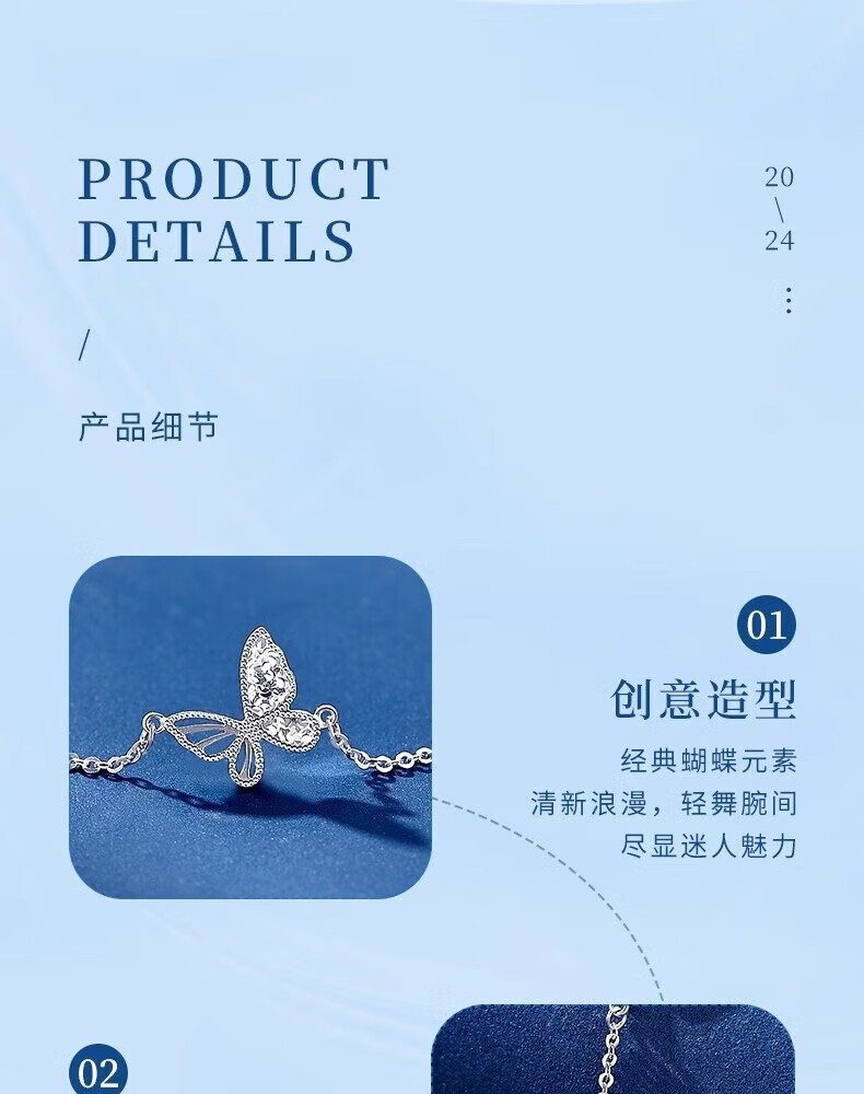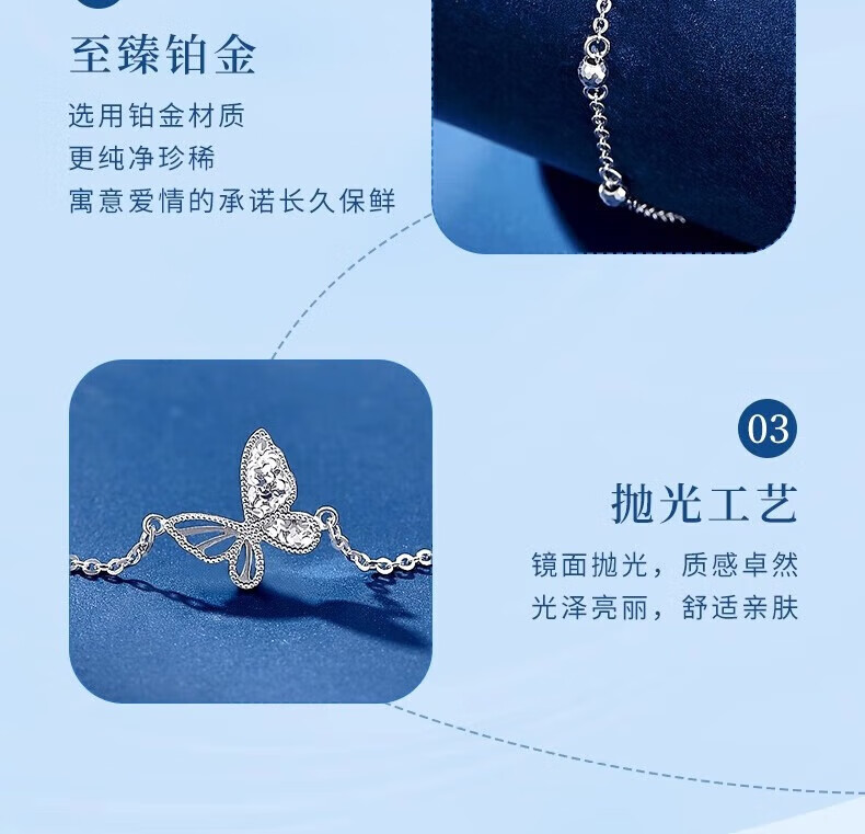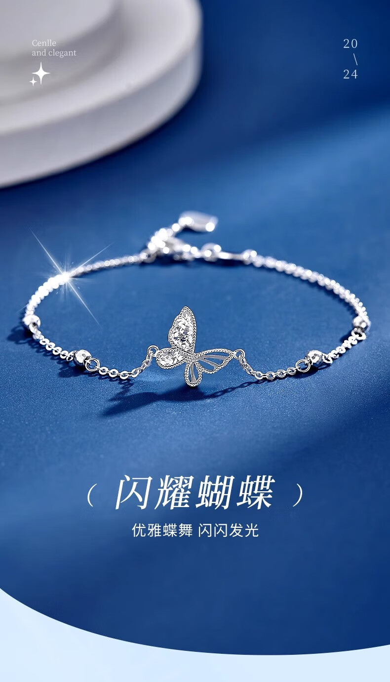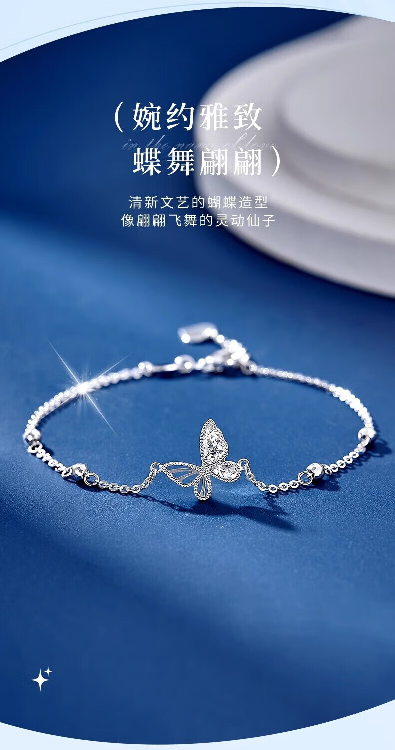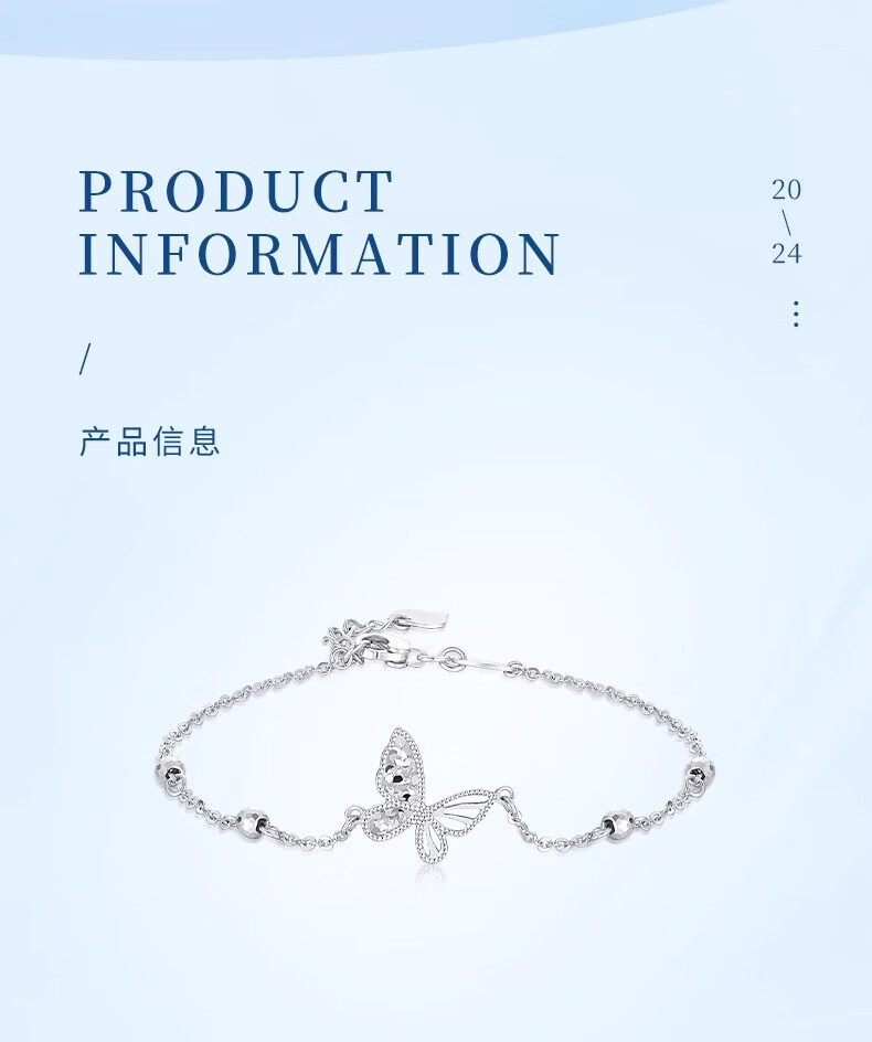 Lao Fengxiang PT950 platinum bracelet for women, platinum transfer beads, butterfly hand, Chinese Valentine's Day Teacher's Day gift, Year of the Horse, animal year gift, butterfly platinum bracelet, about 2.6g