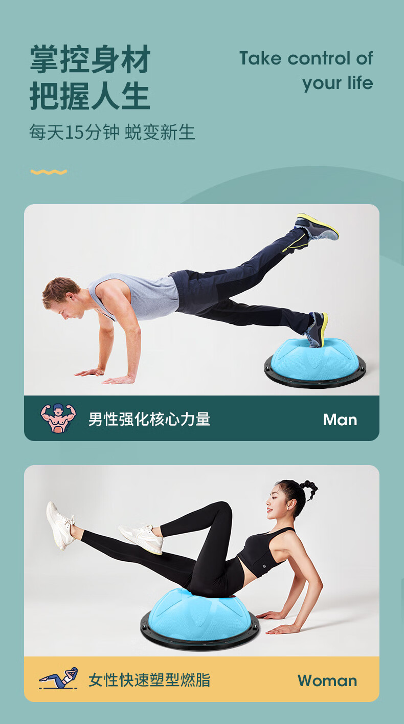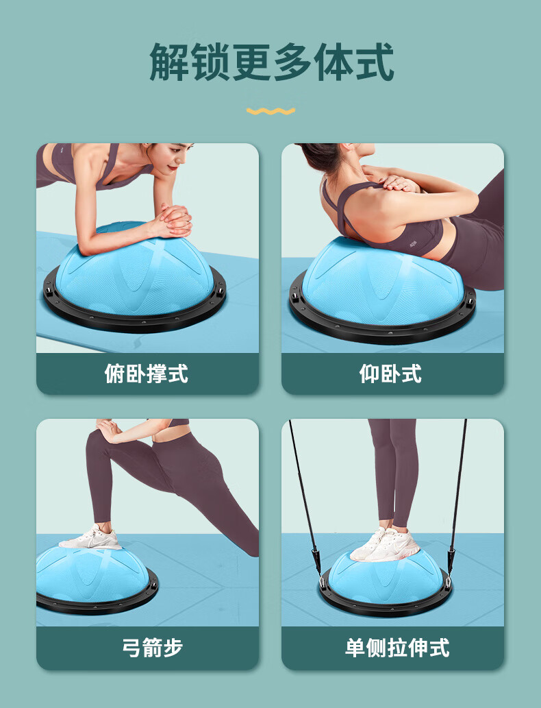 Aoyi Wave Speed Ball Semi-circular Balance Ball Thickened Explosion-proof Yoga Fitness Ball Yoga Equipment Pilates Foot Hemisphere Taro Purple High Elasticity Fat Burning Free Tension Rope