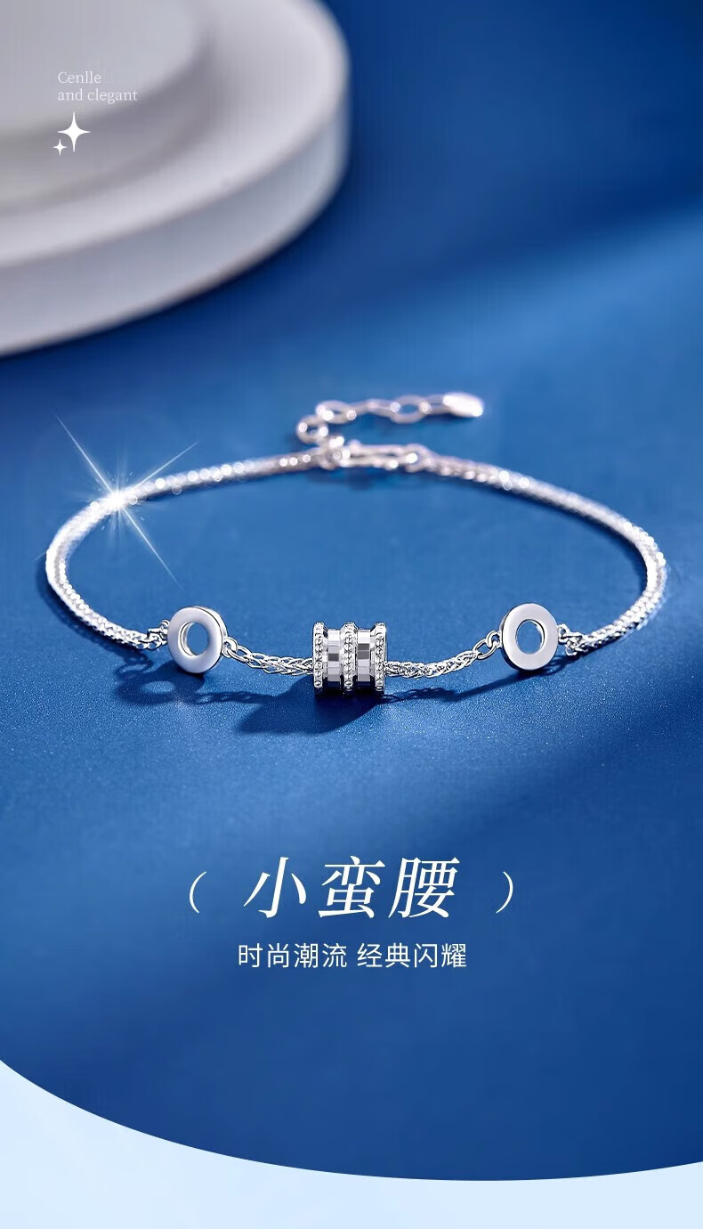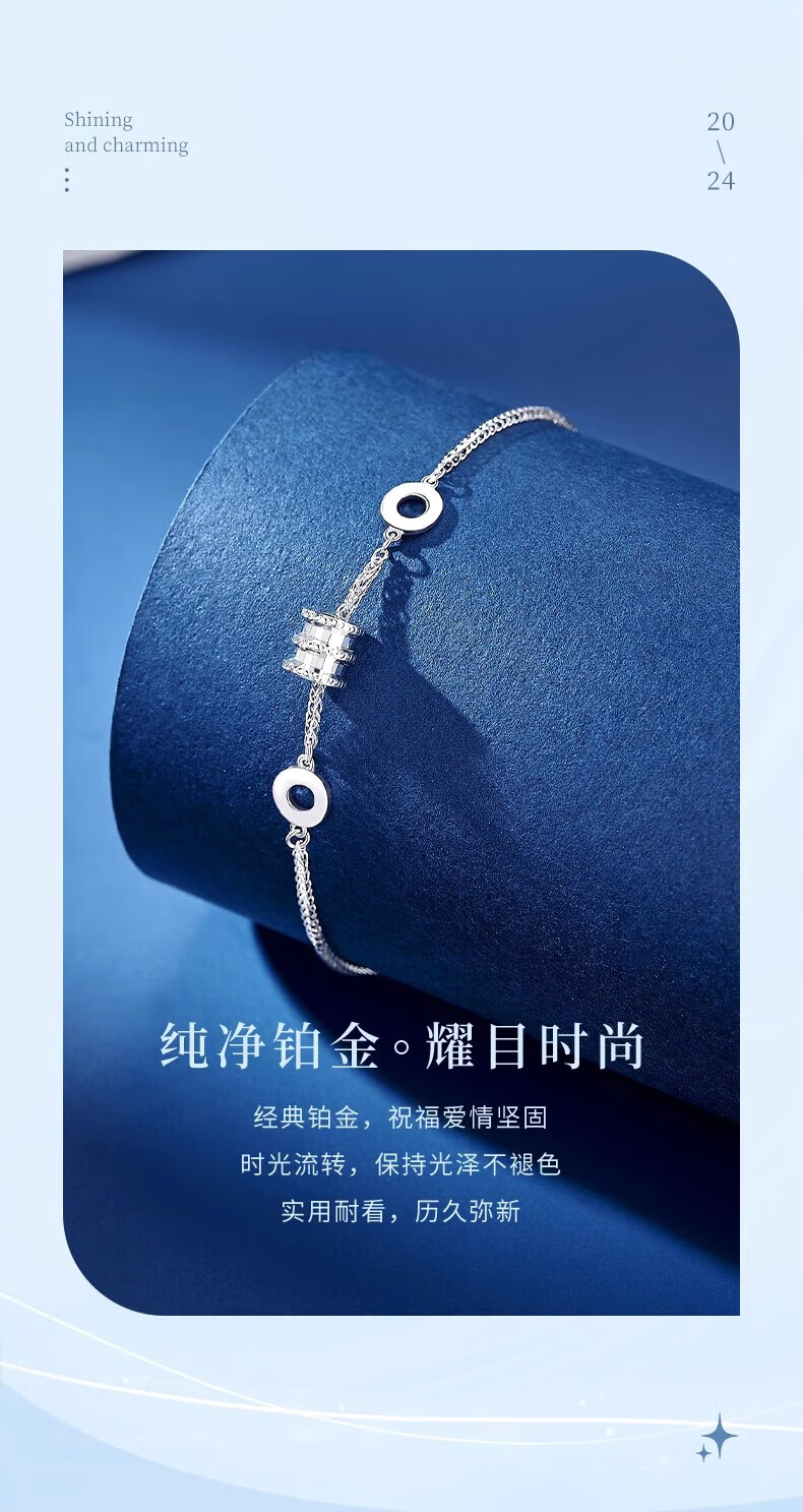 Lao Fengxiang Xiaoman waist pure PT950 platinum bracelet for women light luxury niche Mid-Autumn Festival birthday gift for girlfriend and wife Xiaoman waist platinum bracelet about 4.2g