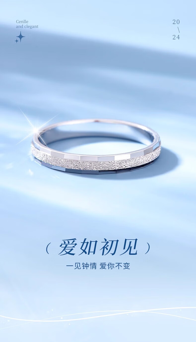 Lao Fengxiang PT950 platinum ring, women's love is like first sight, plain ring, Chinese Valentine's Day gift for girlfriend and wife, No. 11, love is like first sight, platinum ring, about 3.7g