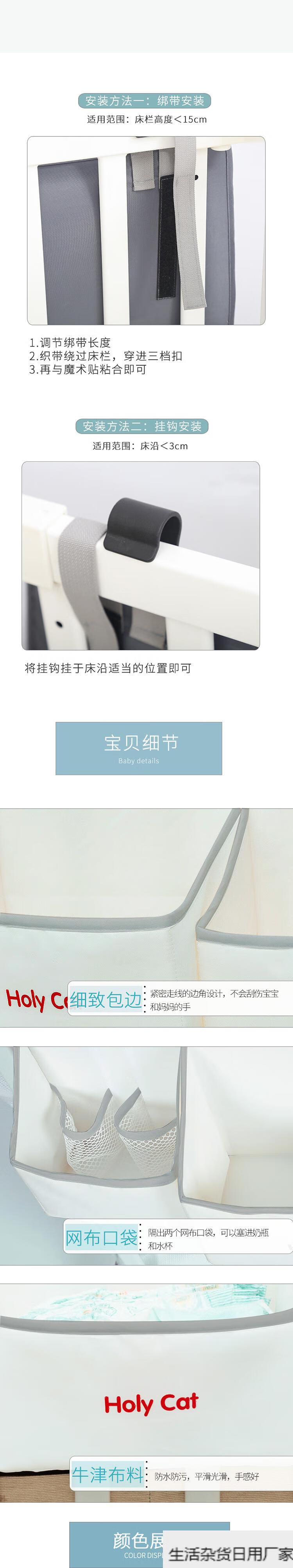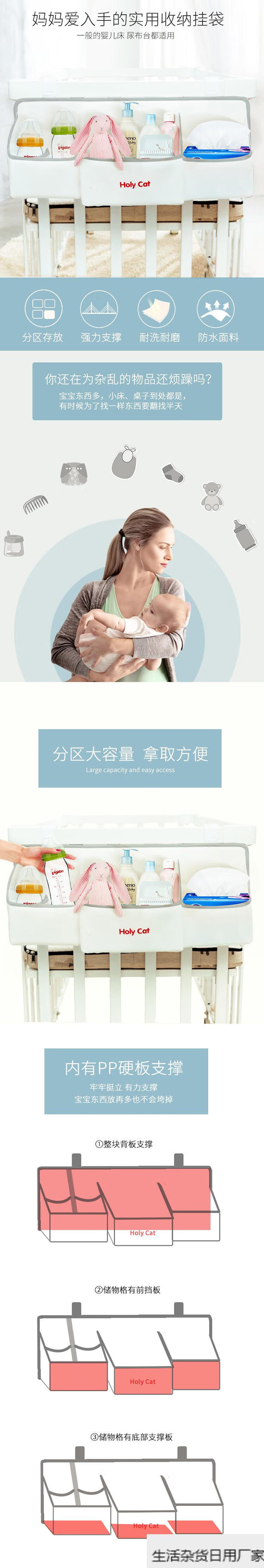 Baby bedside hanging bag diaper storage bag storage bag ready stock dark gray
