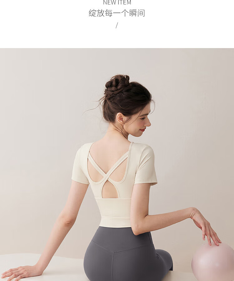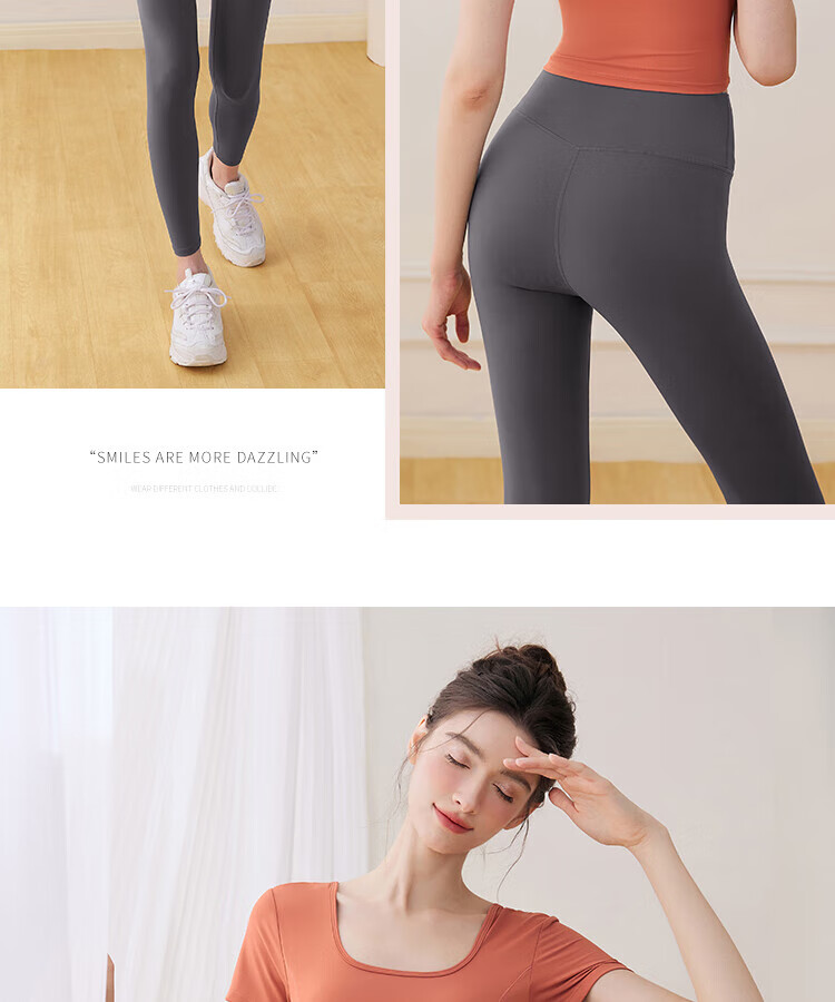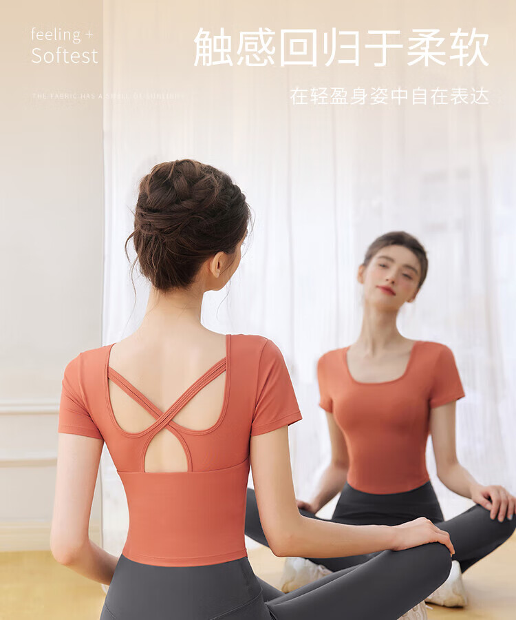 Floredshing Yoga Wear 2025 New Women's Suit Sporty High-End Pilates Training Beautiful Short-Sleeve Summer Caramel Orange Short-Sleeve + Black Cropped Pants One Size XL
