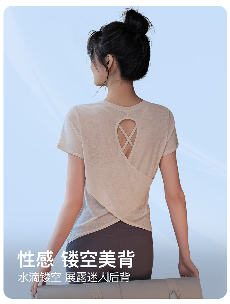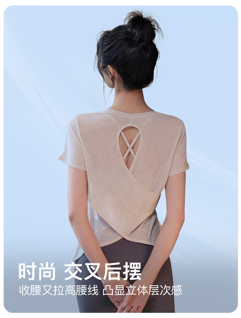 ACKDCS Yoga Wear Top Women's Hollow Beautiful Back Sports Short Sleeve T-Shirt Pilates Fitness Suit Summer Forest Green S S Recommendation 80-95Jin Jin is equal to 0.5 kg