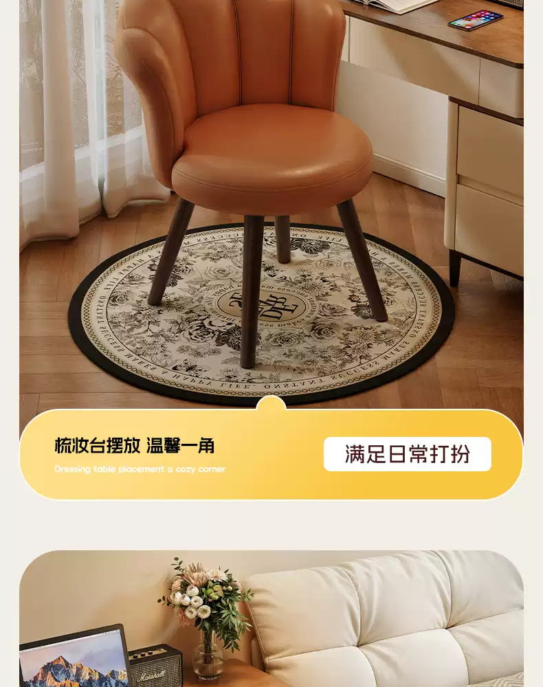Yusenyi Makeup Chair Home Bedroom Girls Dressing Table Rotatable Backrest Manicure Stool Cloakroom Light Luxurious and High-Level Pressure Relief Sponge Cushion Dark Green丨Oiled Wax Leather-Walnut Solid Wood Legs Wear-Resistant and Breathable