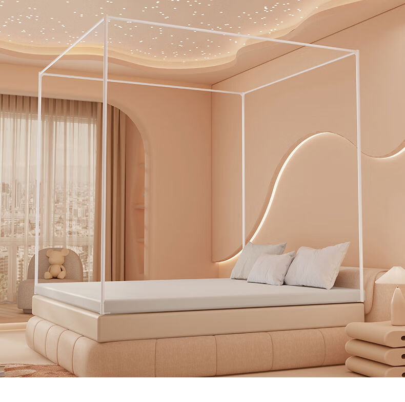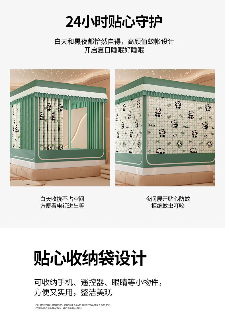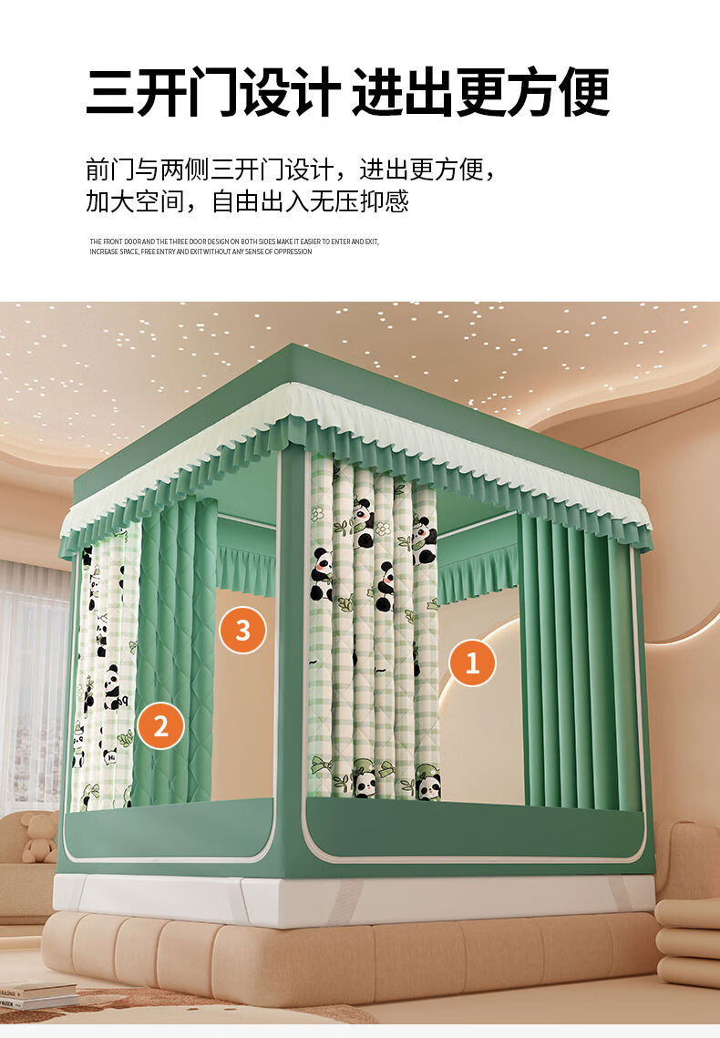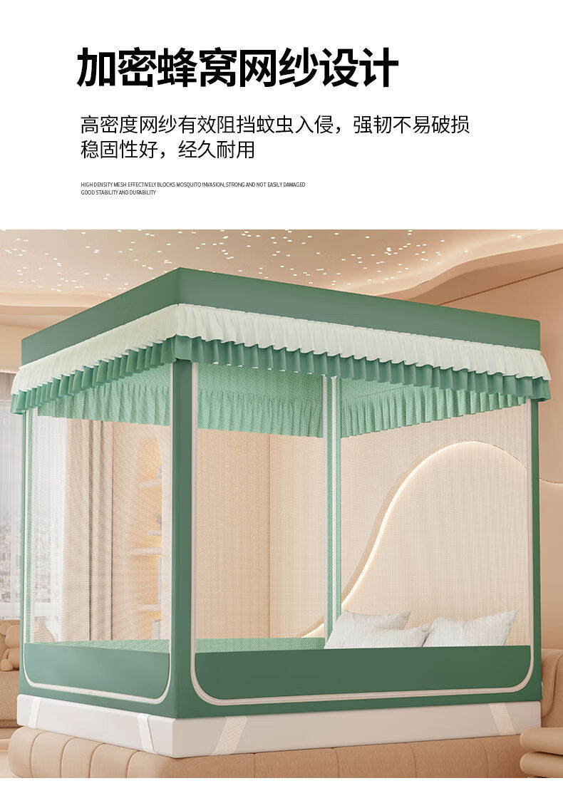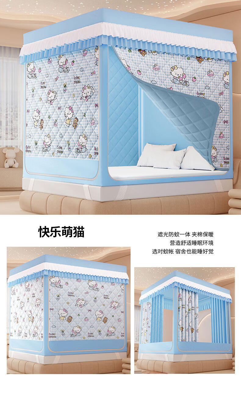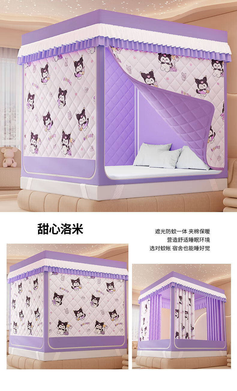 Yusenyi autumn and winter warm and cold-proof mosquito net, quilted home baby anti-fall bed tent with zipper and thickened bracket new style quilted lucky dog A-type encrypted tent + three-sided quilted blackout curtain + windproof and warm + back-end suitable for bed-width 1*length 190cm