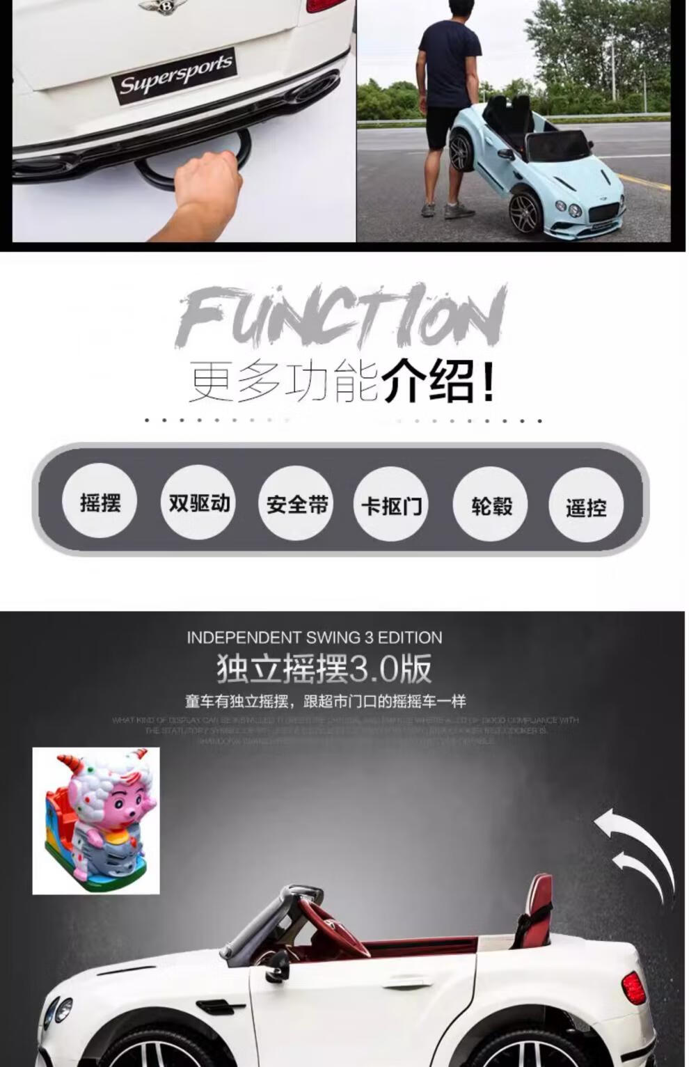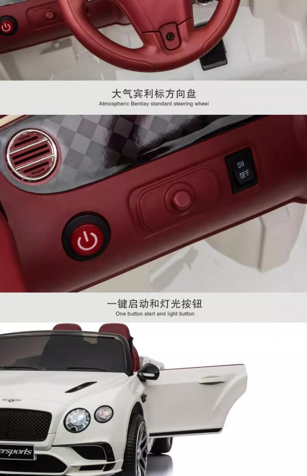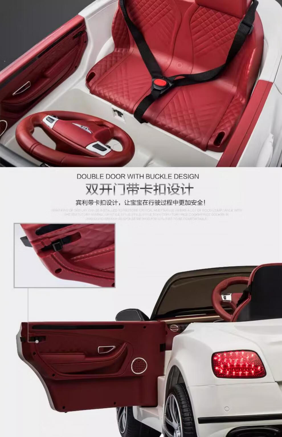 Bentley double children's electric car four-wheel baby can sit on dual-drive toy car child remote control baby car charging red version dual electric_leather seat_soft wheel_bluetooth_swing+remote control Bentley remote control+self-driving+charging+bluetooth