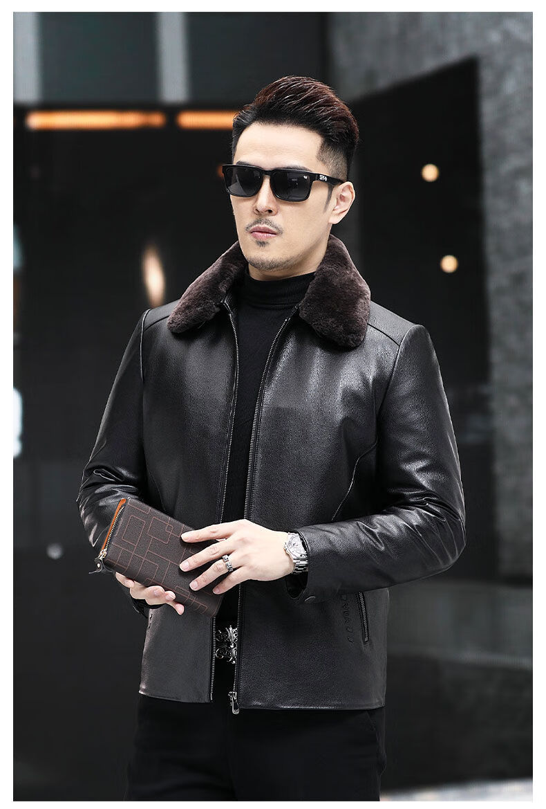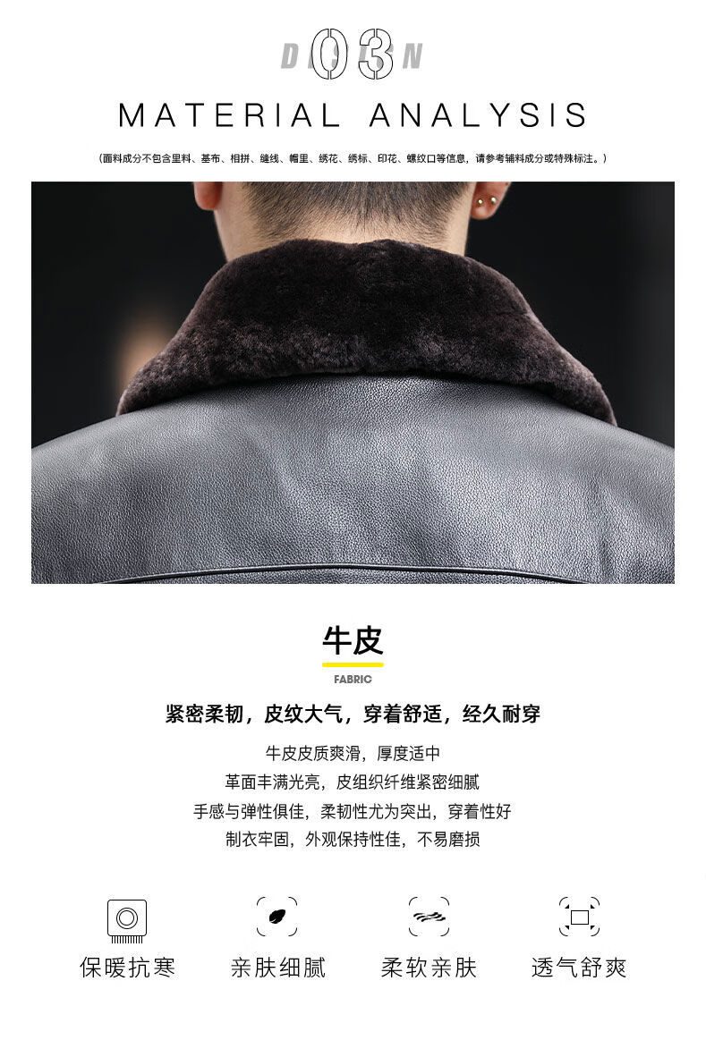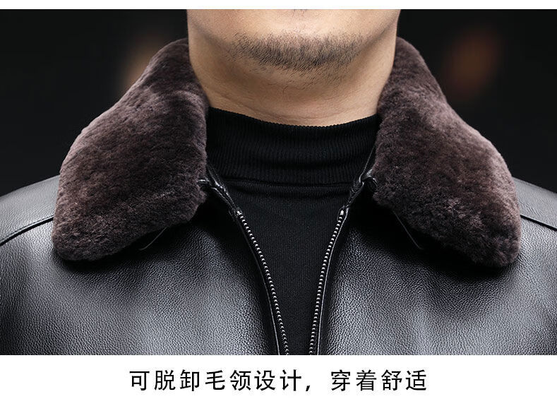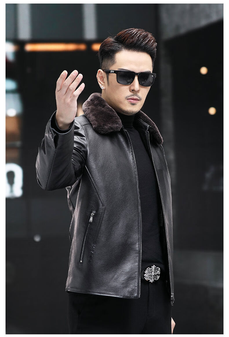 VBA头层牛皮羊毛领羊毛内胆加厚海宁真皮皮衣男皮夹克冬外套5598 黑色 M M95-105斤