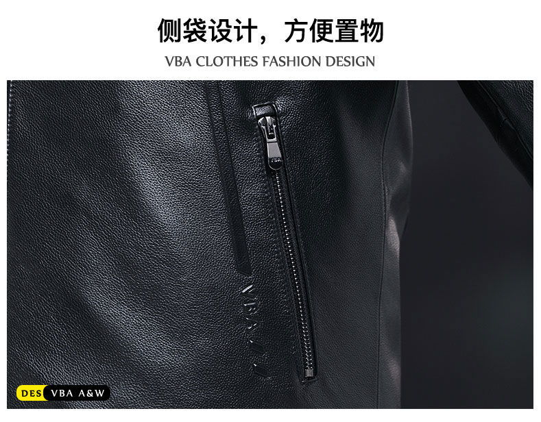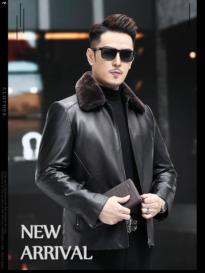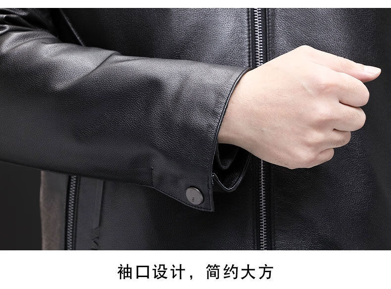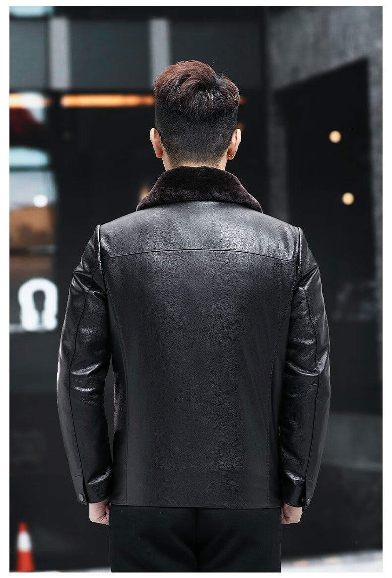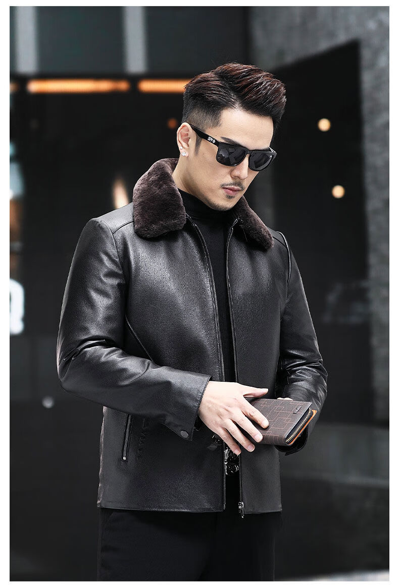 VBA头层牛皮羊毛领羊毛内胆加厚海宁真皮皮衣男皮夹克冬外套5598 黑色 M M95-105斤
