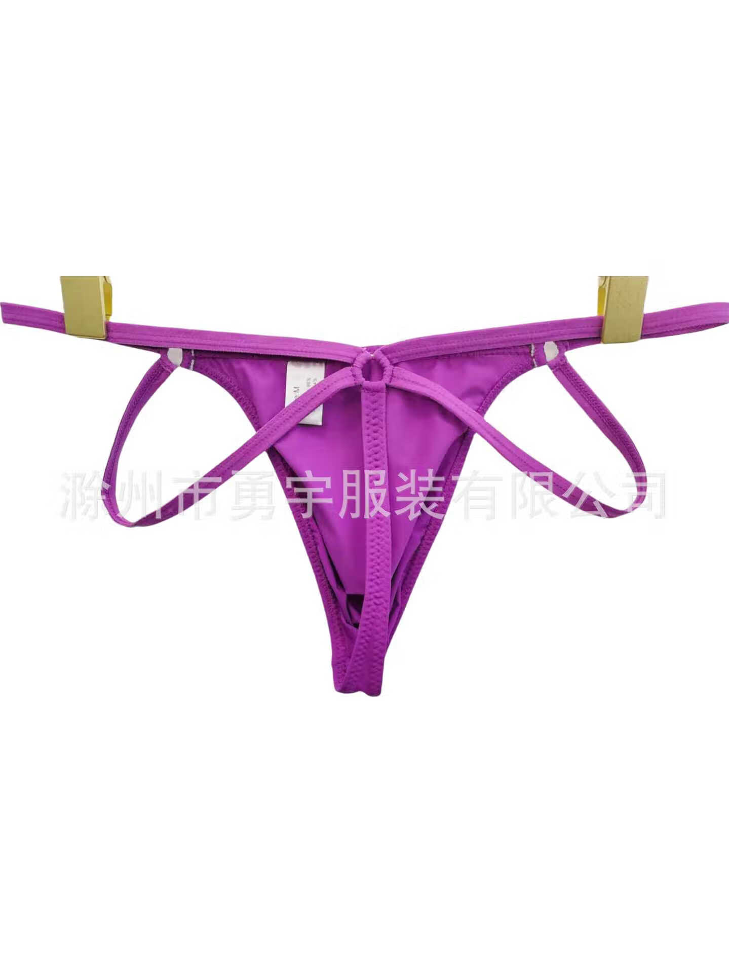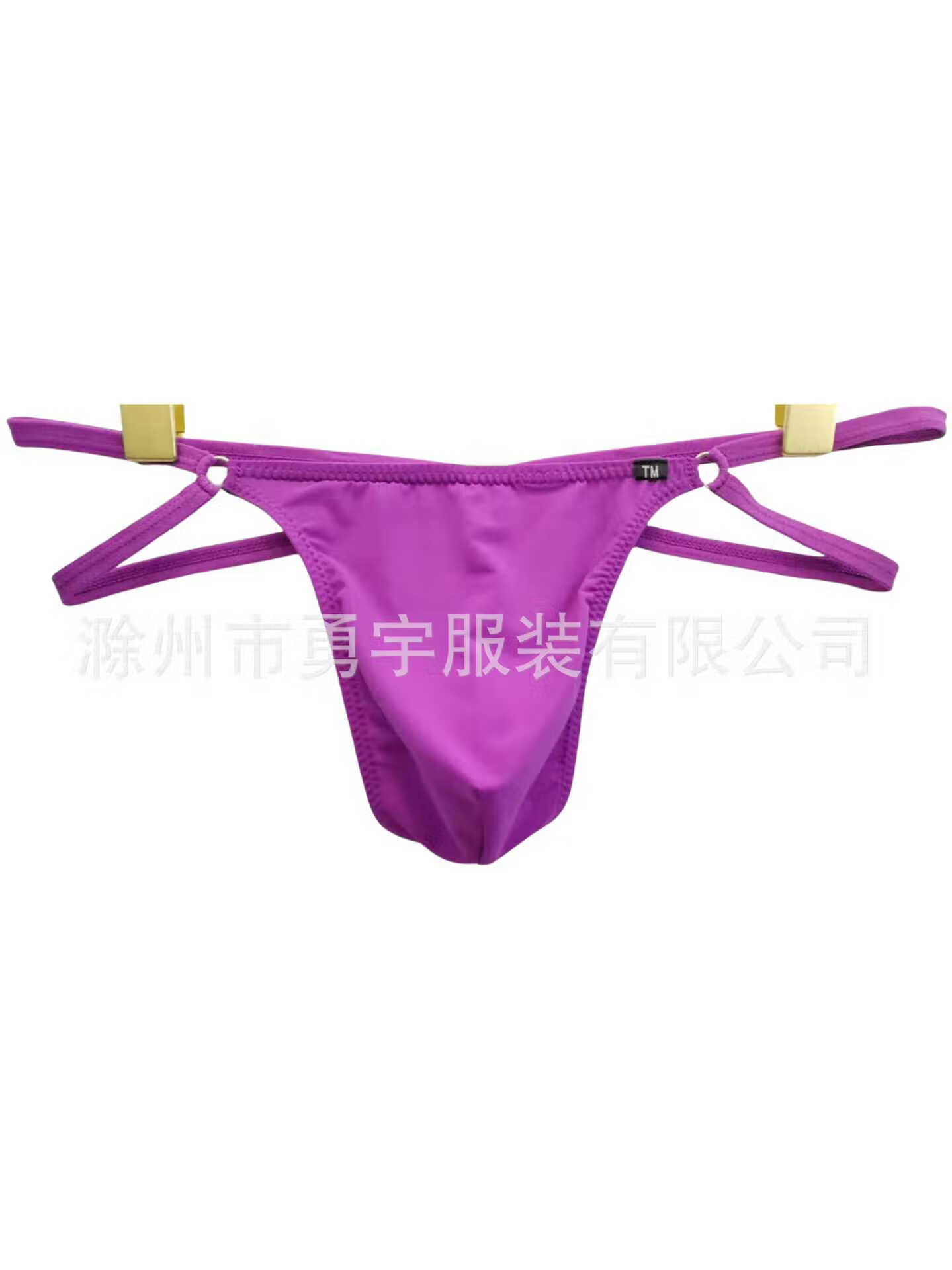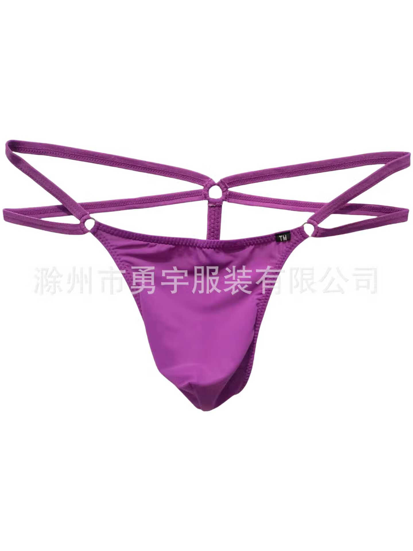 Men's T-string underwear stretch ice silk large pouch double-strap thong underwear with ring sexy underwear men's T-pants breathable purple S