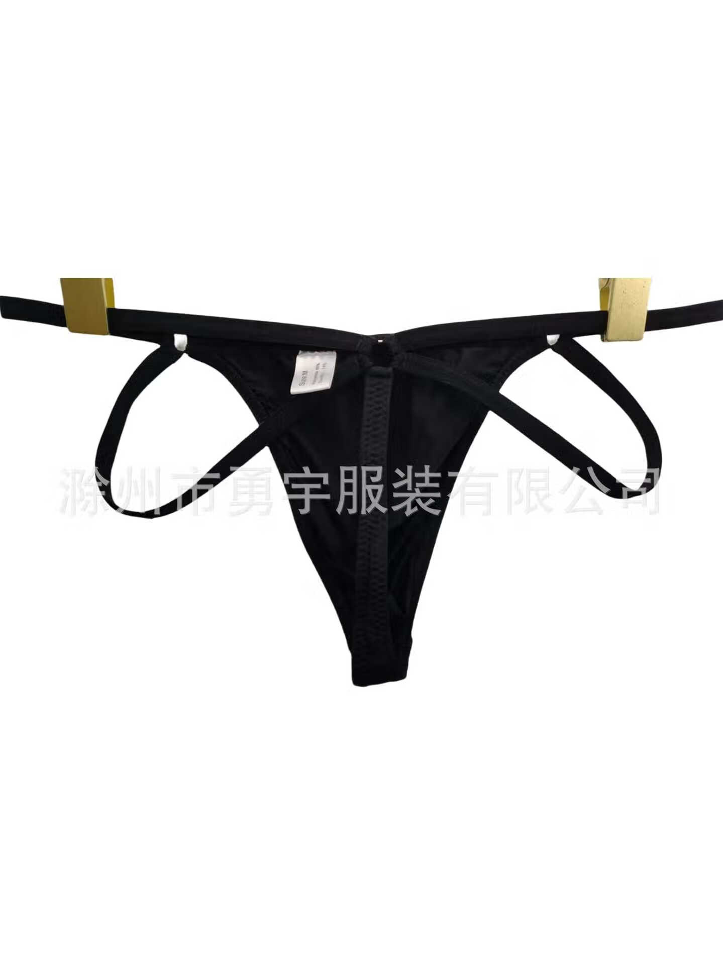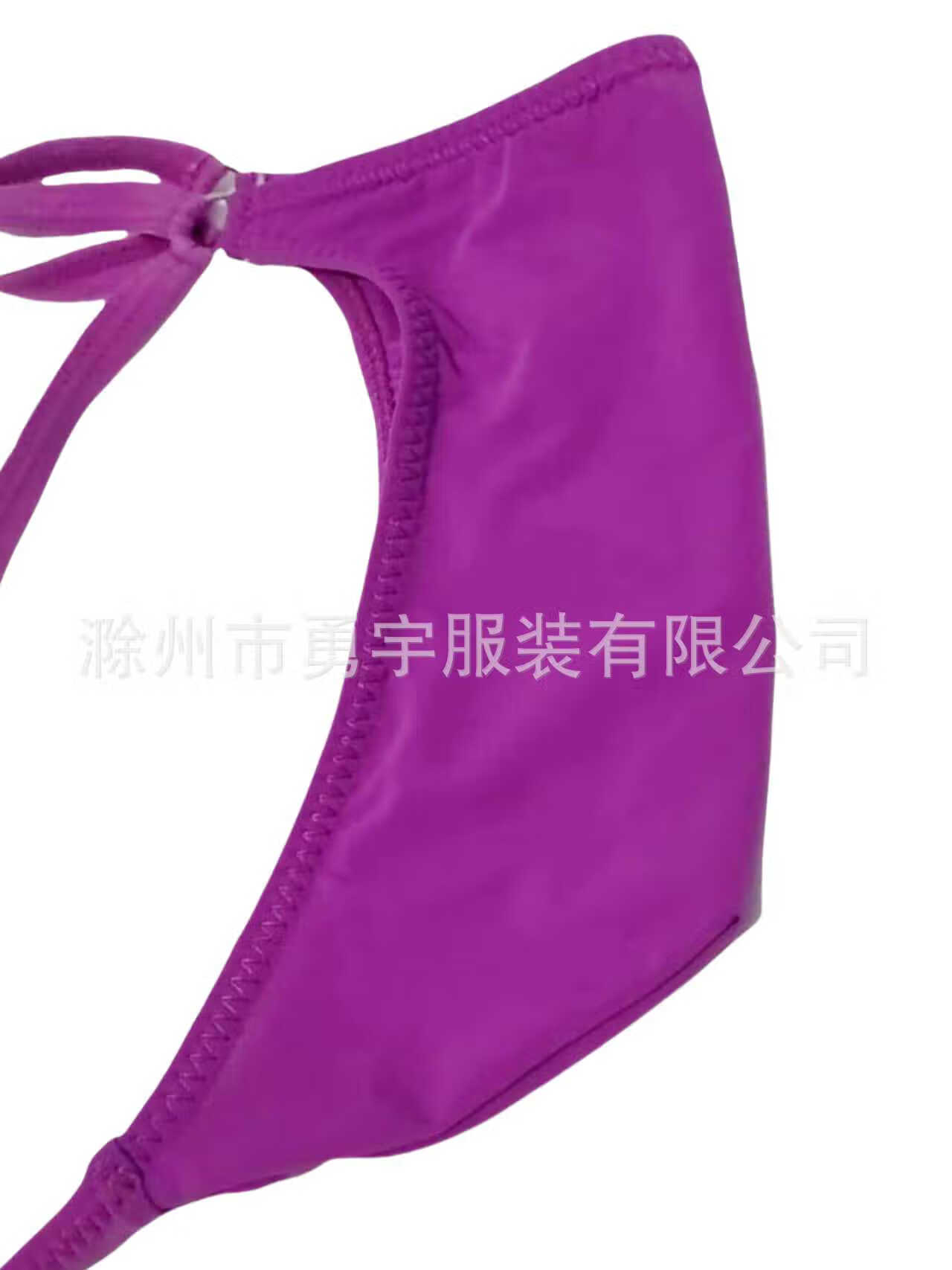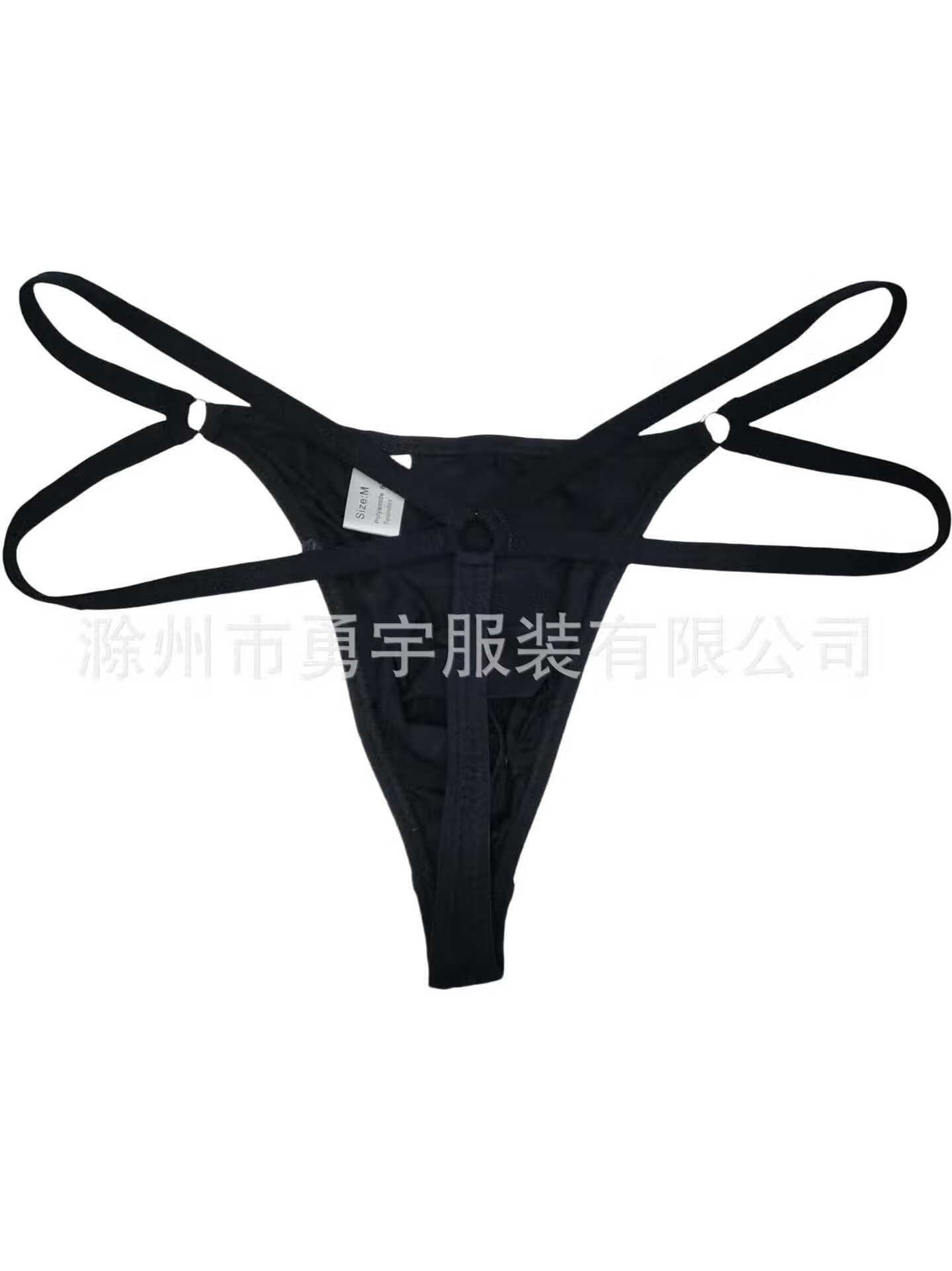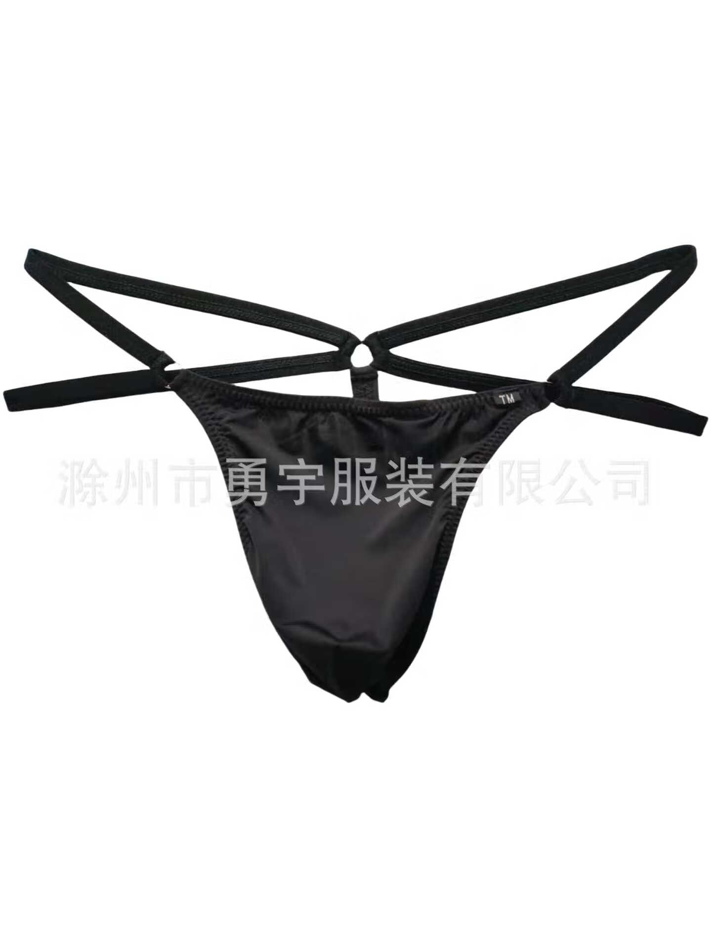 Men's T-string underwear stretch ice silk large pouch double-strap thong underwear with ring sexy underwear men's T-pants breathable purple S