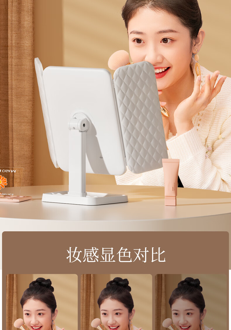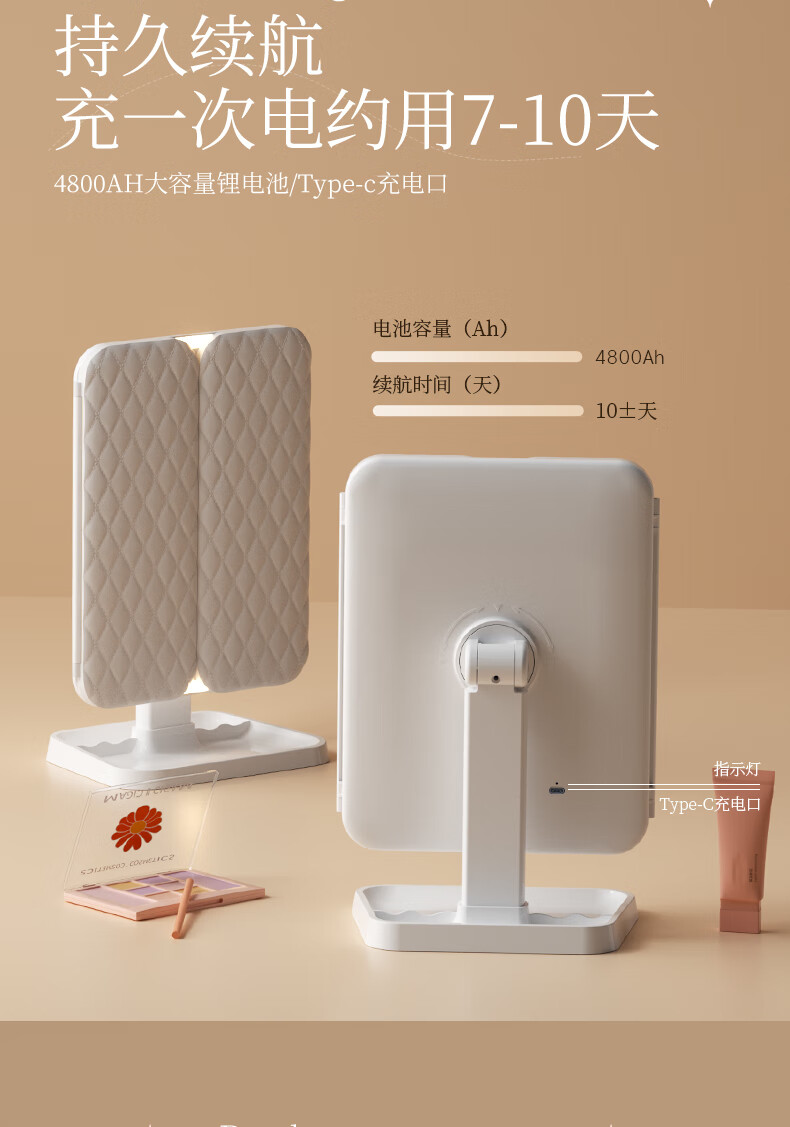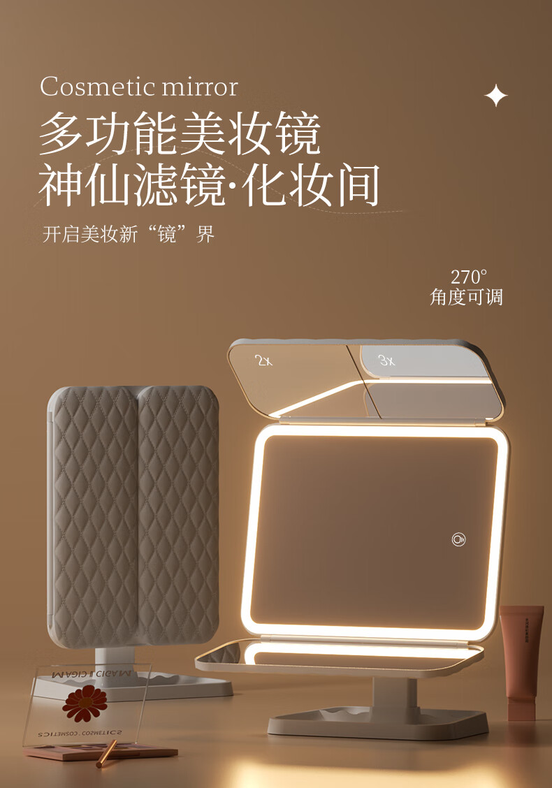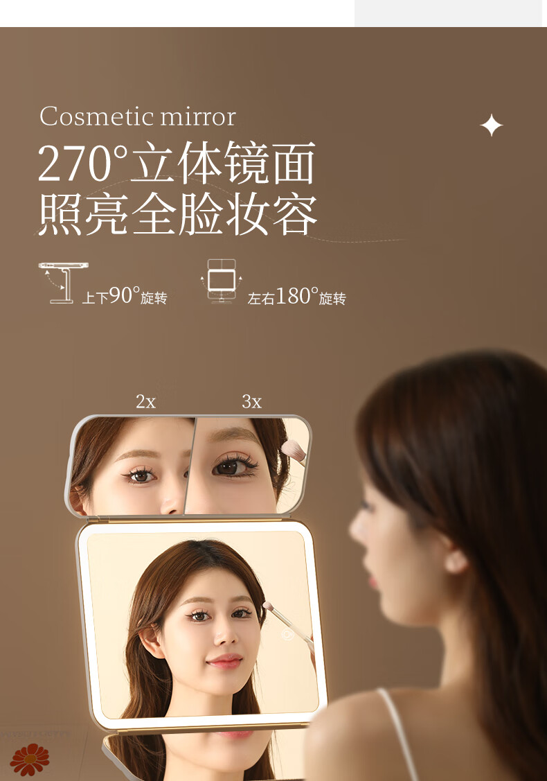 Pandelai quality LED makeup mirror desktop desktop makeup mirror mirror makeup mirror with light desktop desktop stand-up folding home student dormitory magnifying makeup makeup mirror long battery life upgraded pearl white high-brightness lamp beads 270 three-fold mirror -