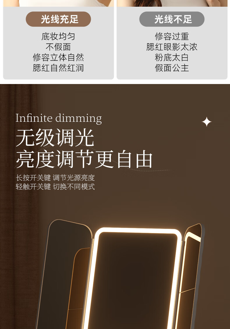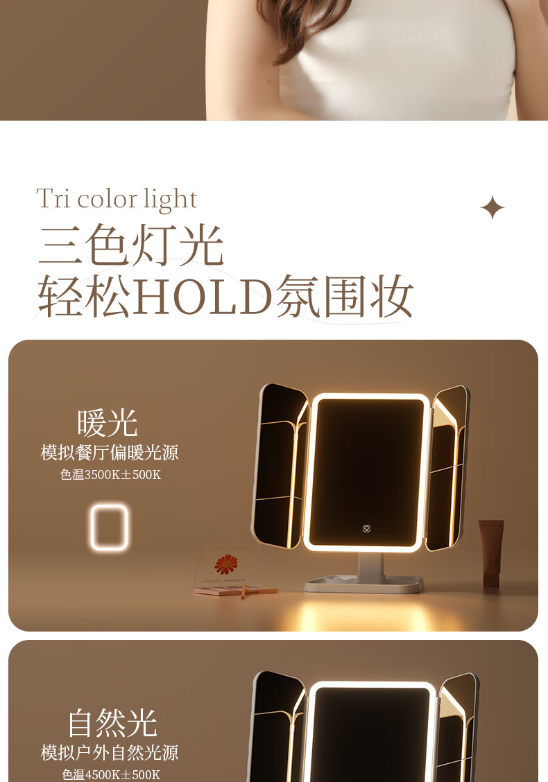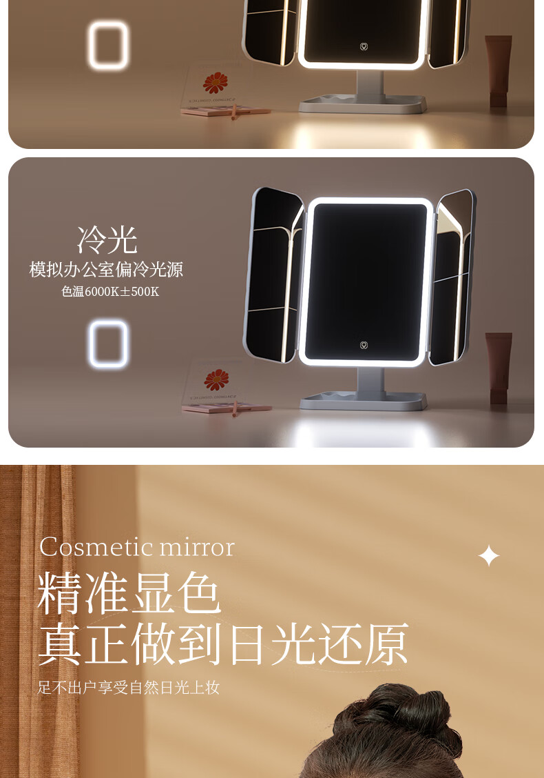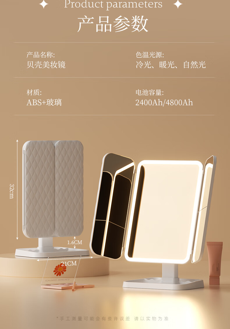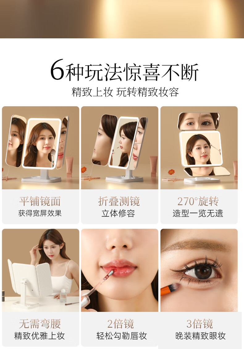 Pandelai quality LED makeup mirror desktop desktop makeup mirror mirror makeup mirror with light desktop desktop stand-up folding home student dormitory magnifying makeup makeup mirror long battery life upgraded pearl white high-brightness lamp beads 270 three-fold mirror -