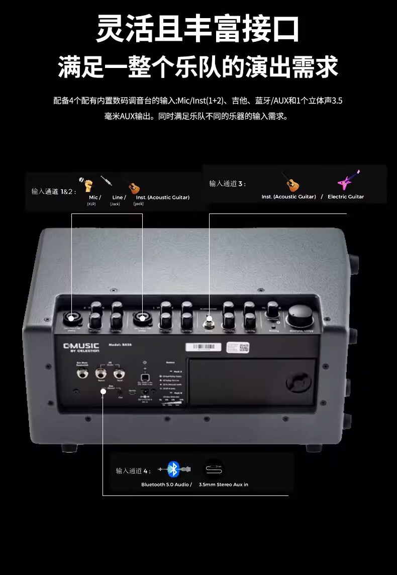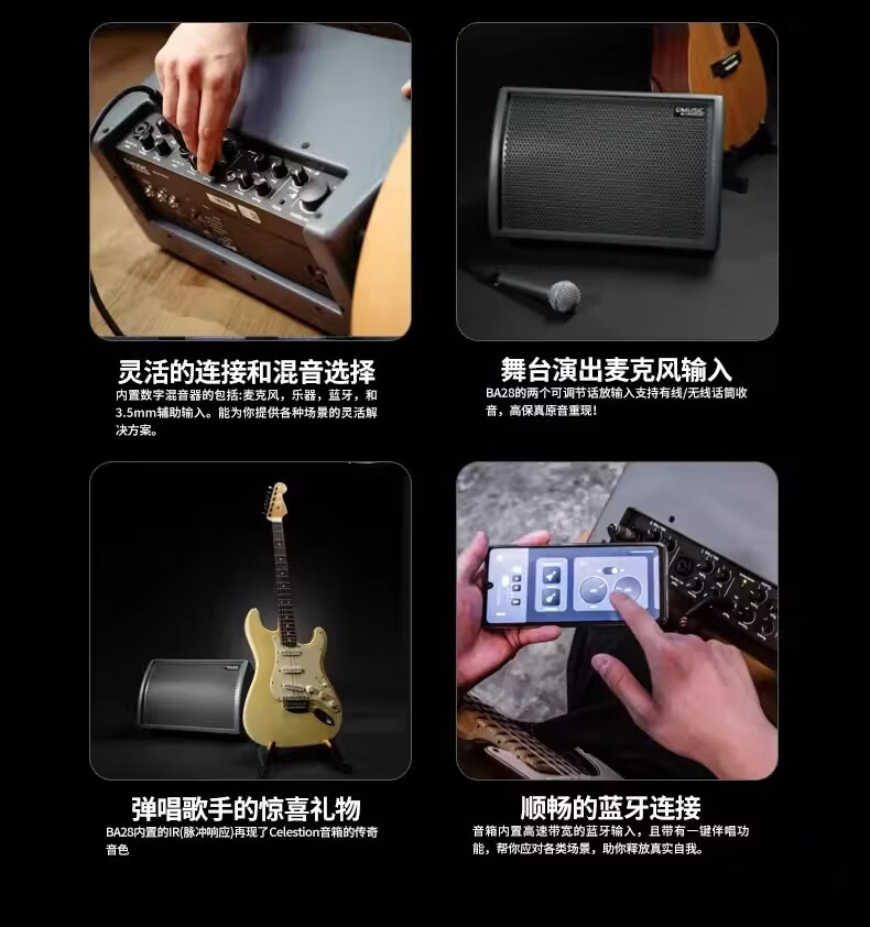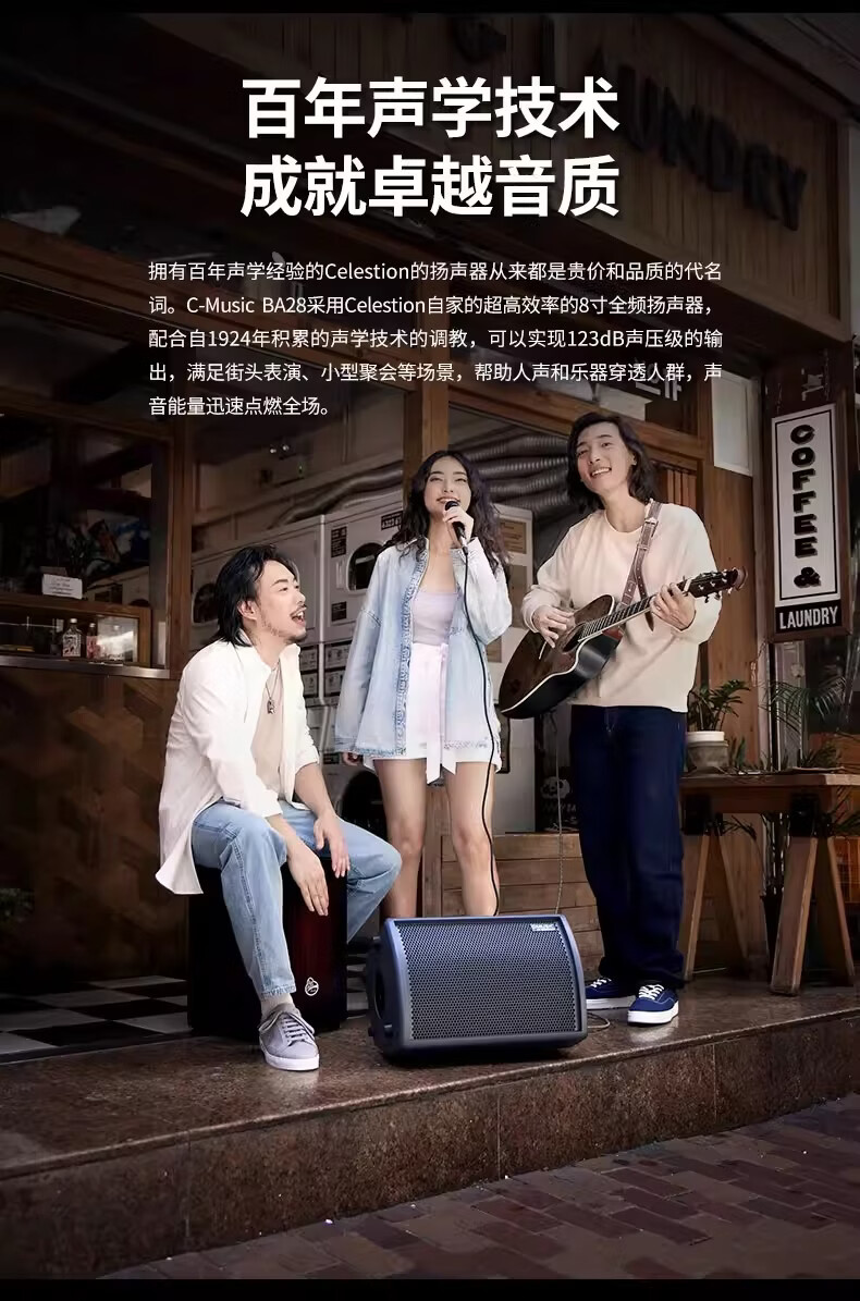 C-MUSIC speaker BA28 outdoor live guitar playing and singing charging Bluetooth speaker BA28+XLR cable+speaker bag+charging pile