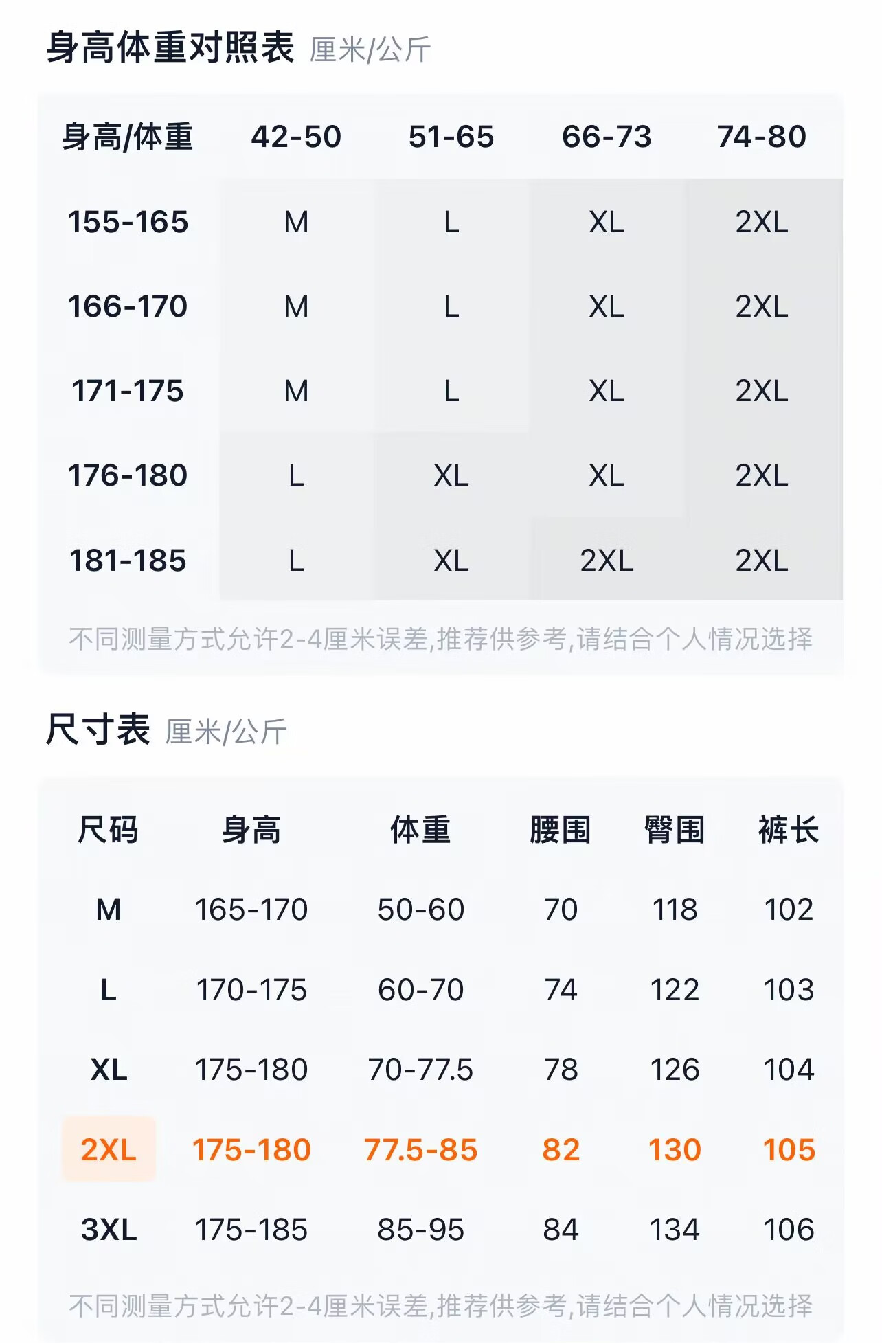 China (cm) 160-165/84-86 165-170 / 88-90 167-172 / 92-96 168-173 / 98-102 170-176 / 106-110