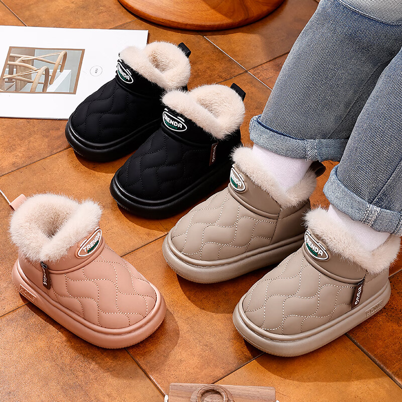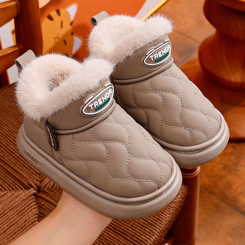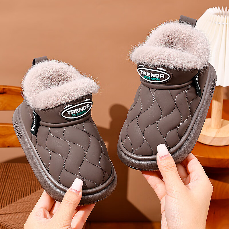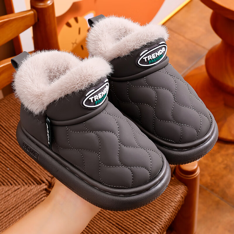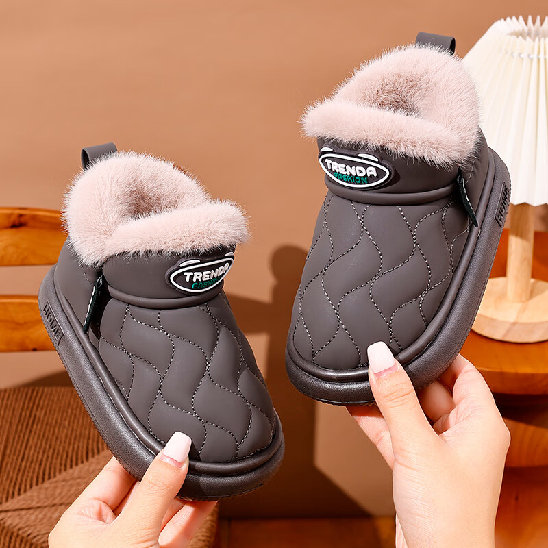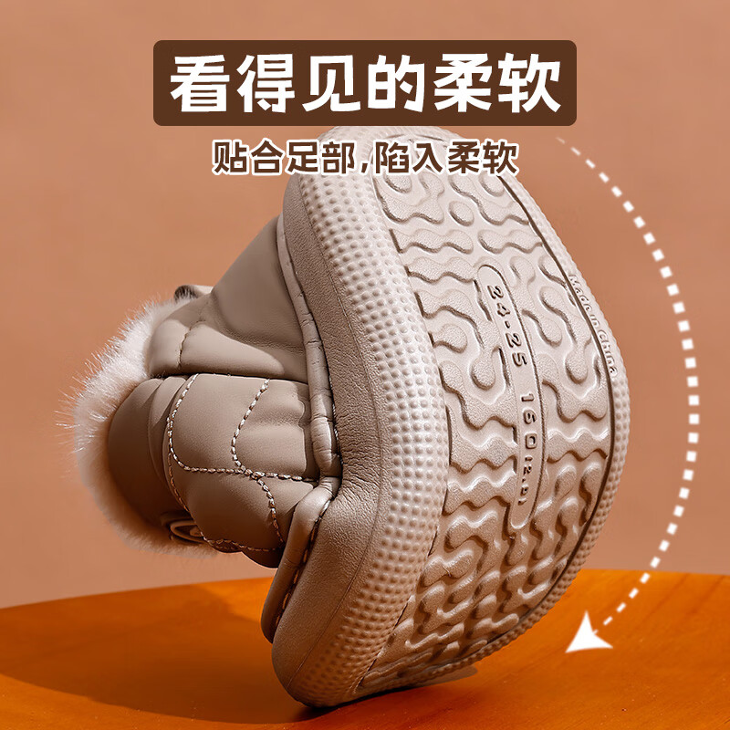2025 Children's Snow Boots Winter Warm Anti-Slip Cotton Shoes Baotou Waterproof Thickened Velvet Snow Shoes for Boys and Girls Gray 16 26/27 Inner Length 16CM Suitable for 25/26 Feet
