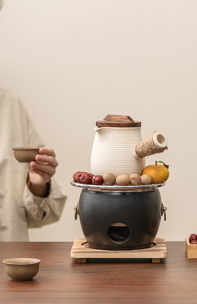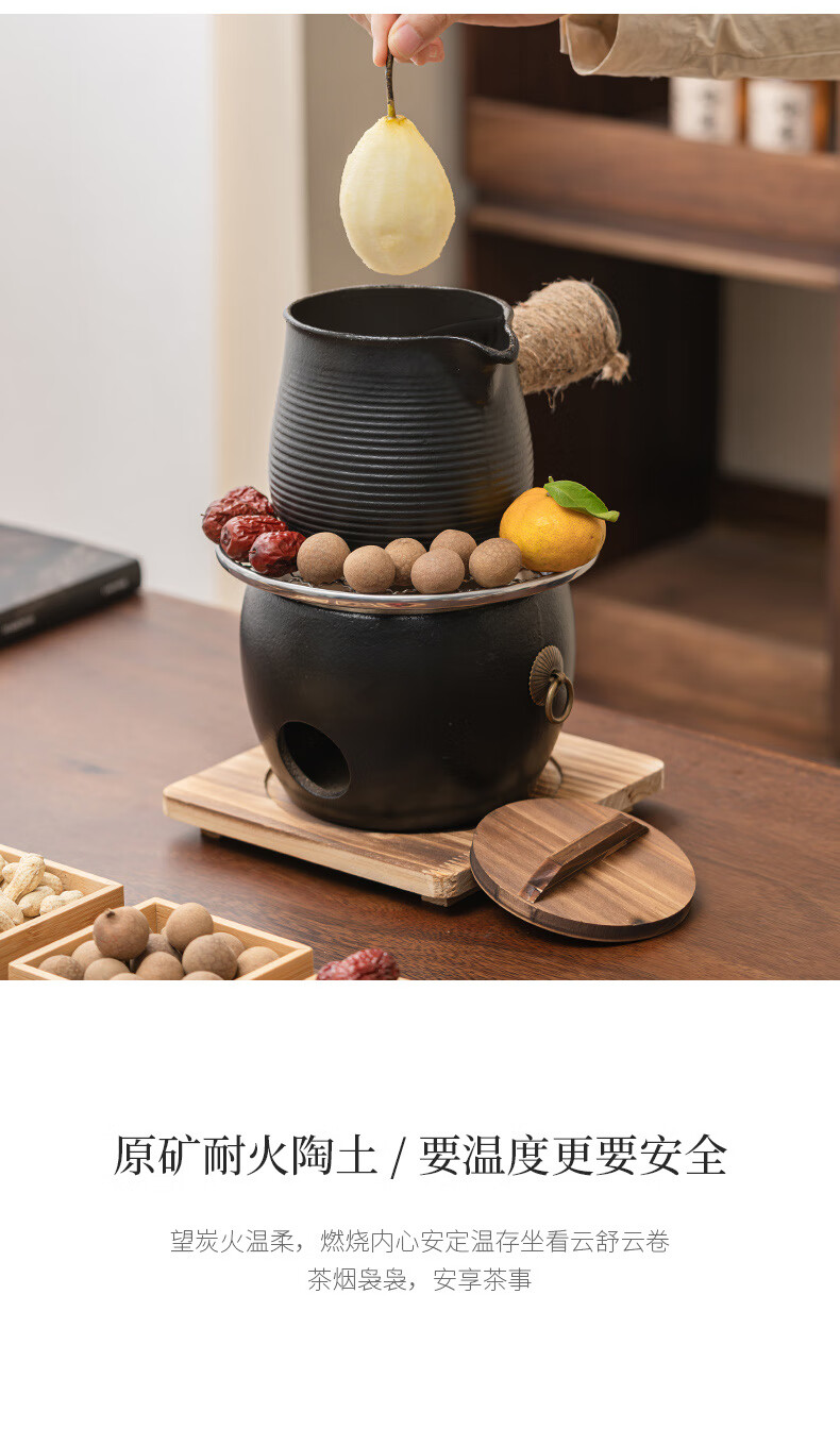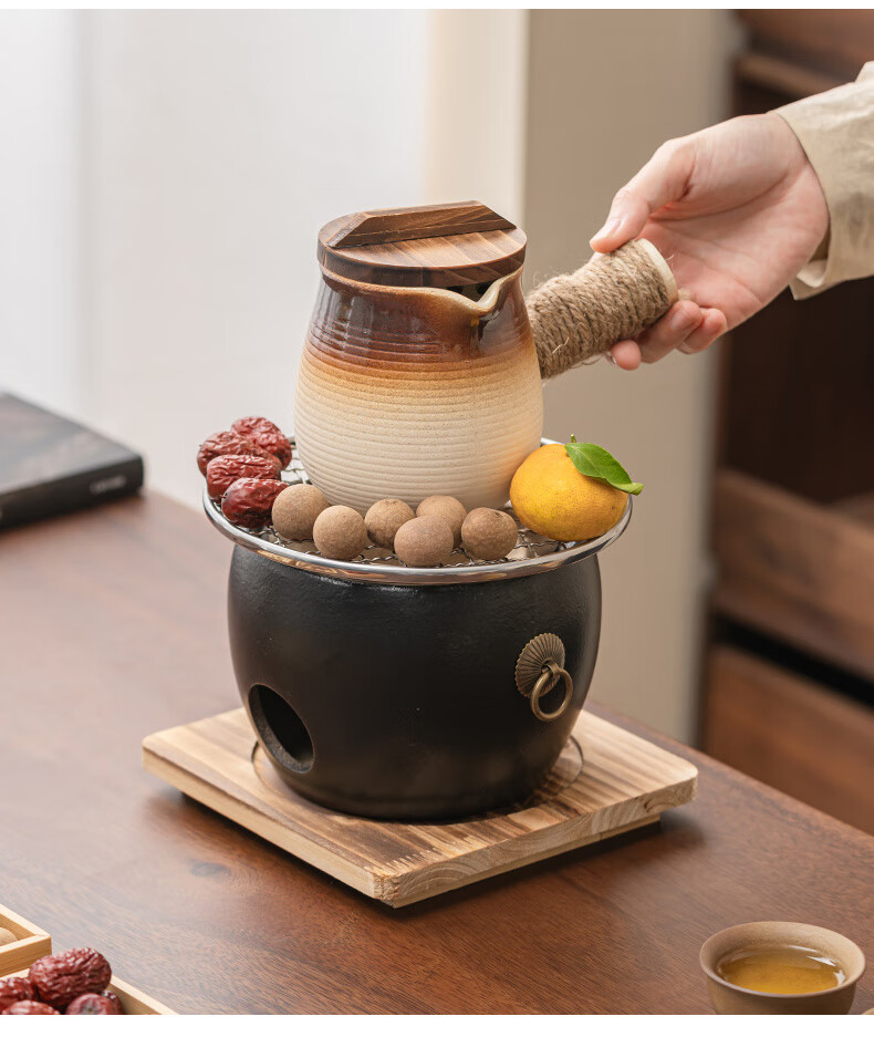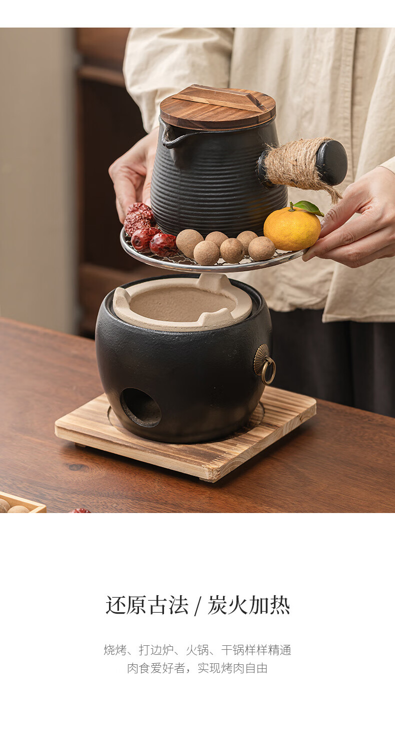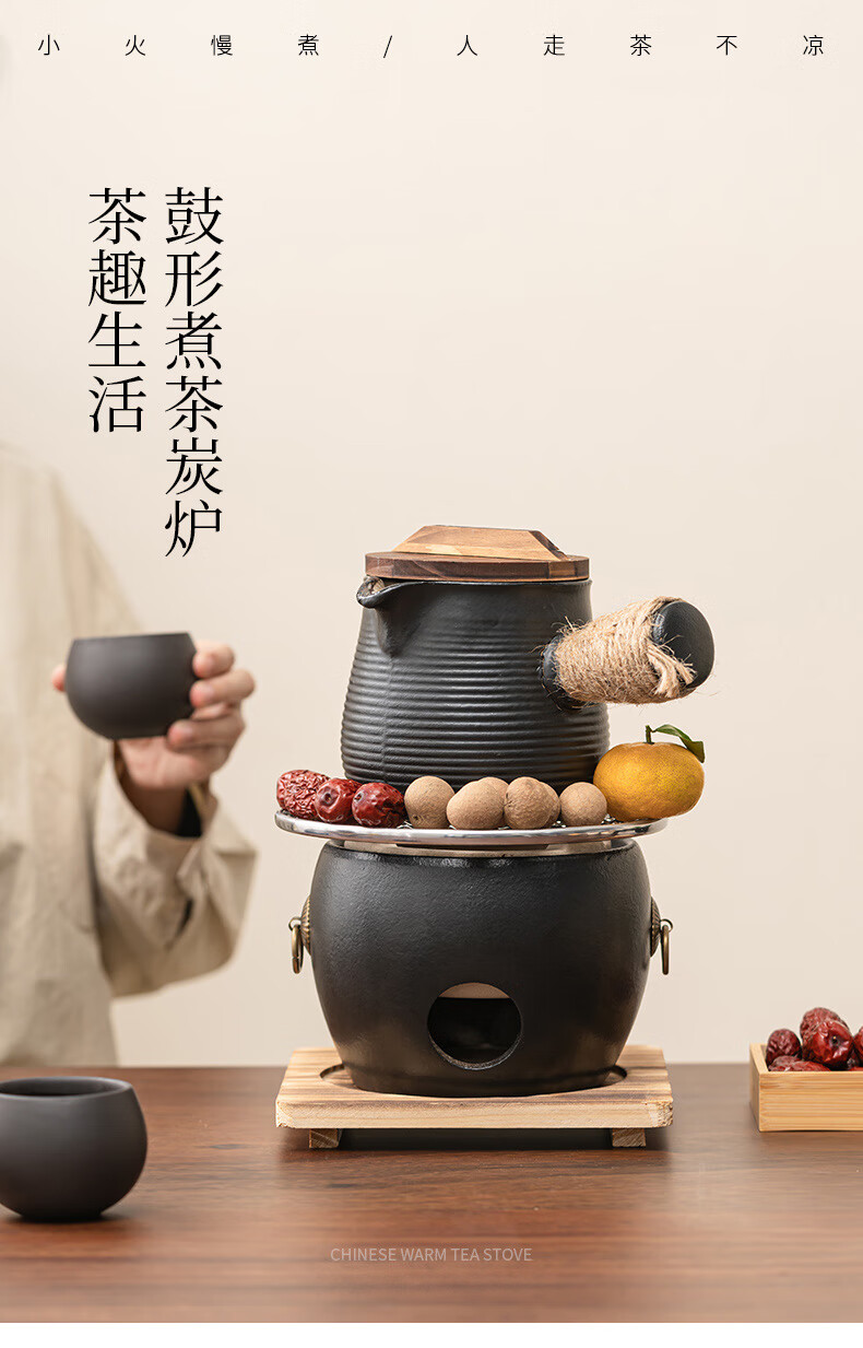 Haozun (HAOZUN) ceramic stove for tea making, complete set of cans, teapots, charcoal barbecue stove, winter outdoor home heating stove, charcoal stove, black drum-shaped charcoal stove + grilling net + wooden mat No Specifications