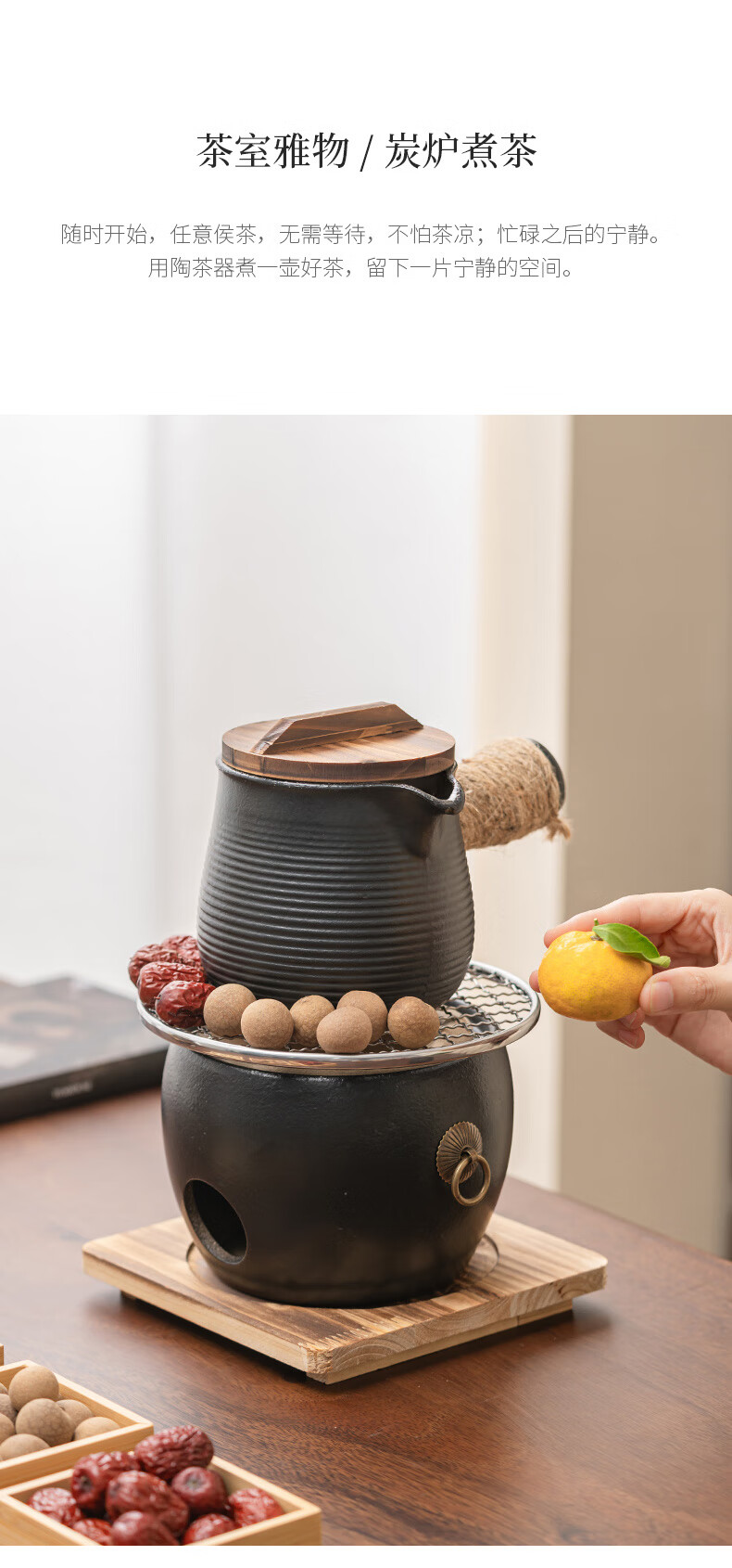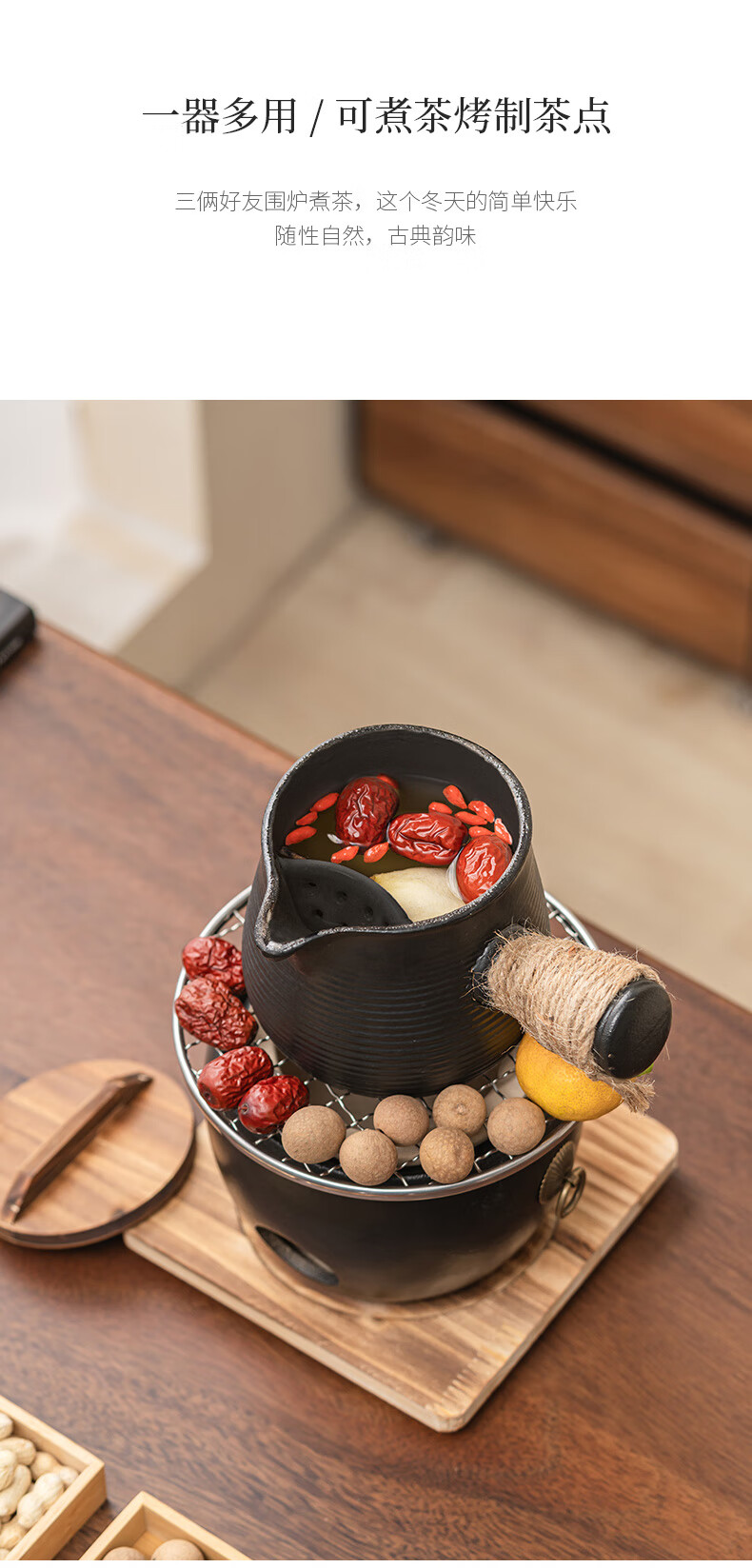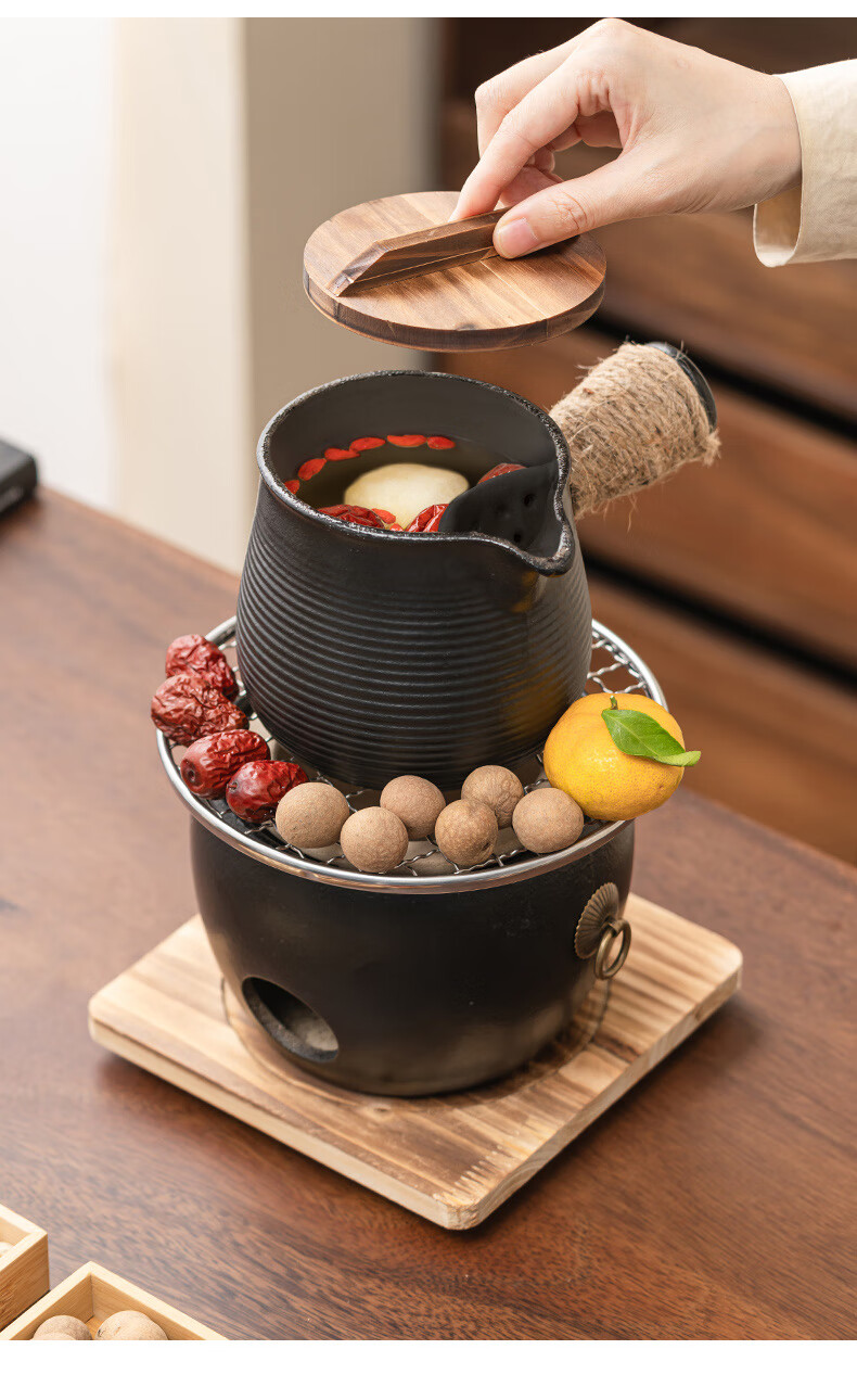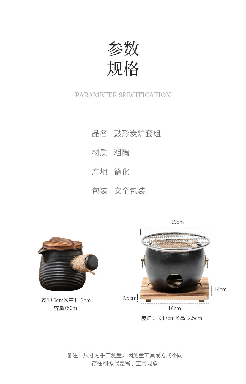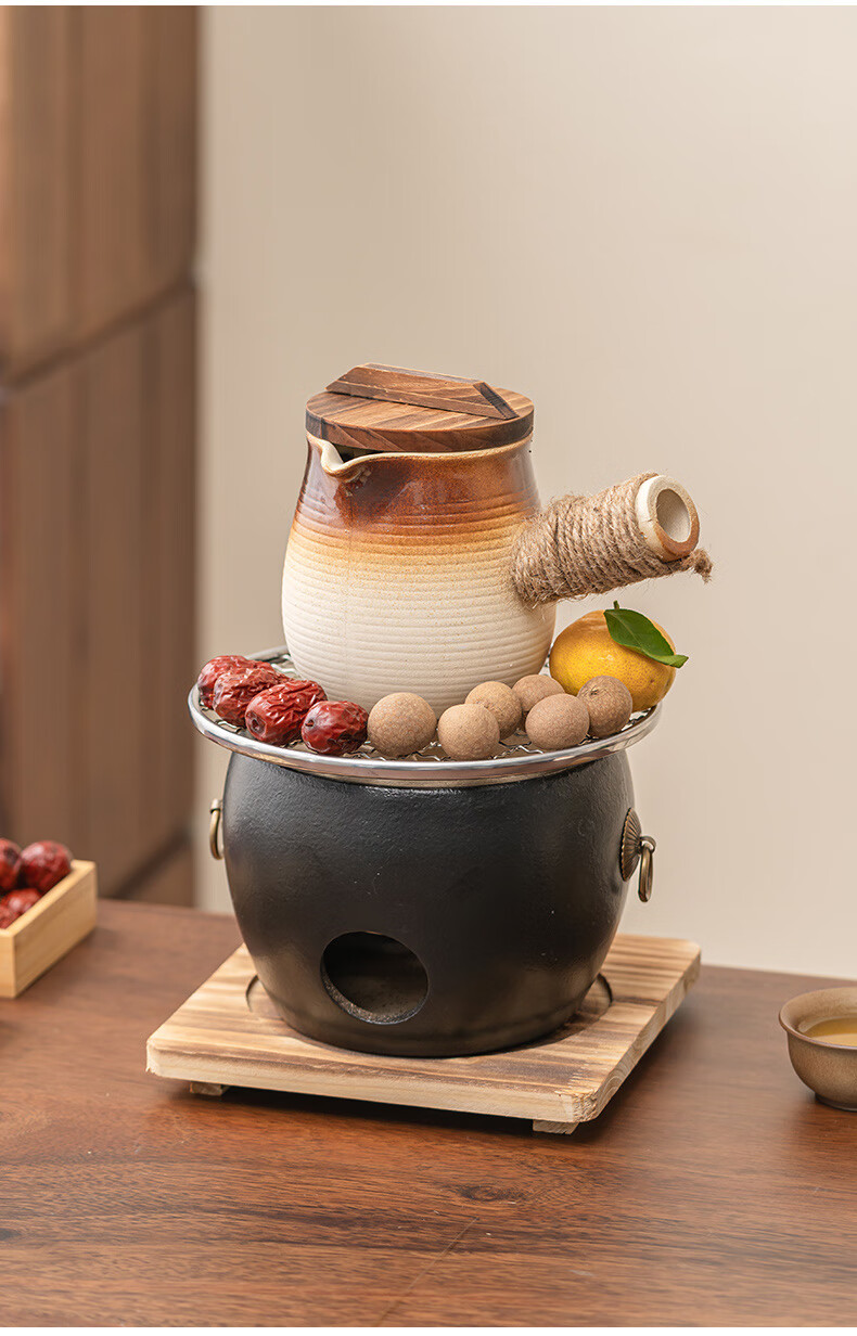 Haozun (HAOZUN) ceramic stove for tea making, complete set of cans, teapots, charcoal barbecue stove, winter outdoor home heating stove, charcoal stove, black drum-shaped charcoal stove + grilling net + wooden mat No Specifications