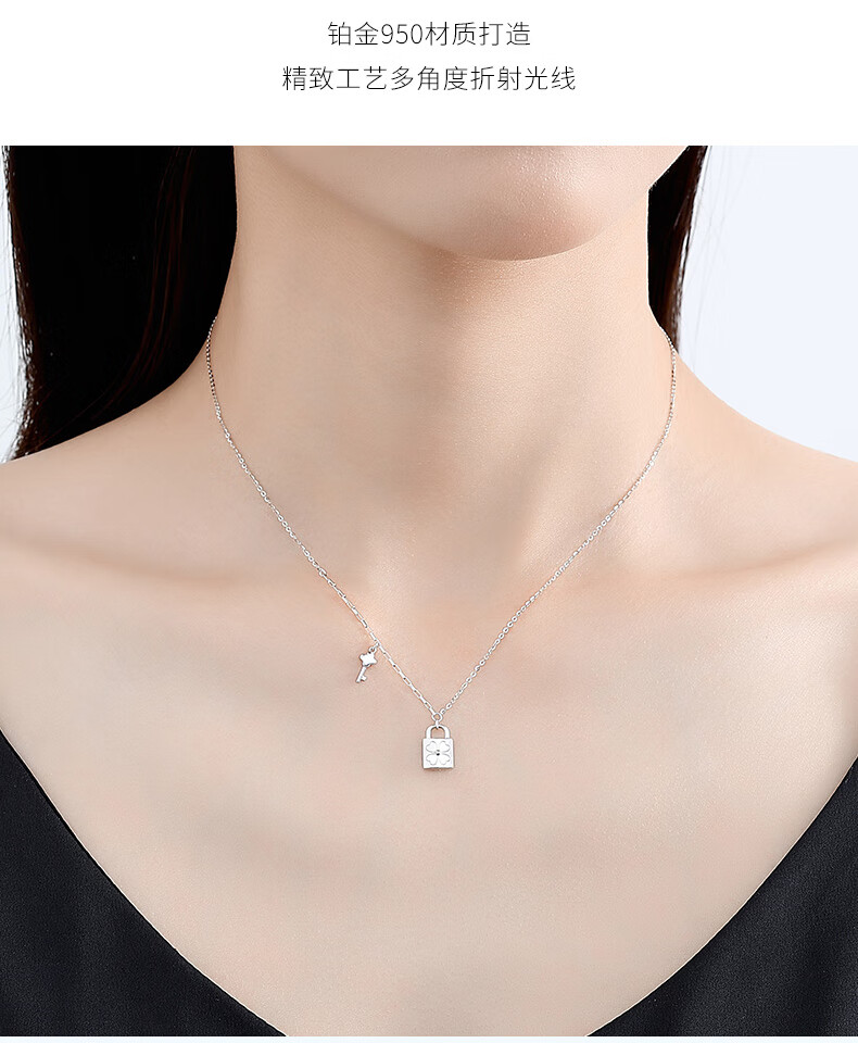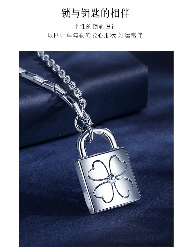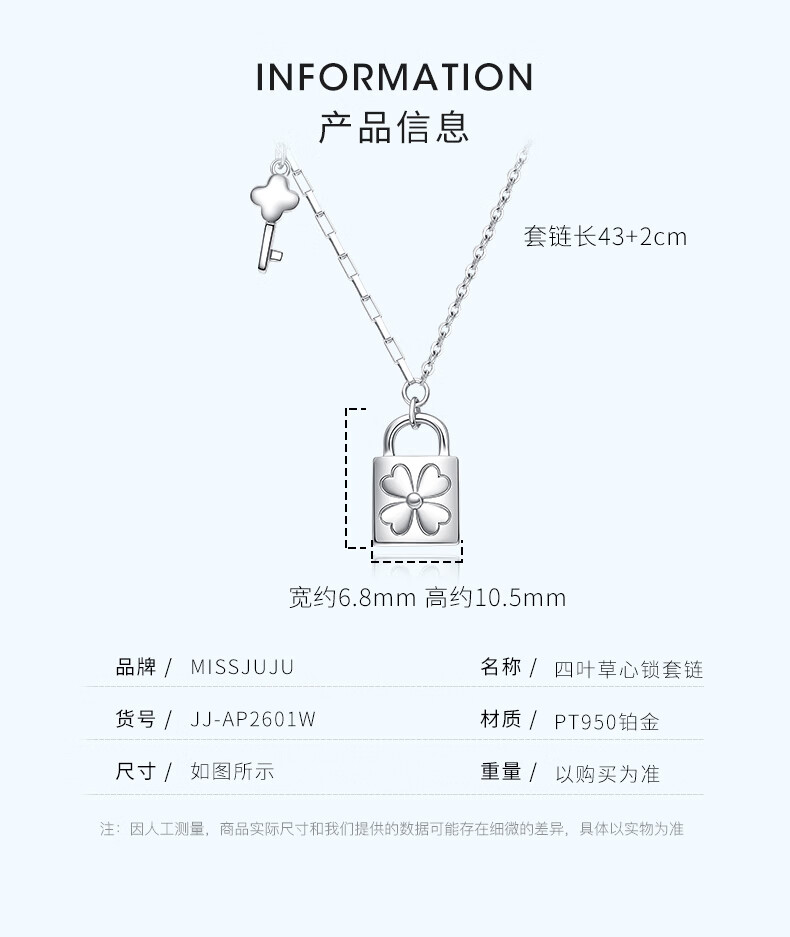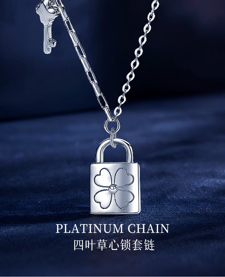 Miss JuJu pt950 platinum lock necklace for women, fashionable platinum four-leaf clover element chain set for girlfriend, weight 3.6-3.8g, length 43+3cm