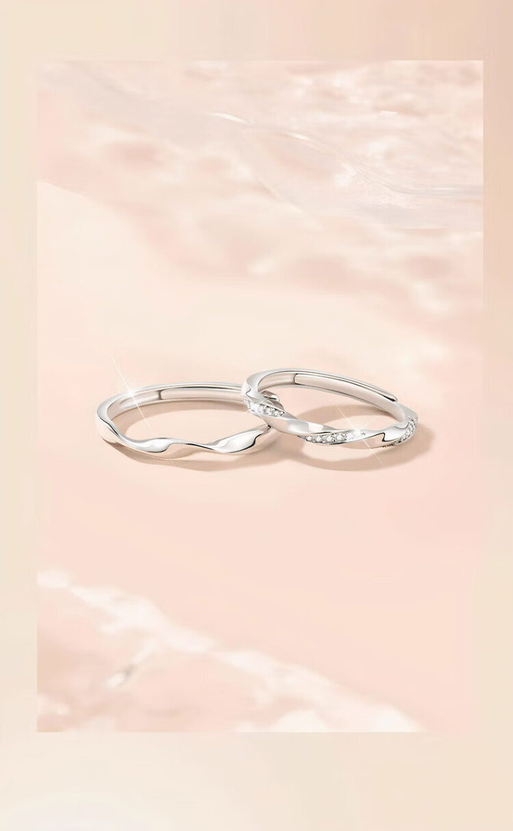 CHINA GOLD Möbius Ring Silver Ring Couple's Ring Sterling Silver Ring A Pair of Niche Design Birthday Gifts for My Girlfriend Three Lives Three Worlds Pure Silver 999 Pair of Rings and a Chinese Gold Gift Box