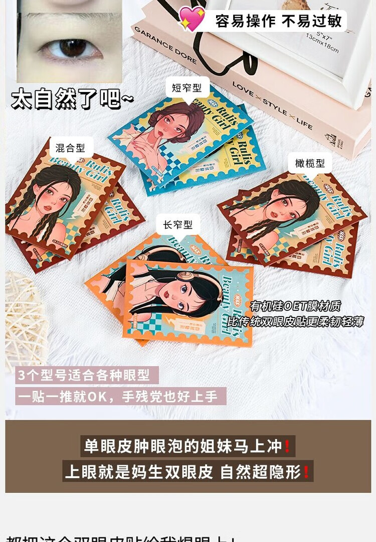 Makeup artist Rabbit recommends invisible matte traceless, natural and transparent double eyelid stickers for single eyelids, special for double eyelids, slender type, suitable for single eyelids/small inner double eye types, 1 pair, huge discount, twenty sheets + free tools