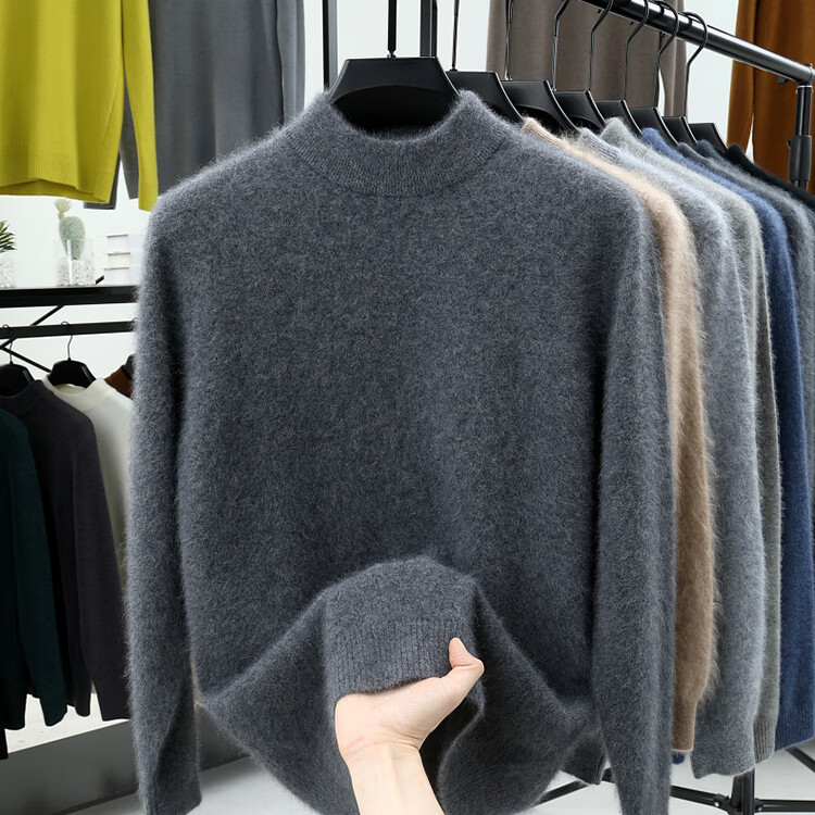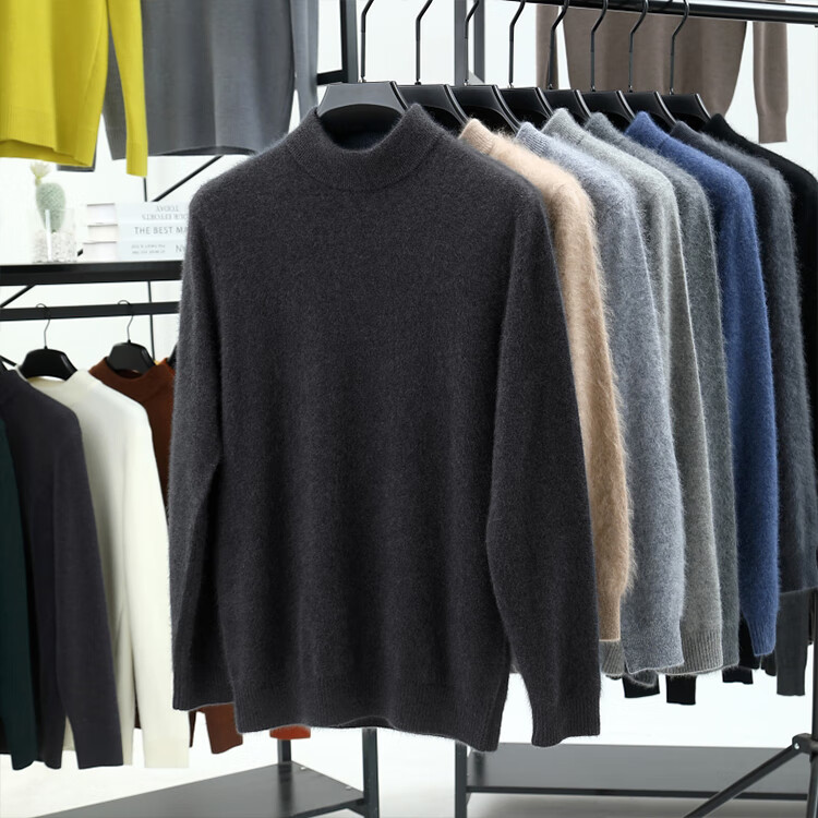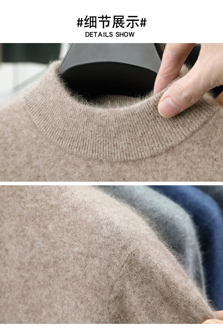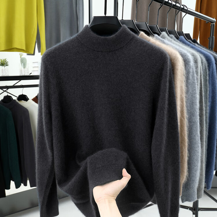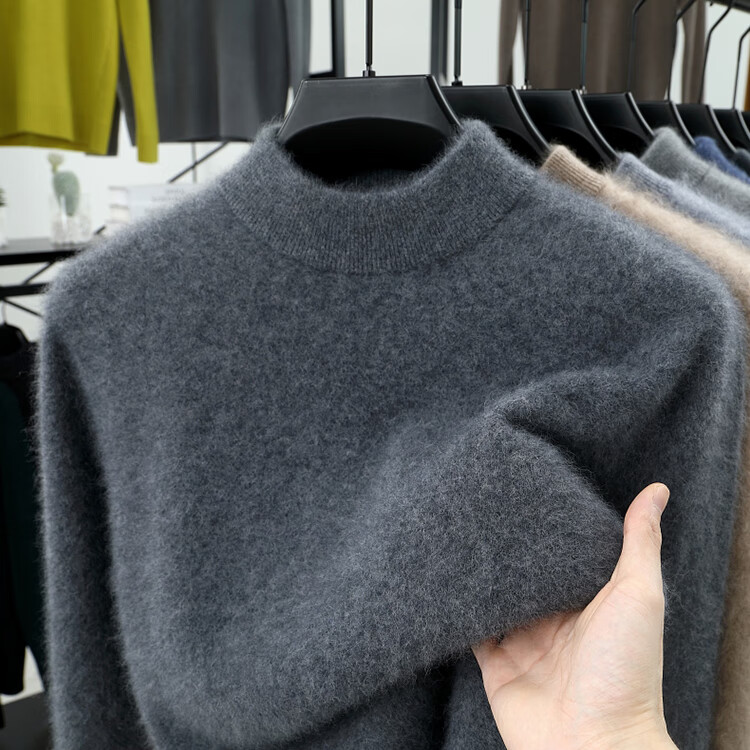 ROMON 100% woolen sweater men's half-turtleneck sweater sweater winter thickened and warm young and middle-aged clothing base layer dark gray thickened and warm (skin-friendly and not irritating) XL (recommended 130-150Jin Jin equals 0.5 kg)