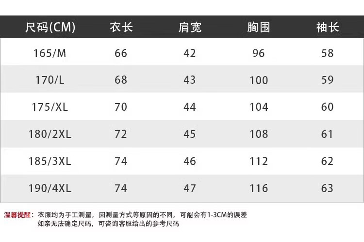 China (cm) 165 / 88-90 170 / 96-98 175 / 108-110 180 / 118-122 185 / 126-130