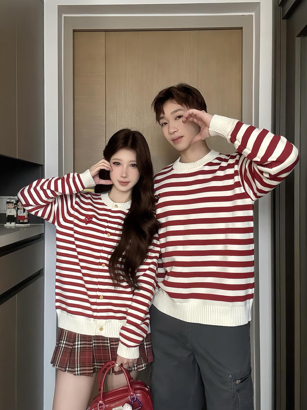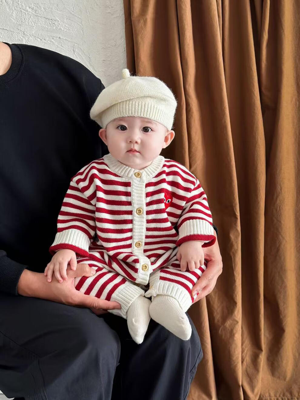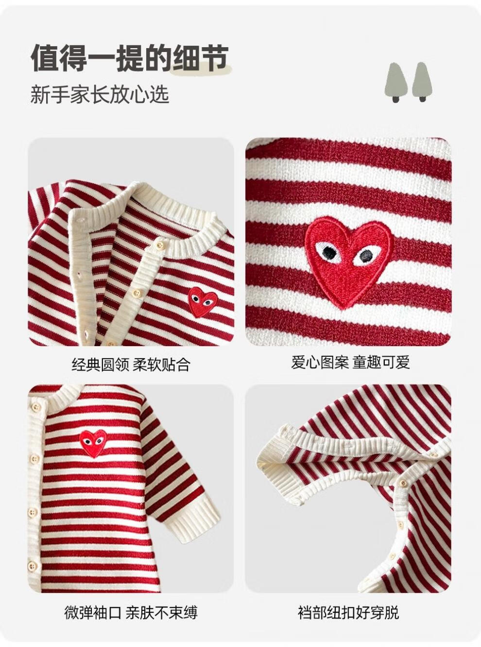 G.duck small month old parent-child clothing baby rompers love sweaters children's clothing family of three autumn and winter red striped sweaters red stripes 66 baby sweaters (8-13Jin Jin equals 0.5 kg)