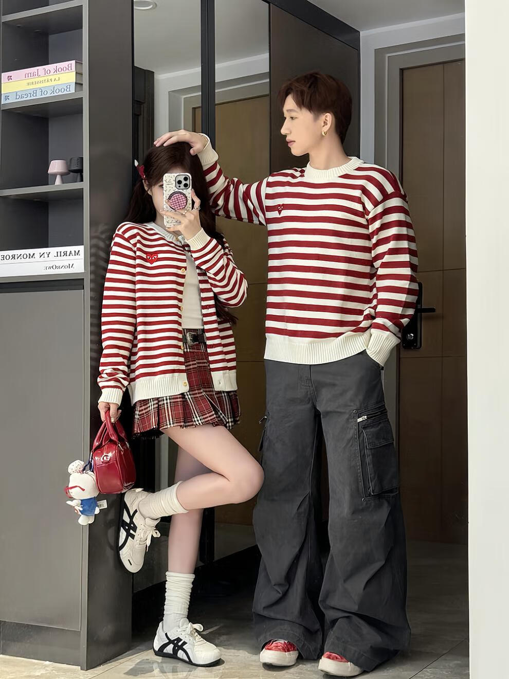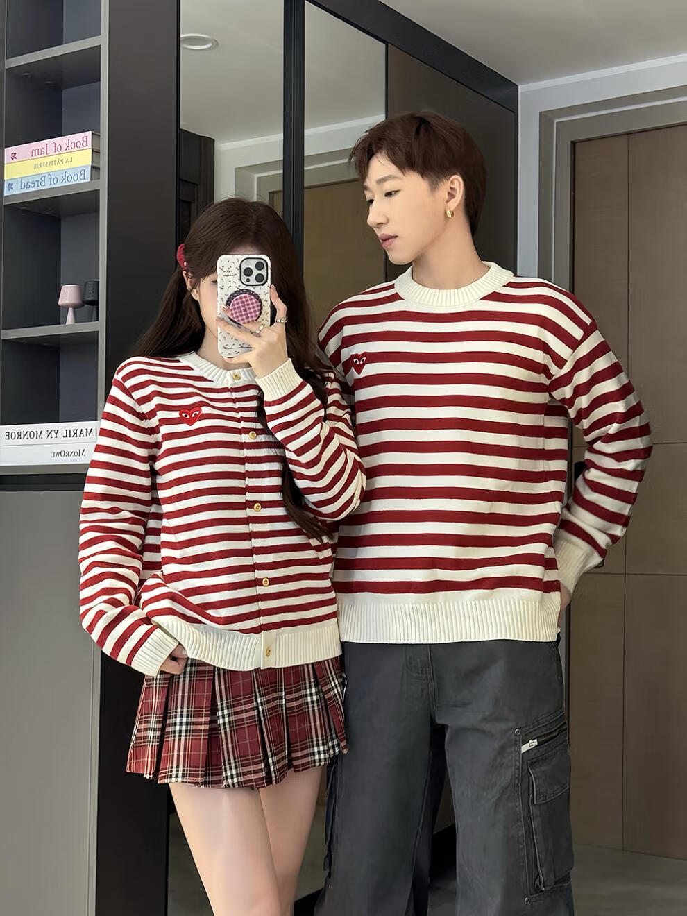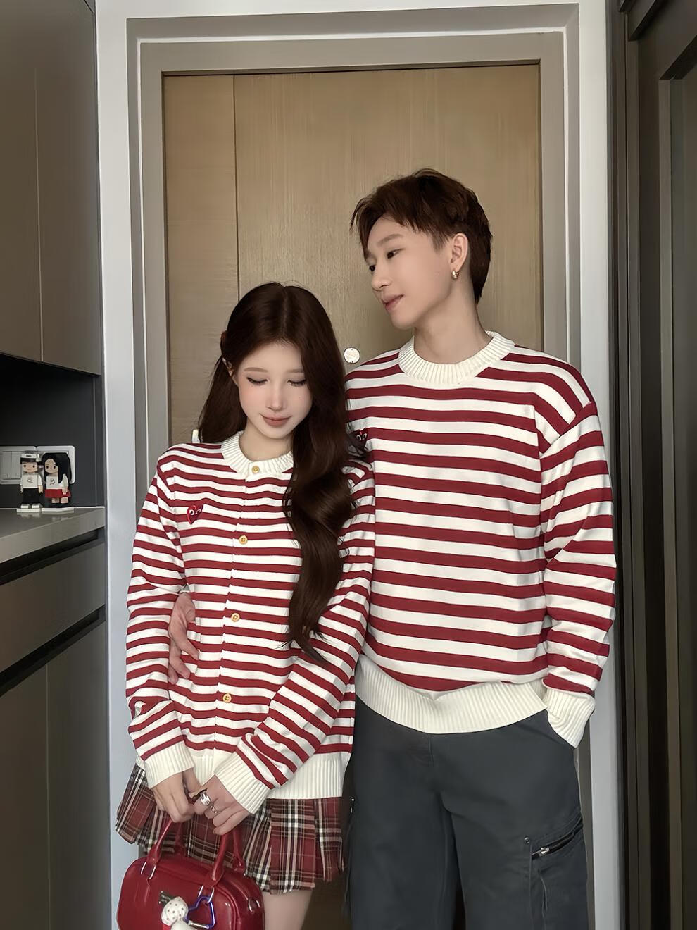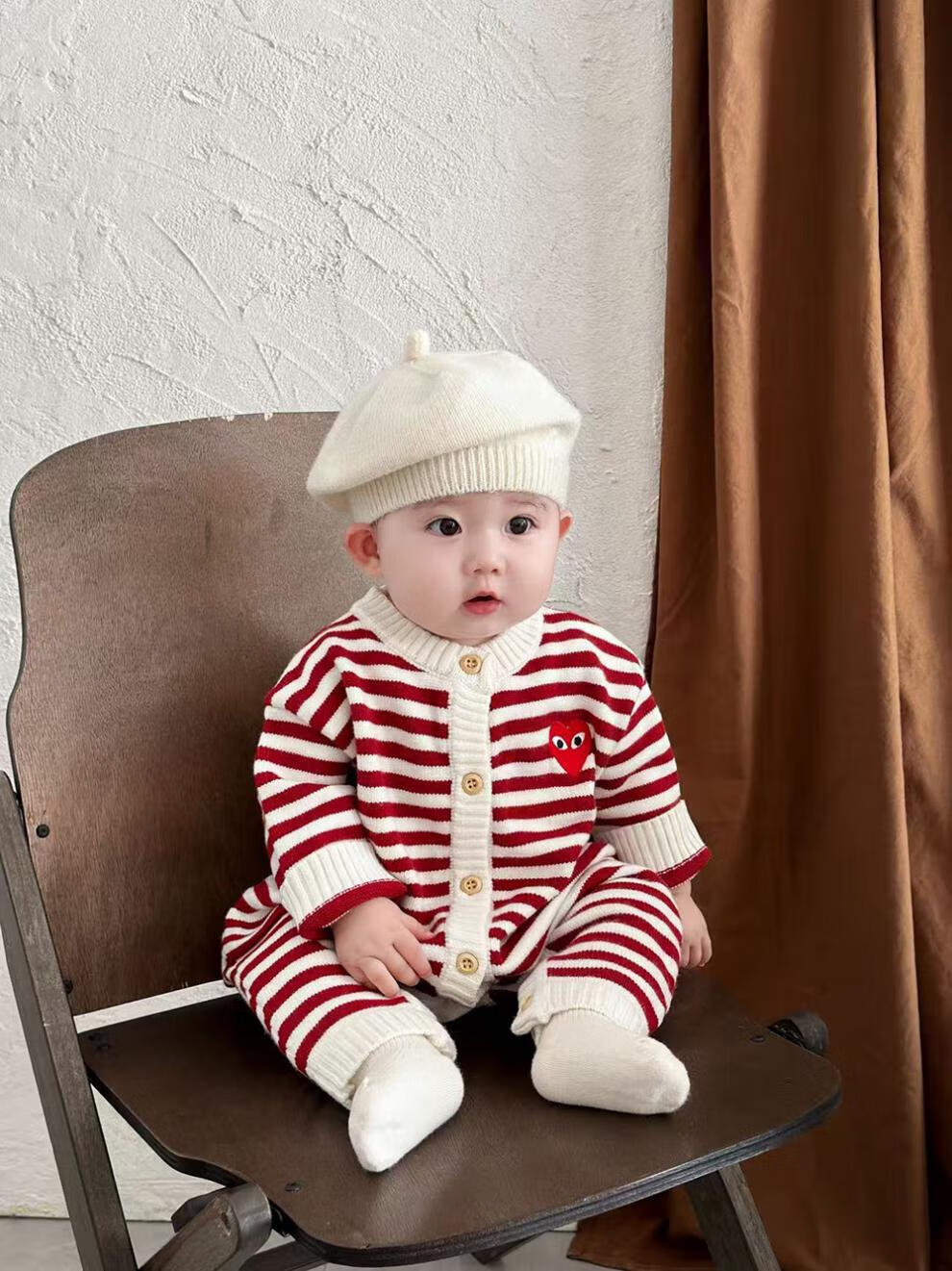 G.duck small month old parent-child clothing baby rompers love sweaters children's clothing family of three autumn and winter red striped sweaters red stripes 66 baby sweaters (8-13Jin Jin equals 0.5 kg)