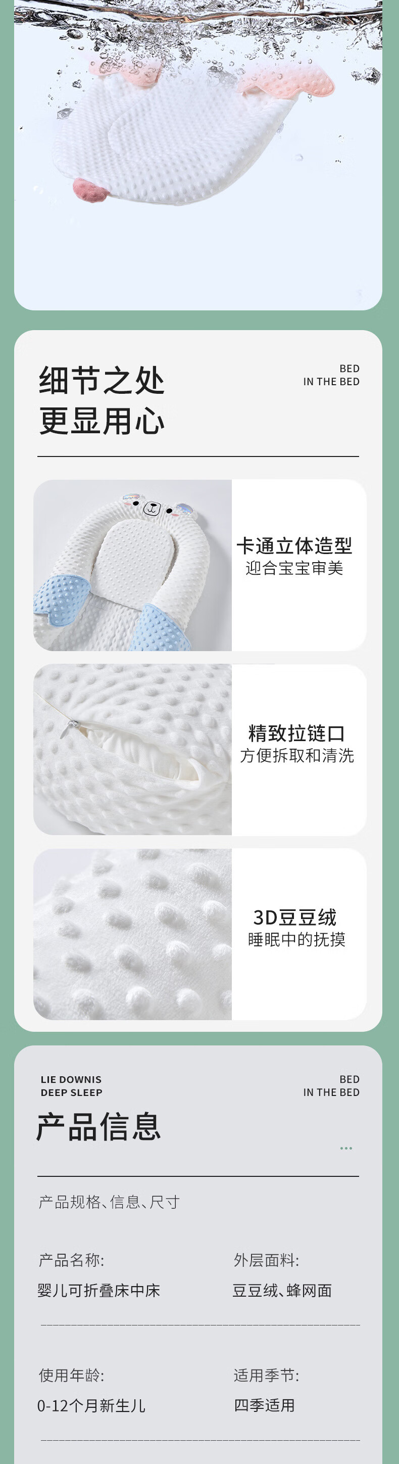 MPPMCK Newborn Bionic Portable Bed-in-Bed Anti-pressure Movable Baby Sleeping Bed Little Pink Rabbit (Single Bed+