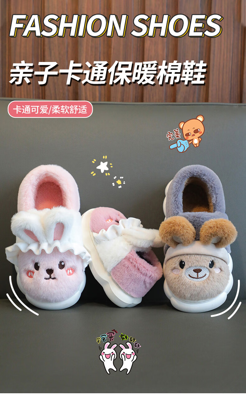 2025 Thick-soled Children's Cotton Shoes for Boys and Girls Home Indoor Non-Slip Home Warm Baby Parent-Child Cotton Slippers Upgraded Dark Gray Cotton Shoes 12 Size 36/37 Adult Children