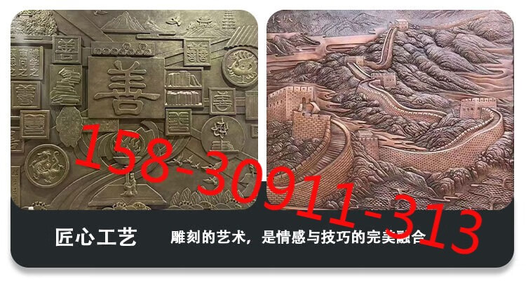 Forged copper relief customization factory pure brass copper plate engraving painting traditional Chinese medicine hospital campus cultural background wall decoration mural customization of forged copper Great Wall theme relief one