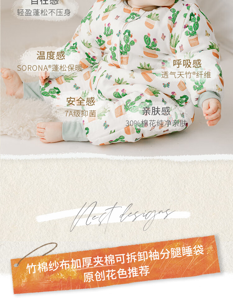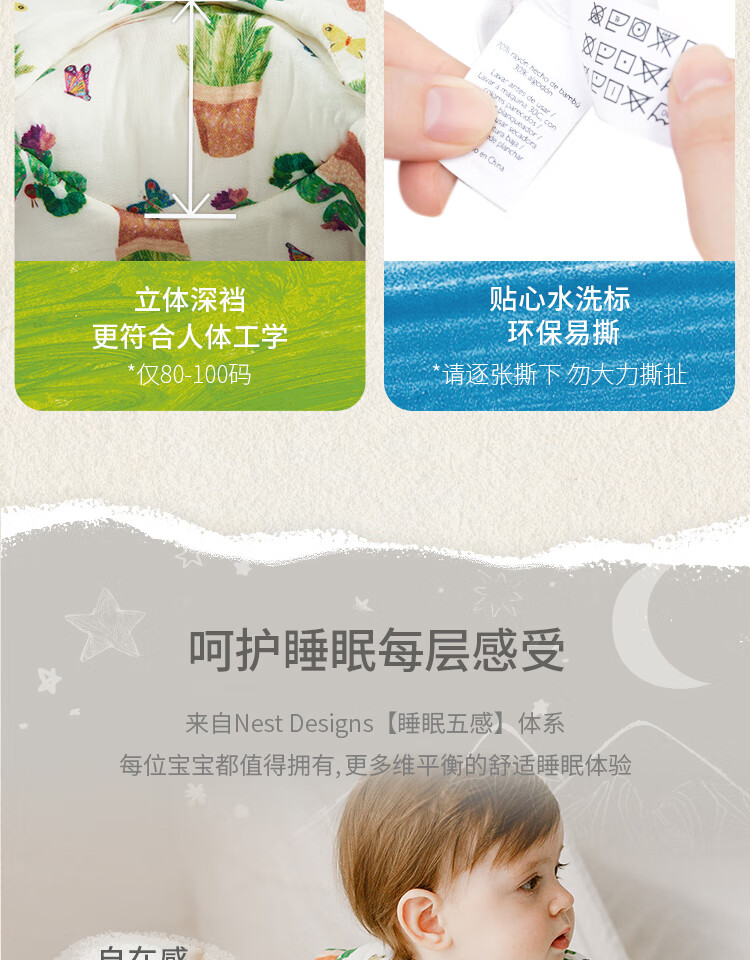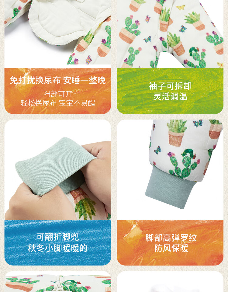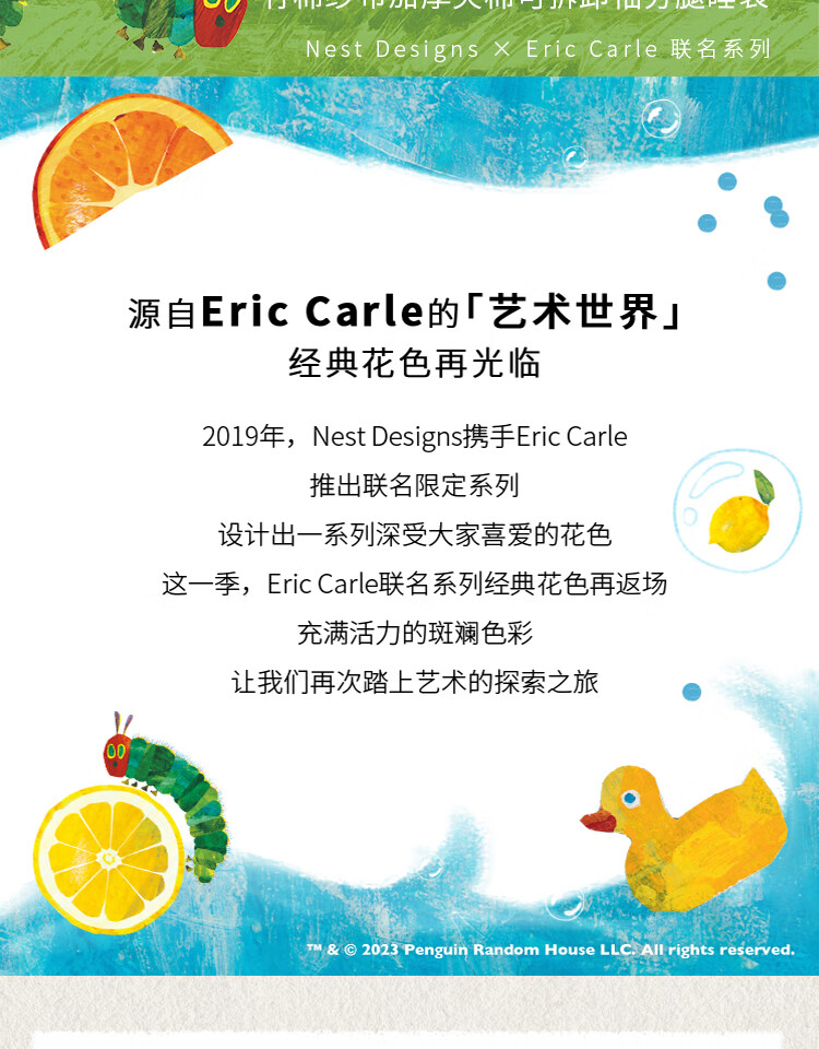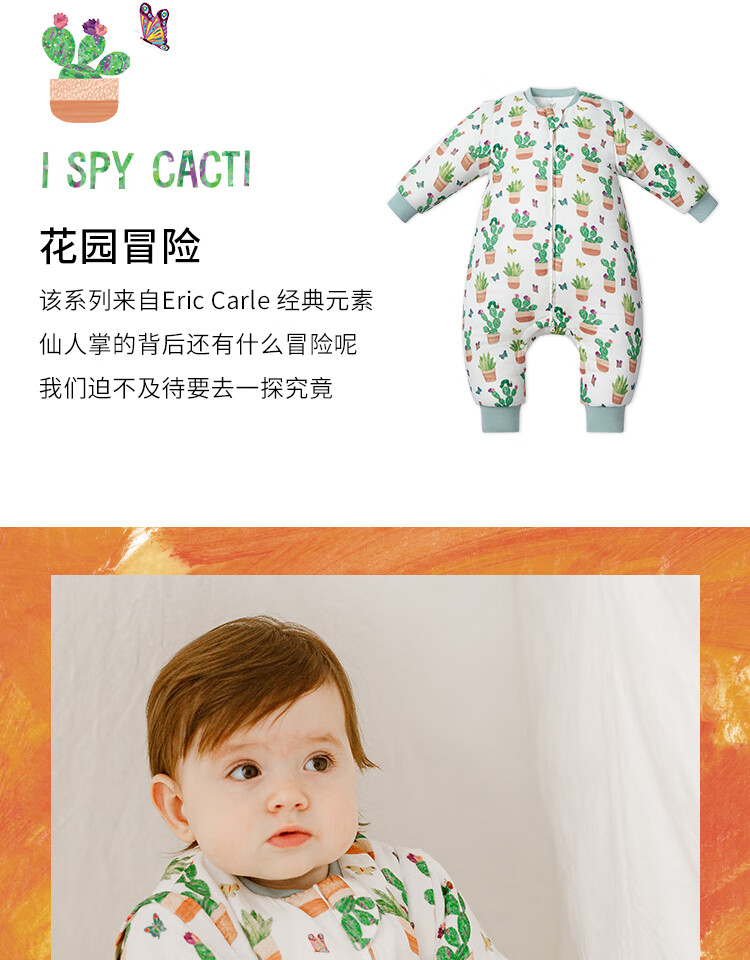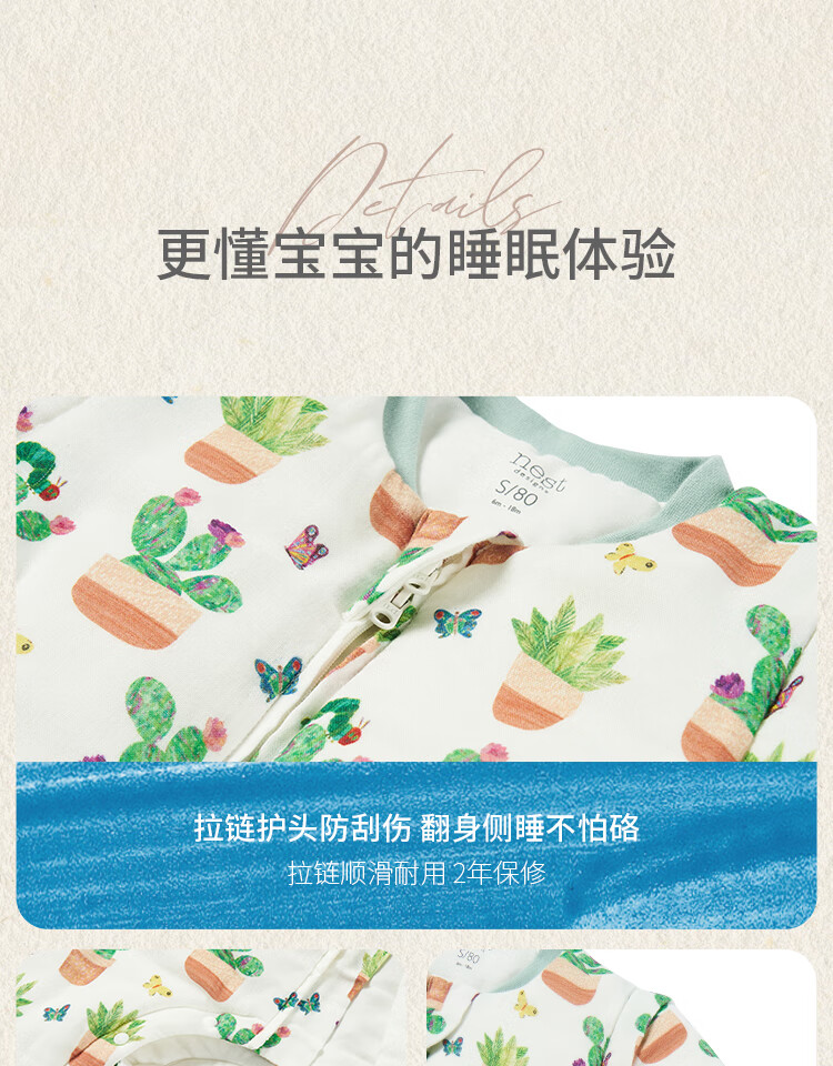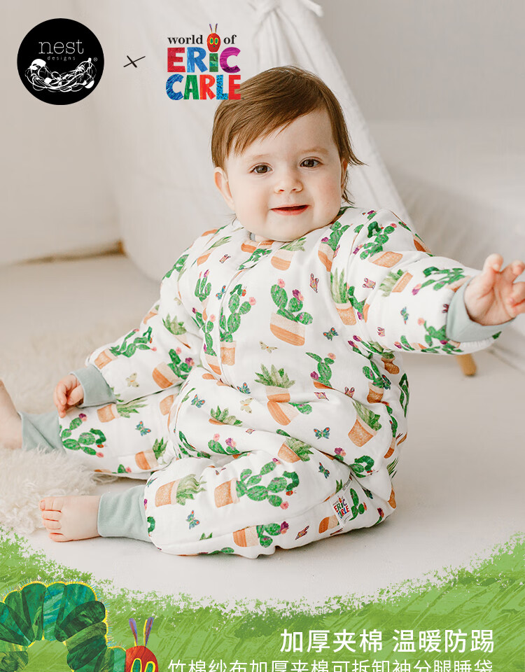 Nest designsEric Carle co-branded infant sleeping bag thickened quilted autumn and winter baby split leg children's warm and waterproof 80cm (recommended height 70-80cm)