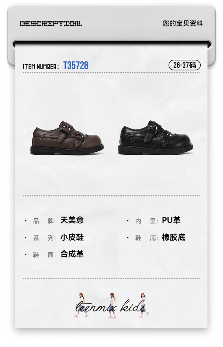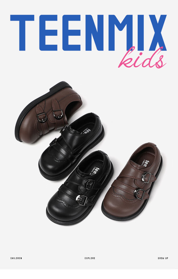 TEENMIX Children's Shoes 2026 New Spring and Autumn Children's Leather Shoes for Boys and Girls Black Small Leather Shoes Soft Sole Girls' Student Princess Shoes Black 30